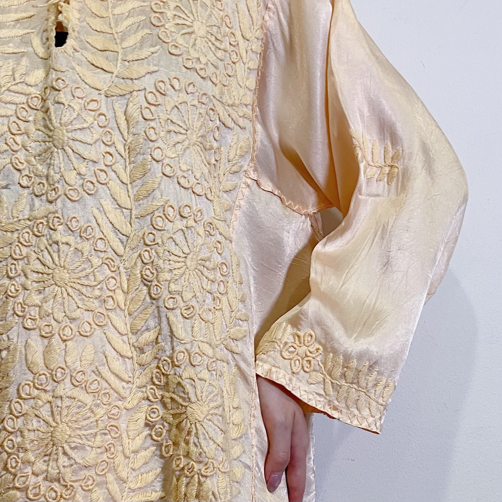ペールオレンジで着こなしやすい、70年代の長袖チュニックです。