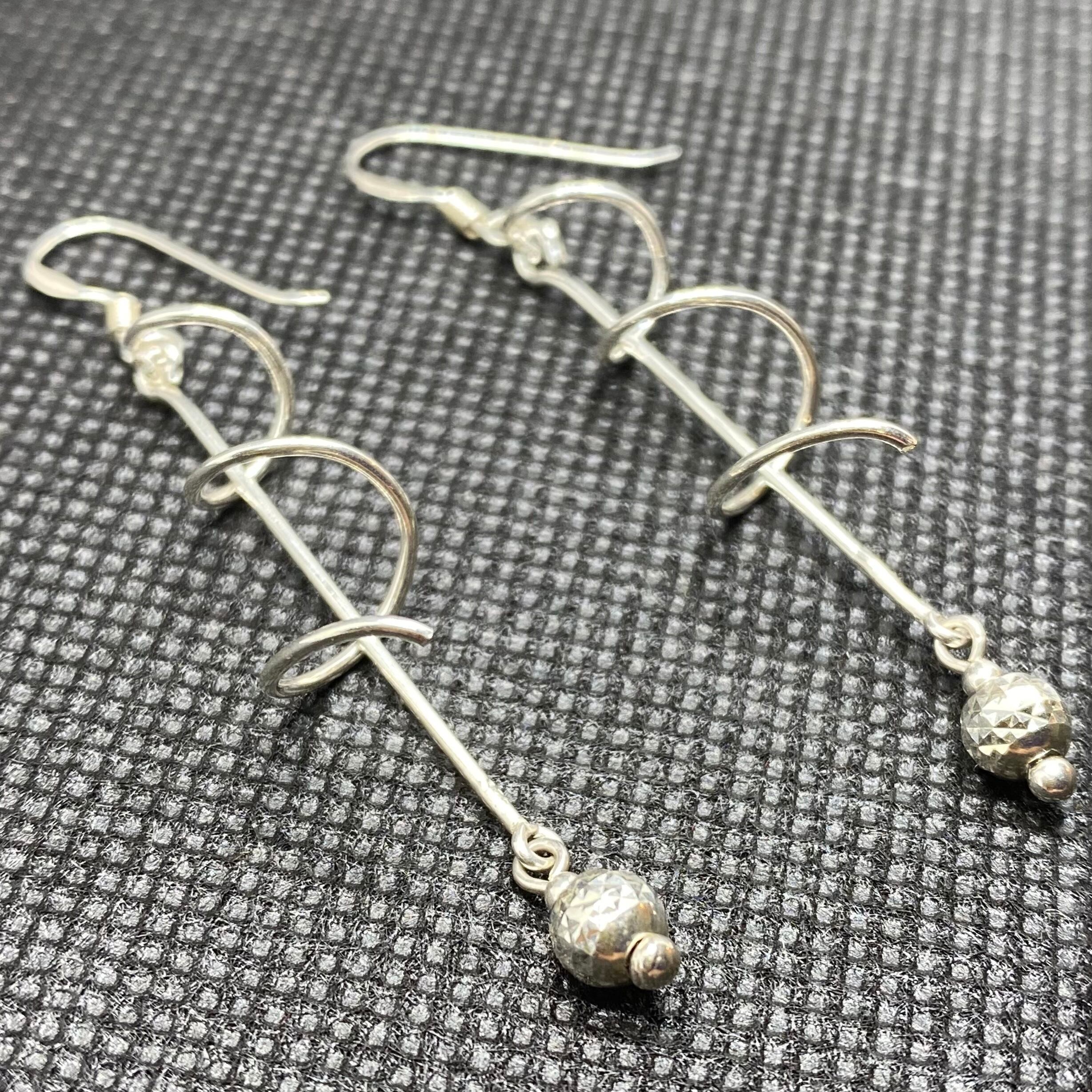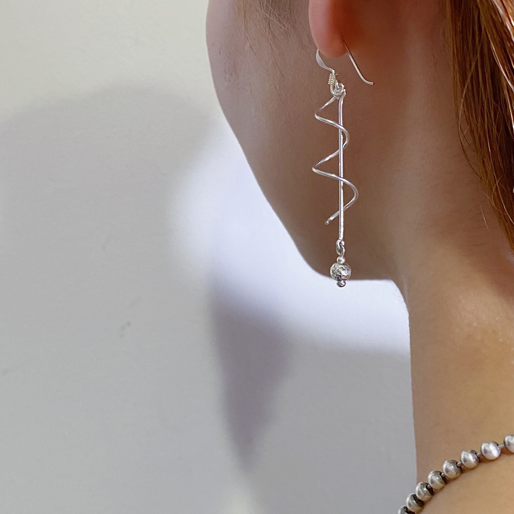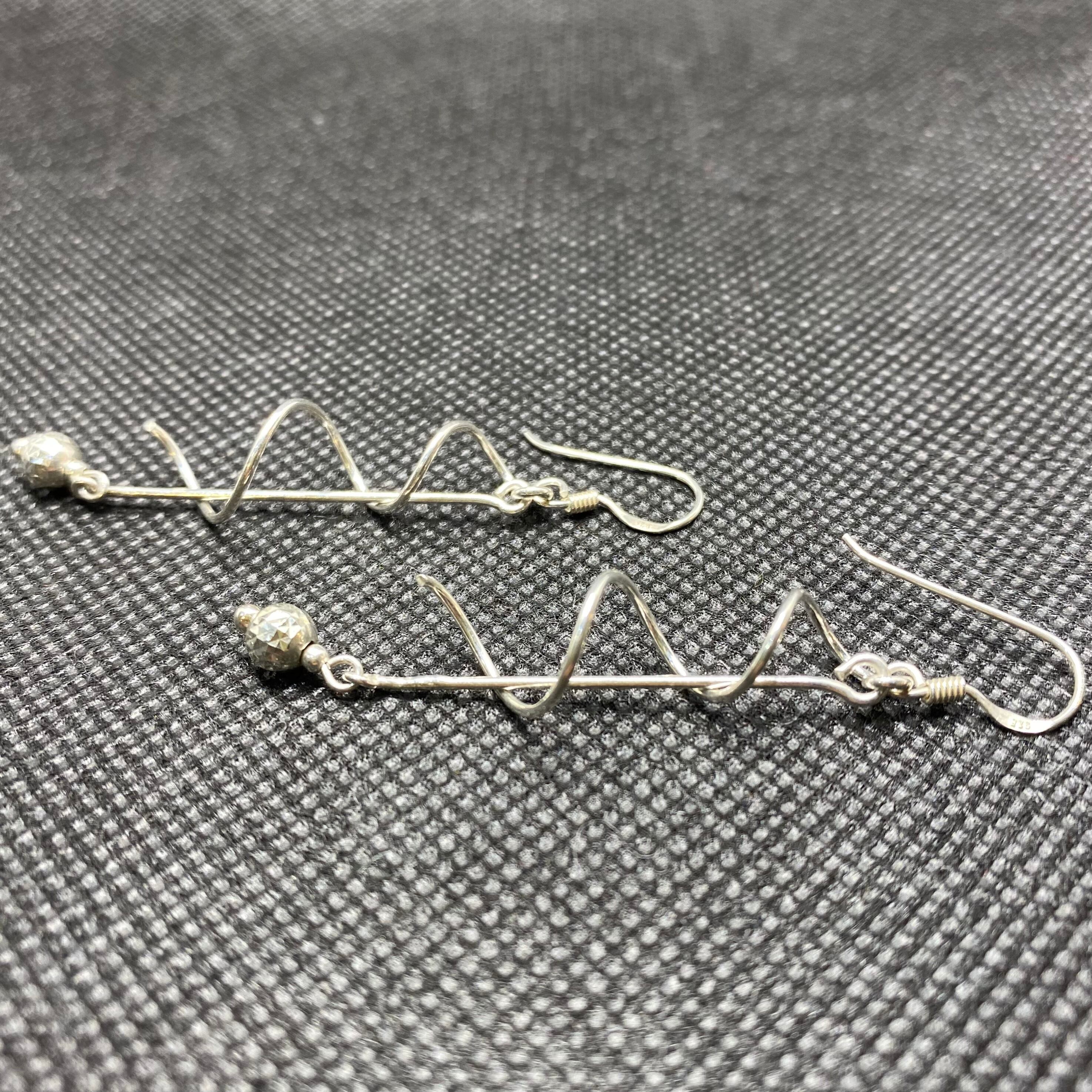 ねじねじとバーに巻き付いたデザインがユニークな、925シルバーのピアスです。