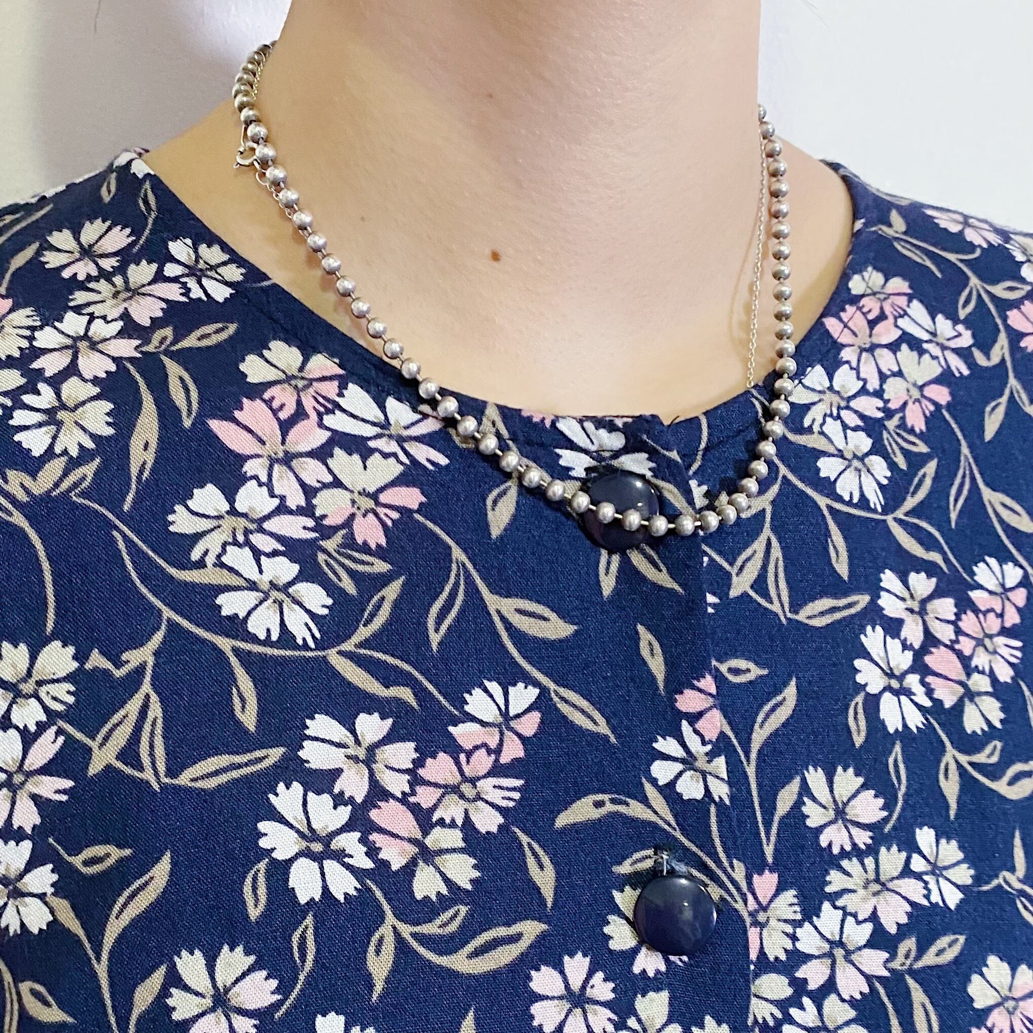 総柄ながら、ネイビーベースで案外着こなしやすい一枚。
