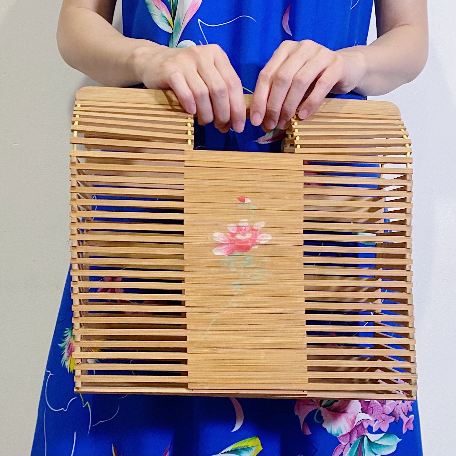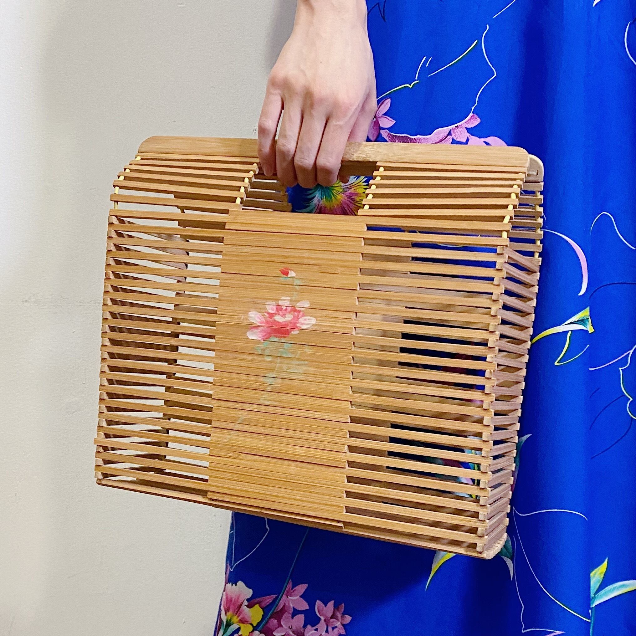 お花のペイントが素敵な、古い年代のハンドメイドで作られたバンブーバッグです。