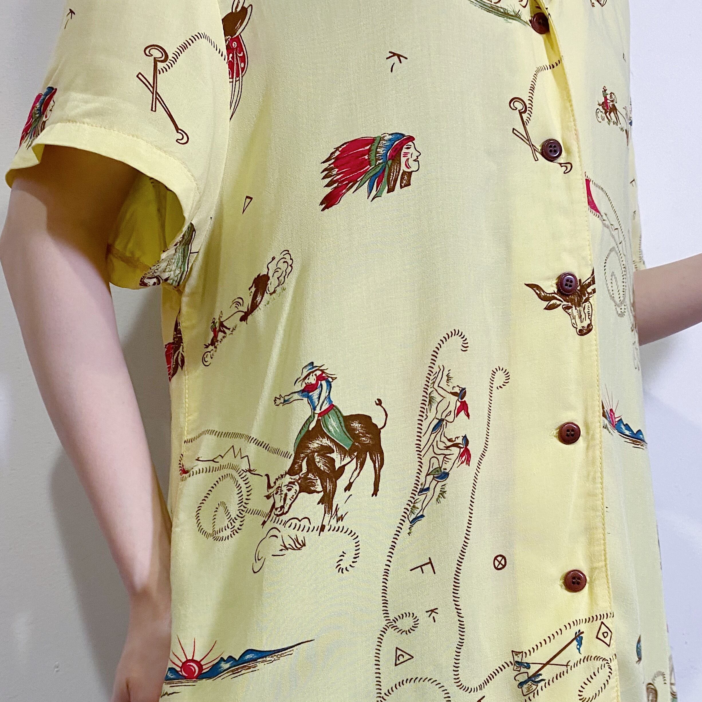 カウボーイやインディアンのプリントがアメリカらしくて楽しい、90年代のシャツです。