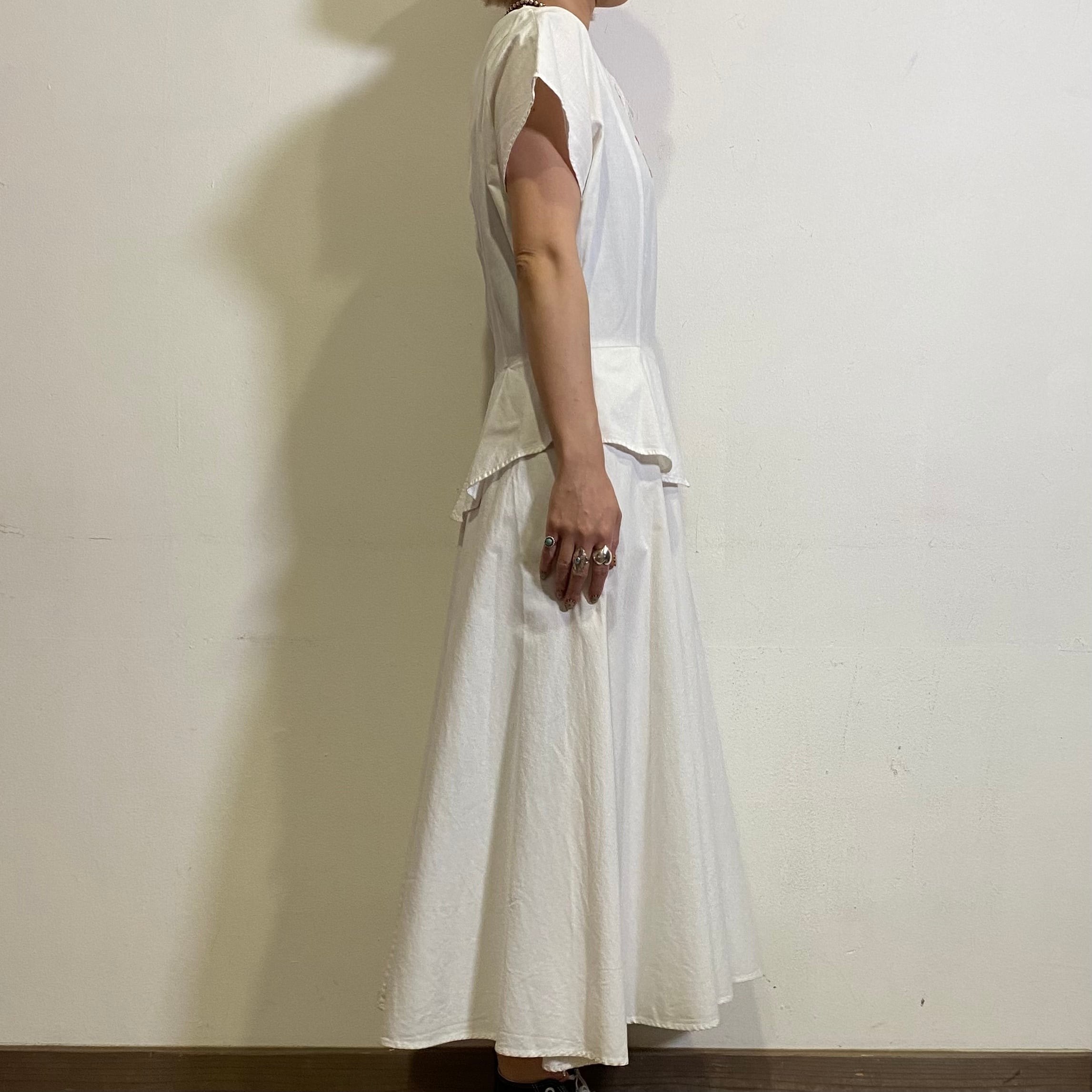 ウエストはペプラムになっており、裾にかけて広がるAラインシルエットが魅力的。