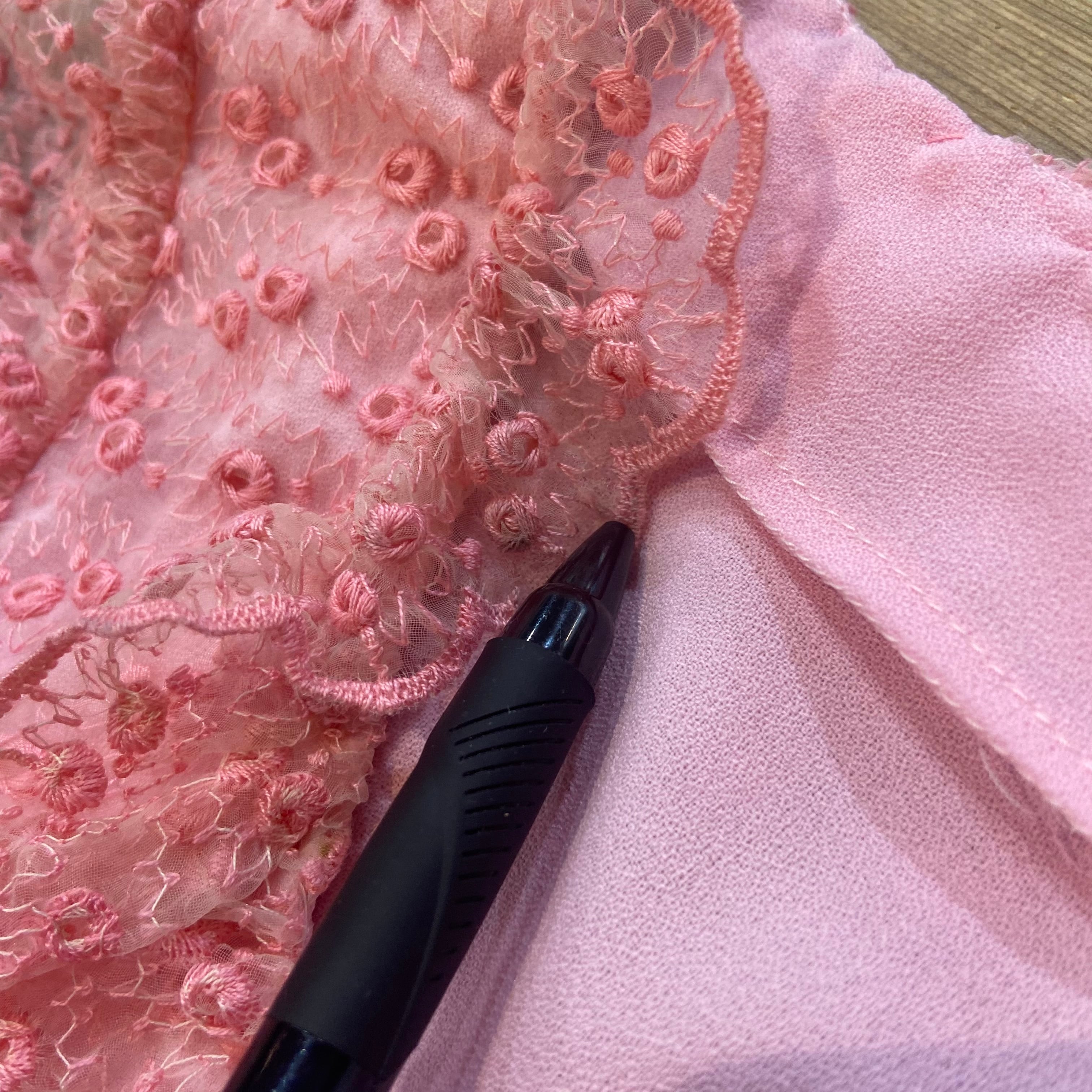 程よく開いたデコルテ周りやお袖周りのフリルも可愛いポイントですね。