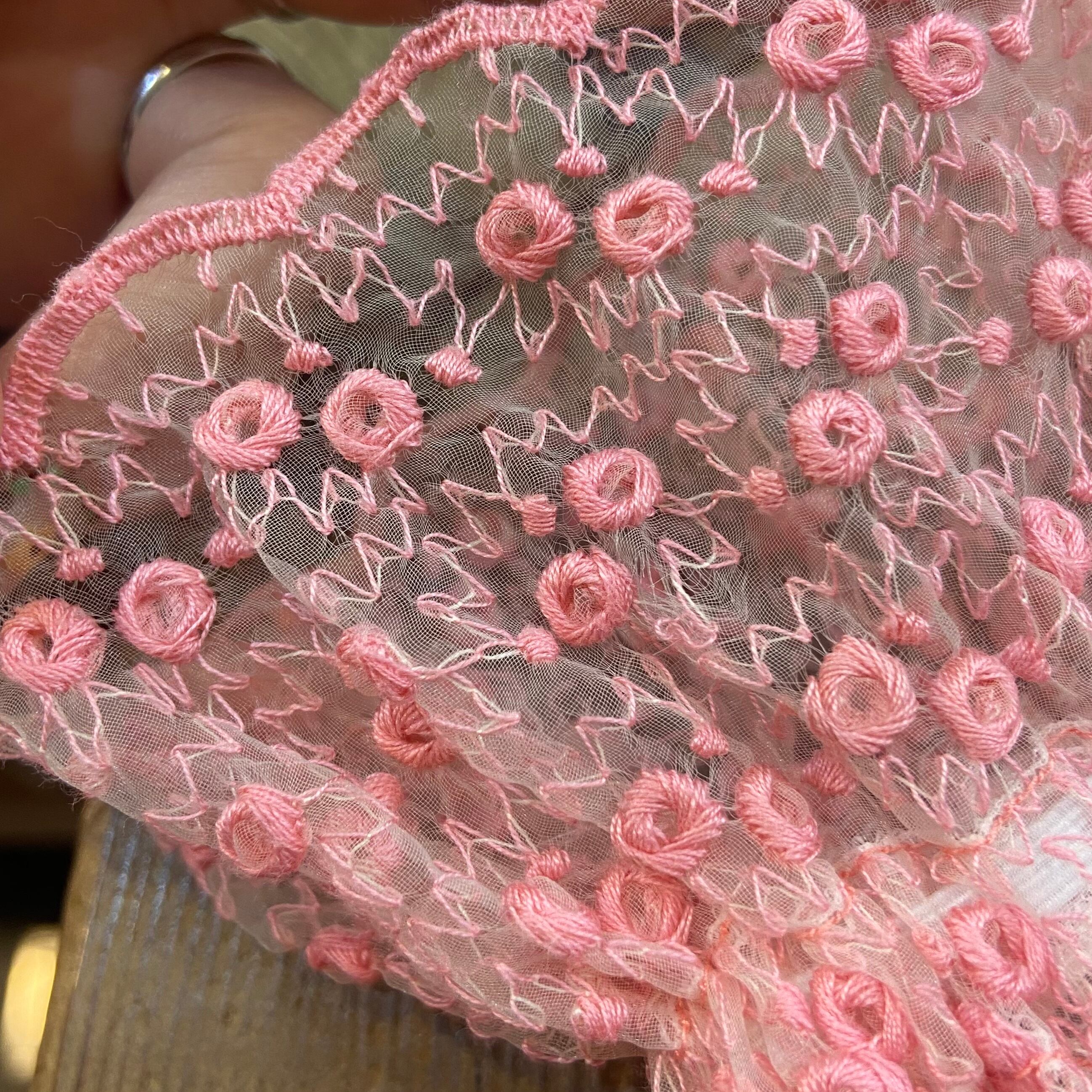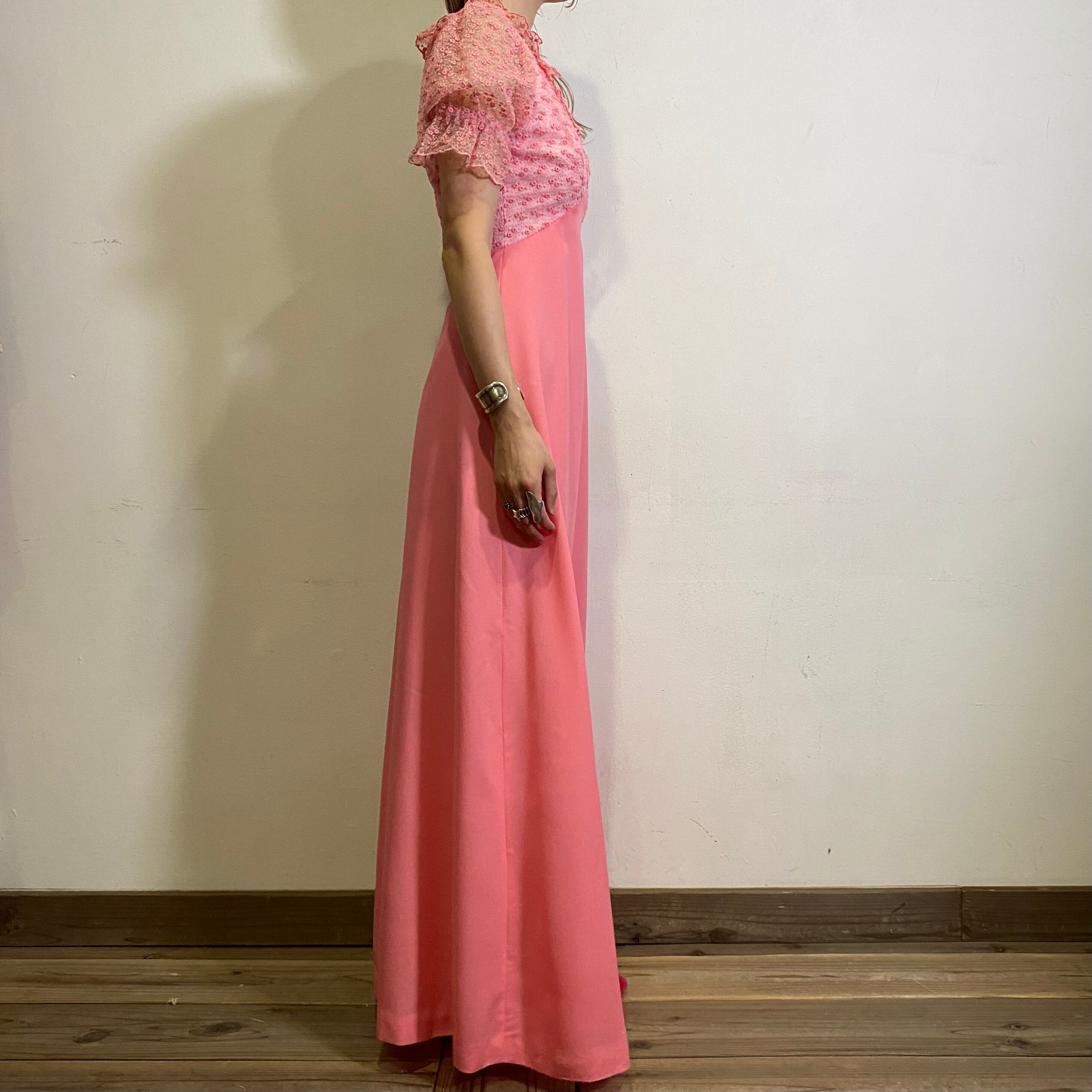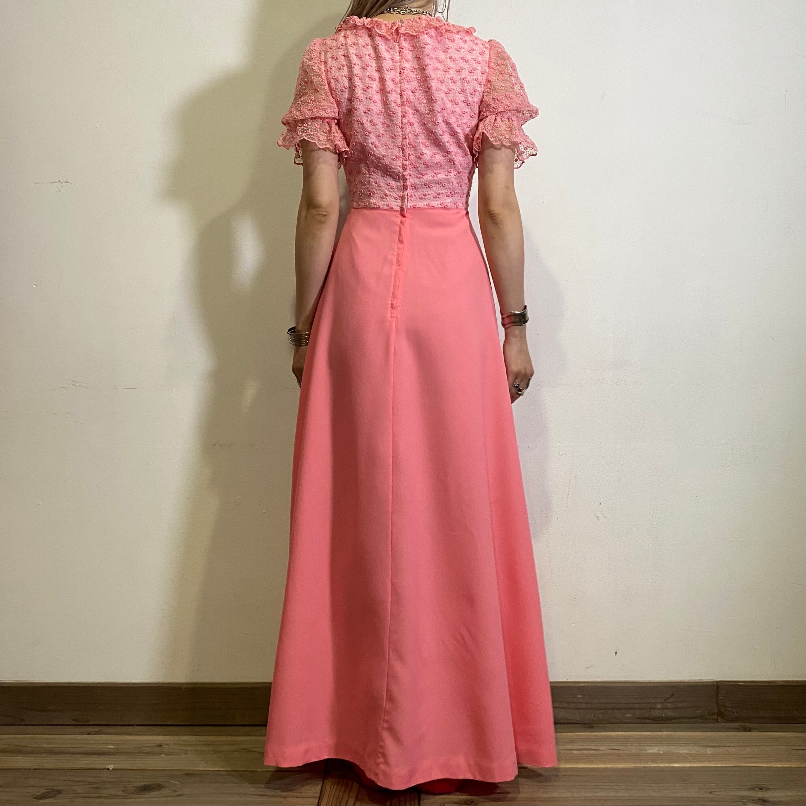 オーガンジー素材にお花の蕾のような細かい刺繍が施されたデザインが素敵な、70年代のロングワンピースです。