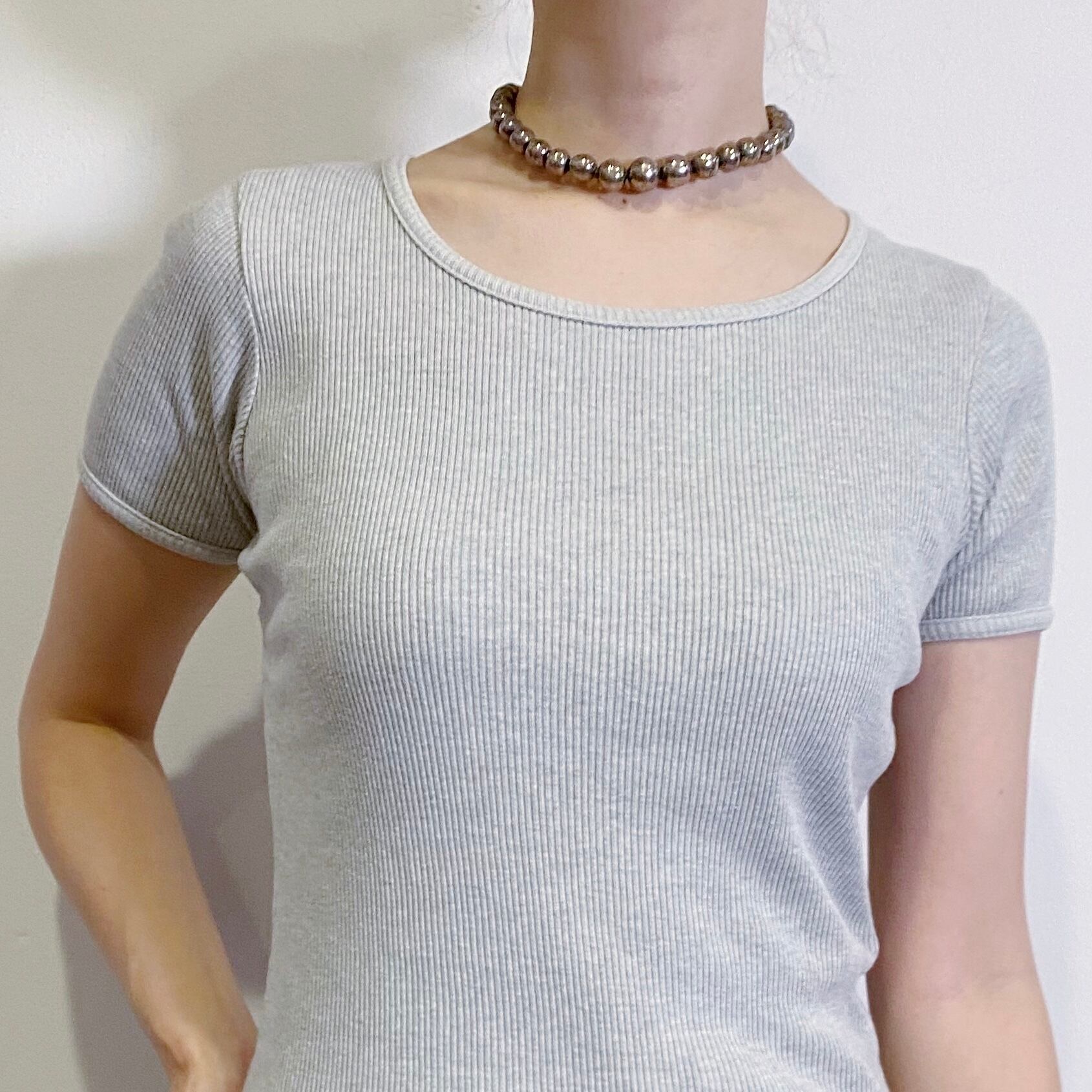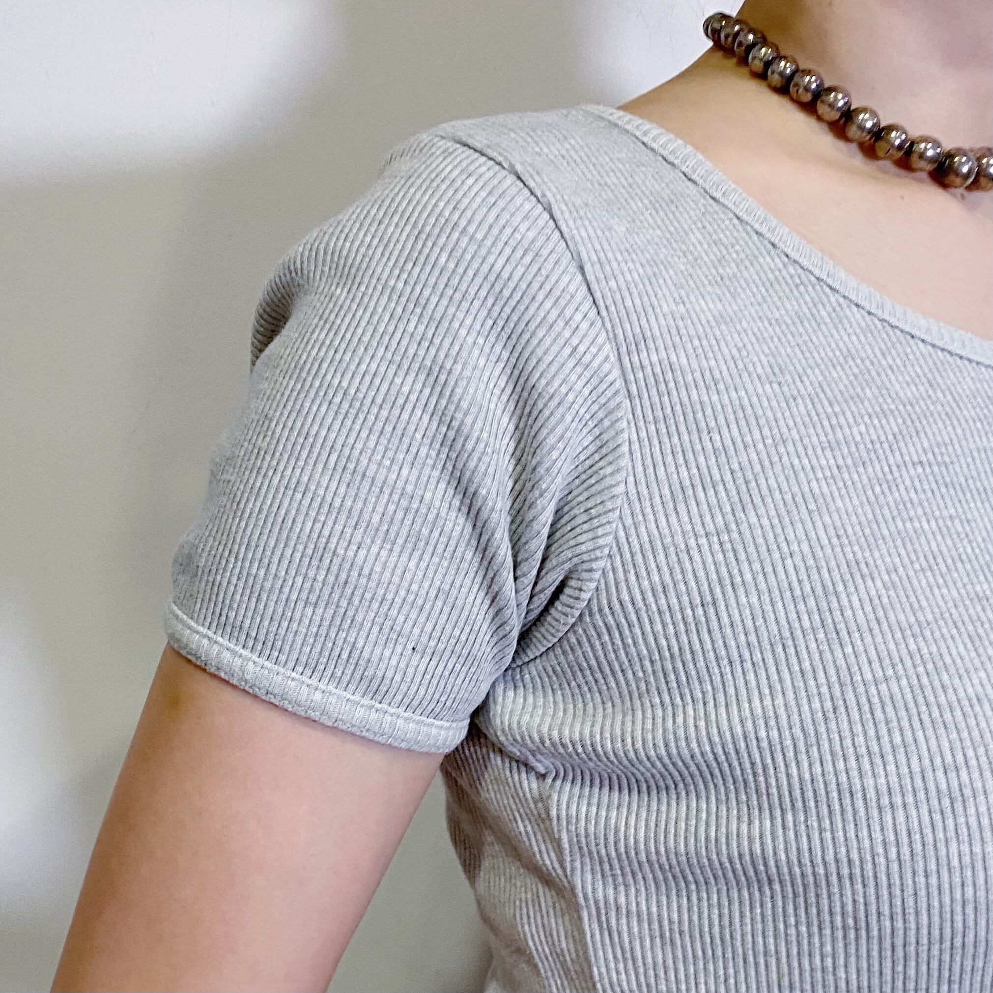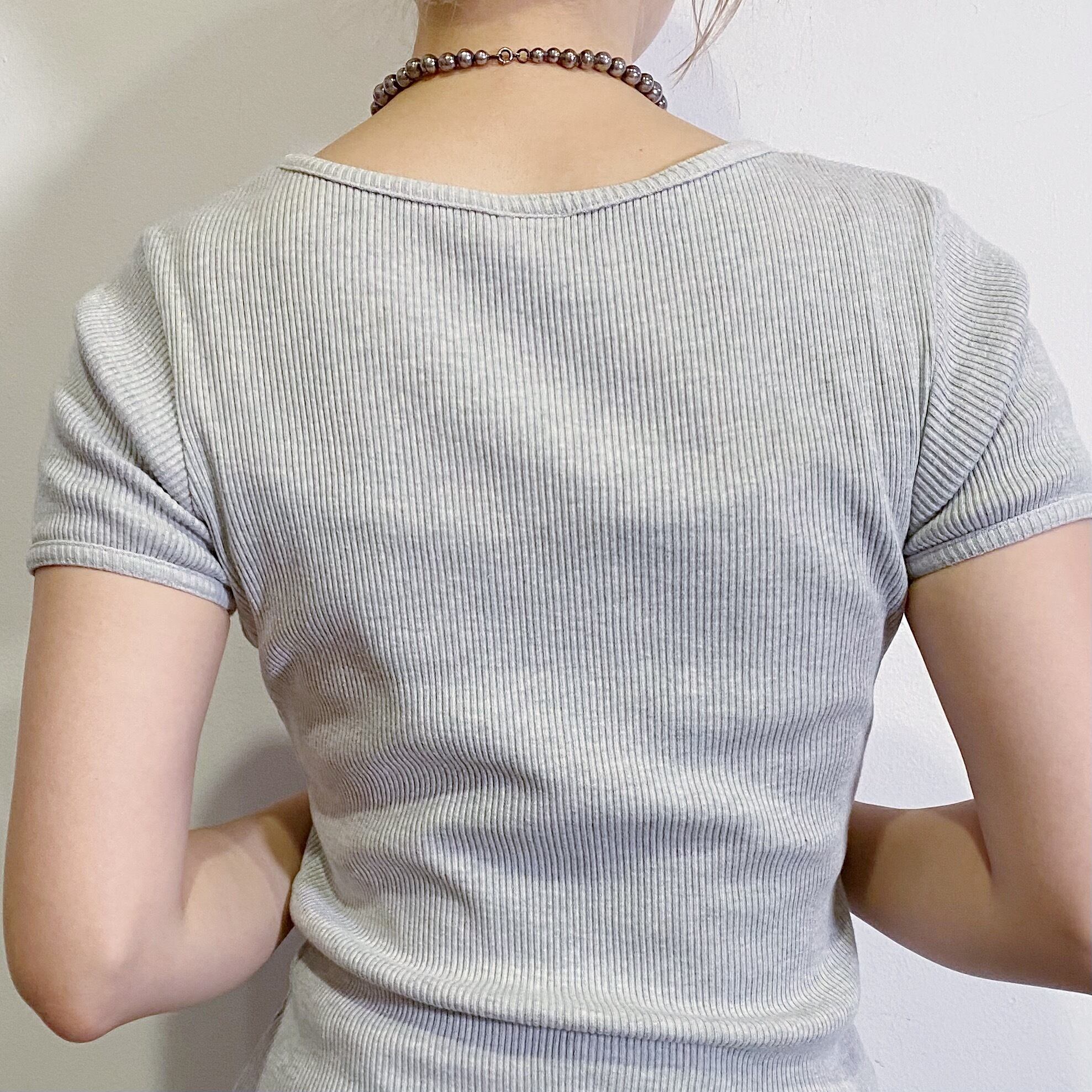 細リブに体にフィットするデザインで、Y2K感のあるトレンディな着こなしが楽しめます。