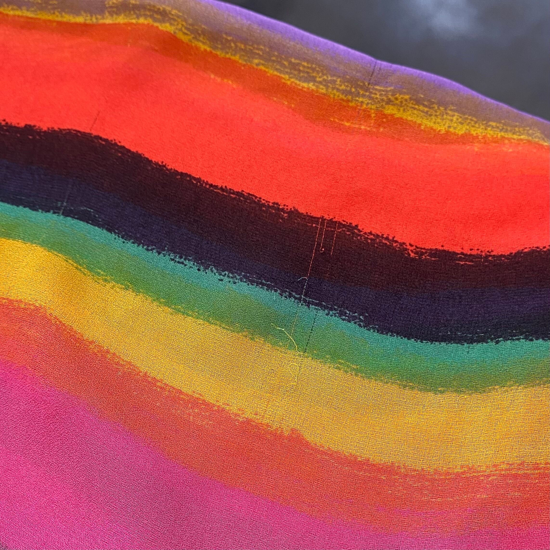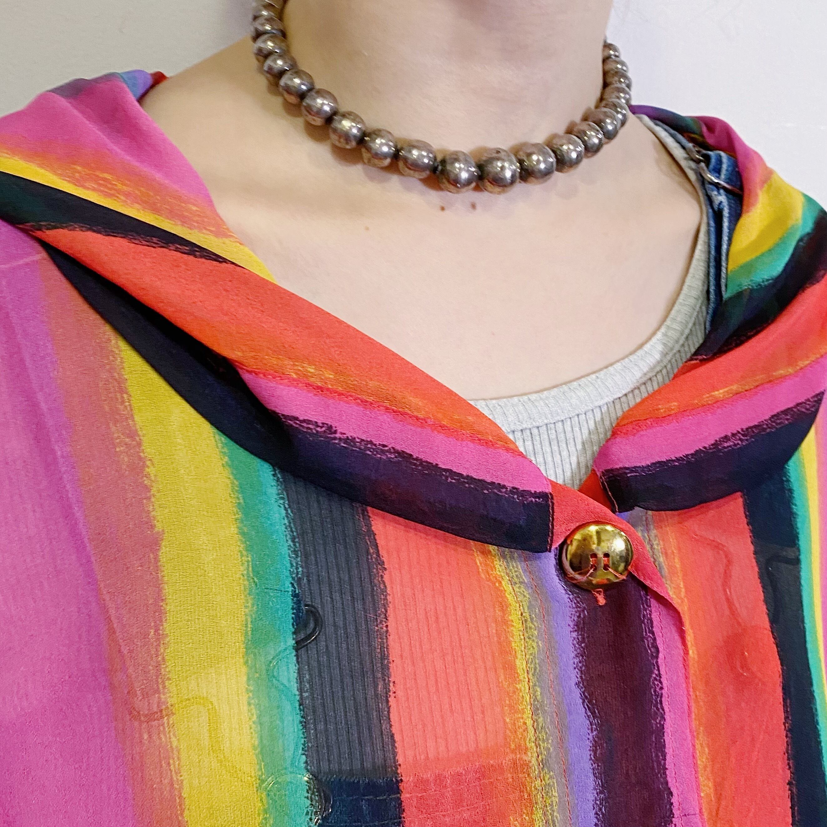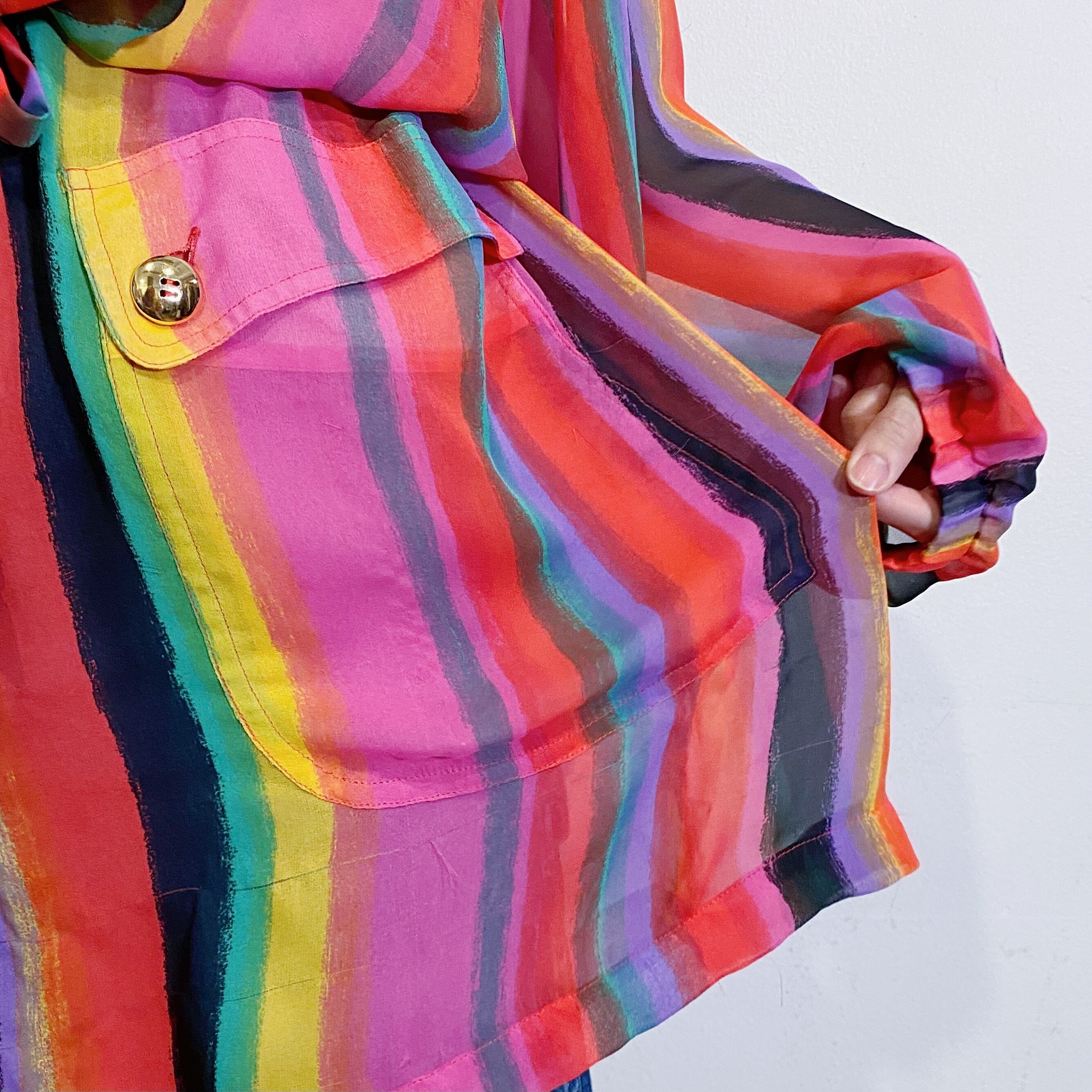 カラフルでハッピーなストライプが可愛い、80年代のフード付きジャケットです。