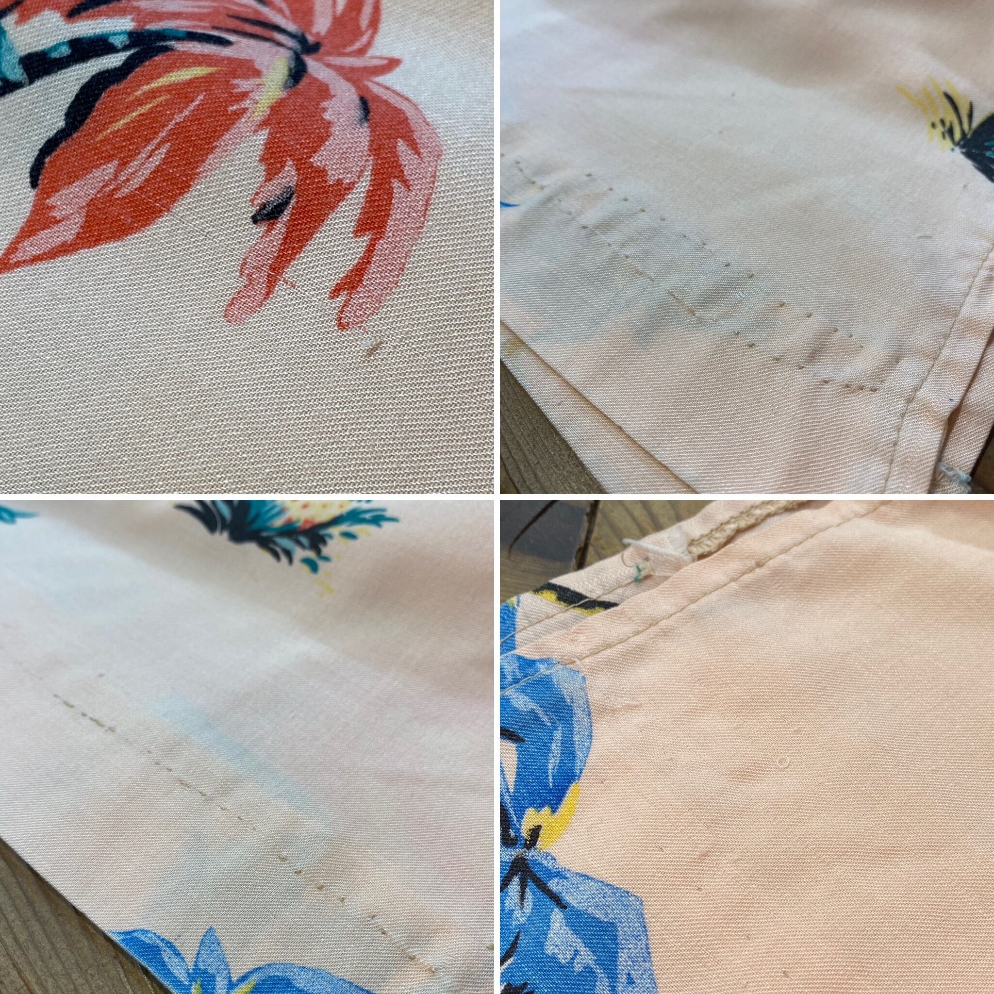 うっすらとしたシミやヨゴレ、引っ掛かりの跡、糸飛びしている箇所が見受けられます。