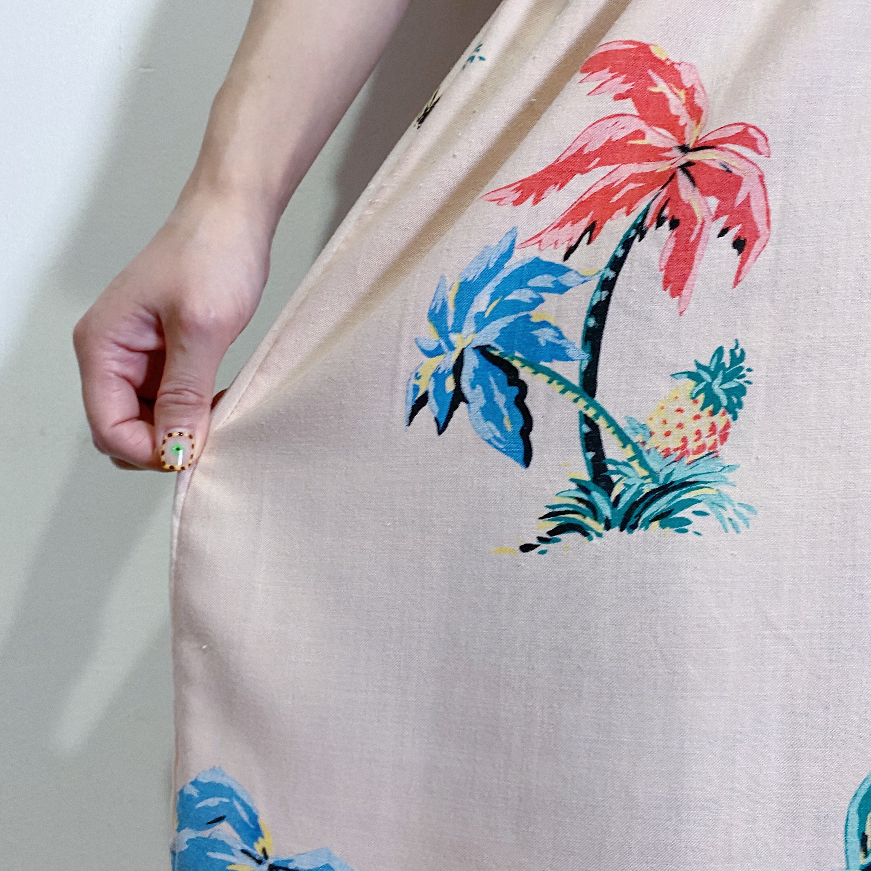 ピンクベースにヤシの木柄が可愛い、80年代のワンピースです。