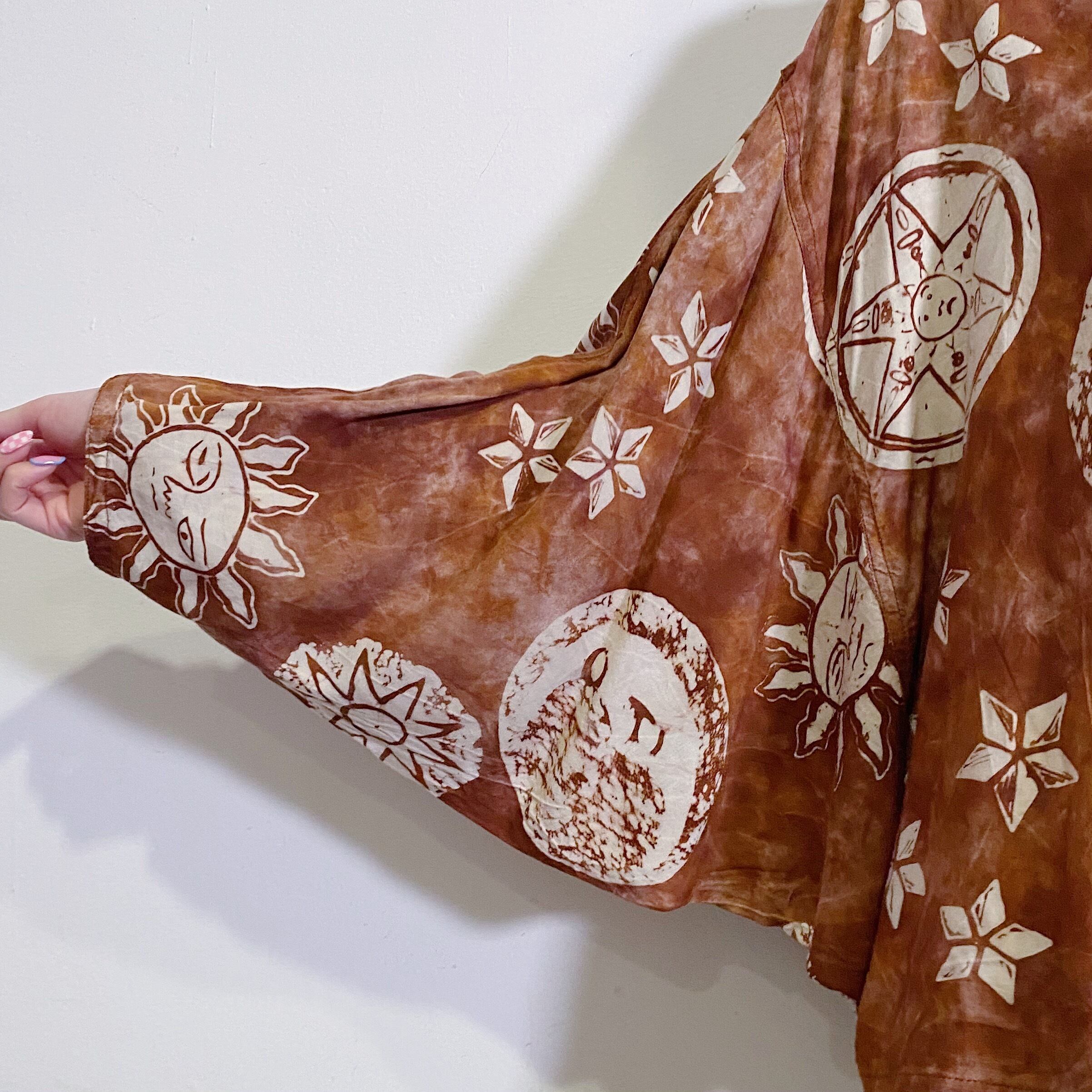 ゆるいタッチの太陽や星・惑星などのプリントが可愛い、90年代のトップスです。