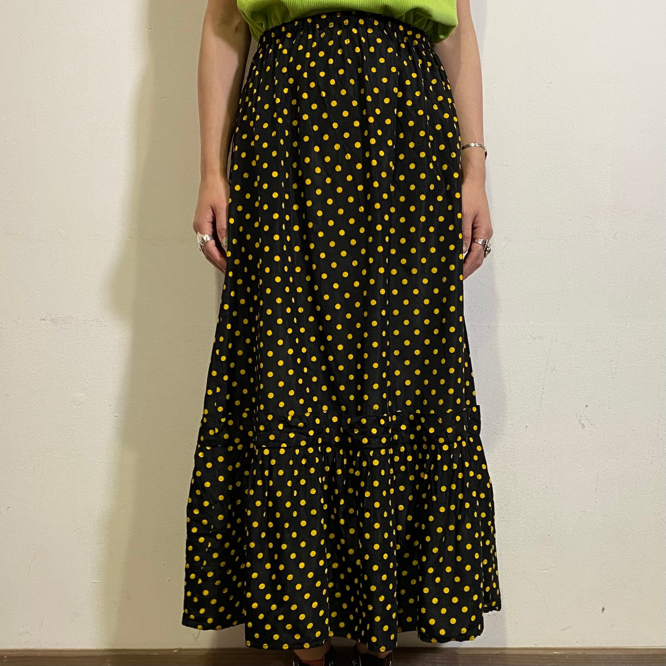 ブラックベースにイエローのドットが可愛い、80年代のスカートです。