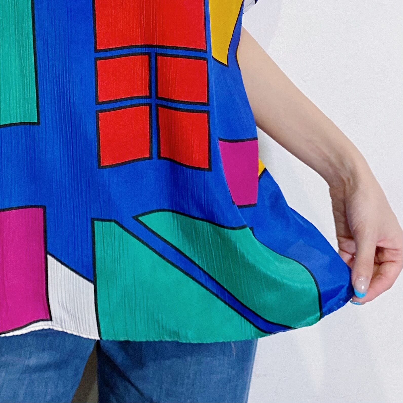 四角模様のまるでアートなテキスタイルが可愛い、80年代のトップスです。