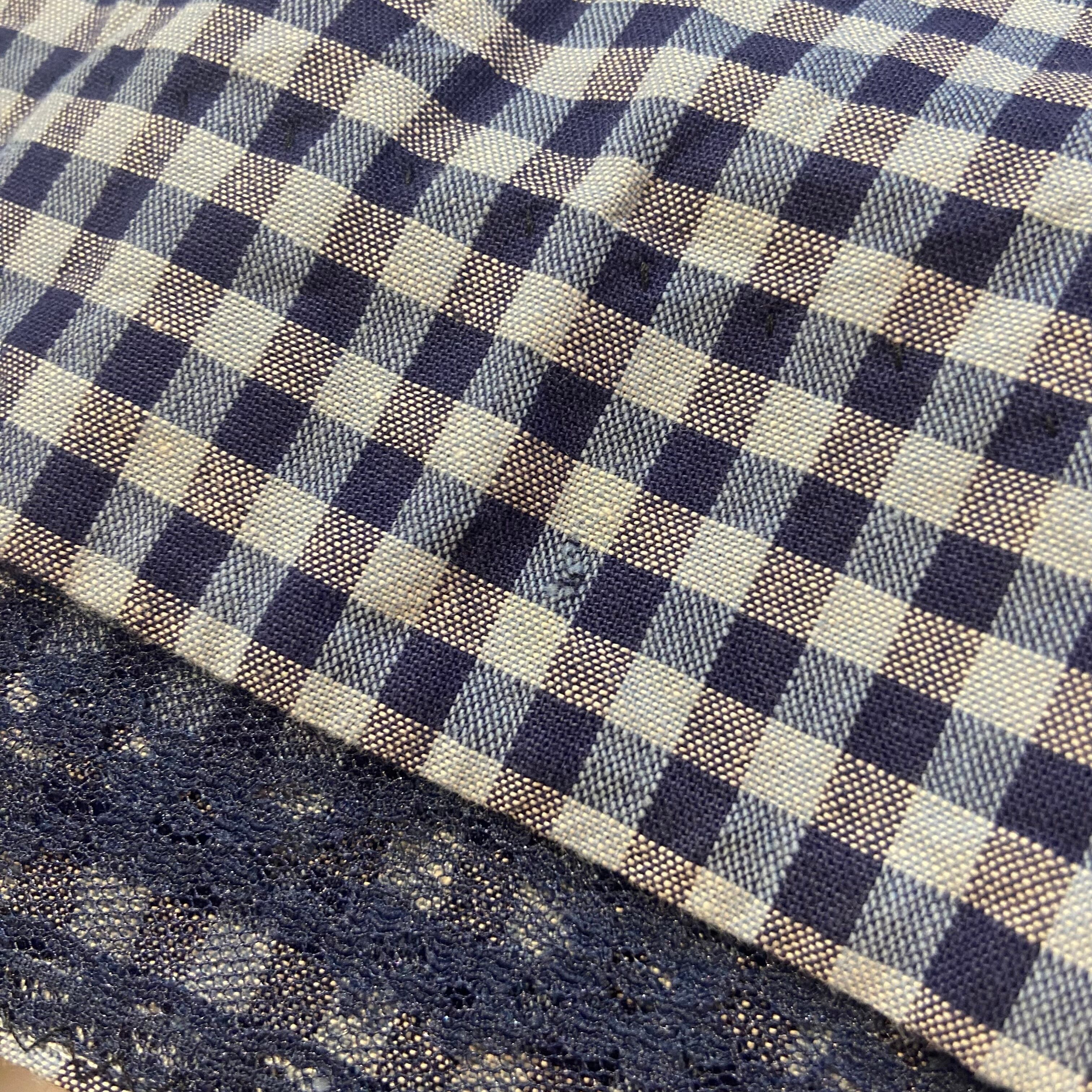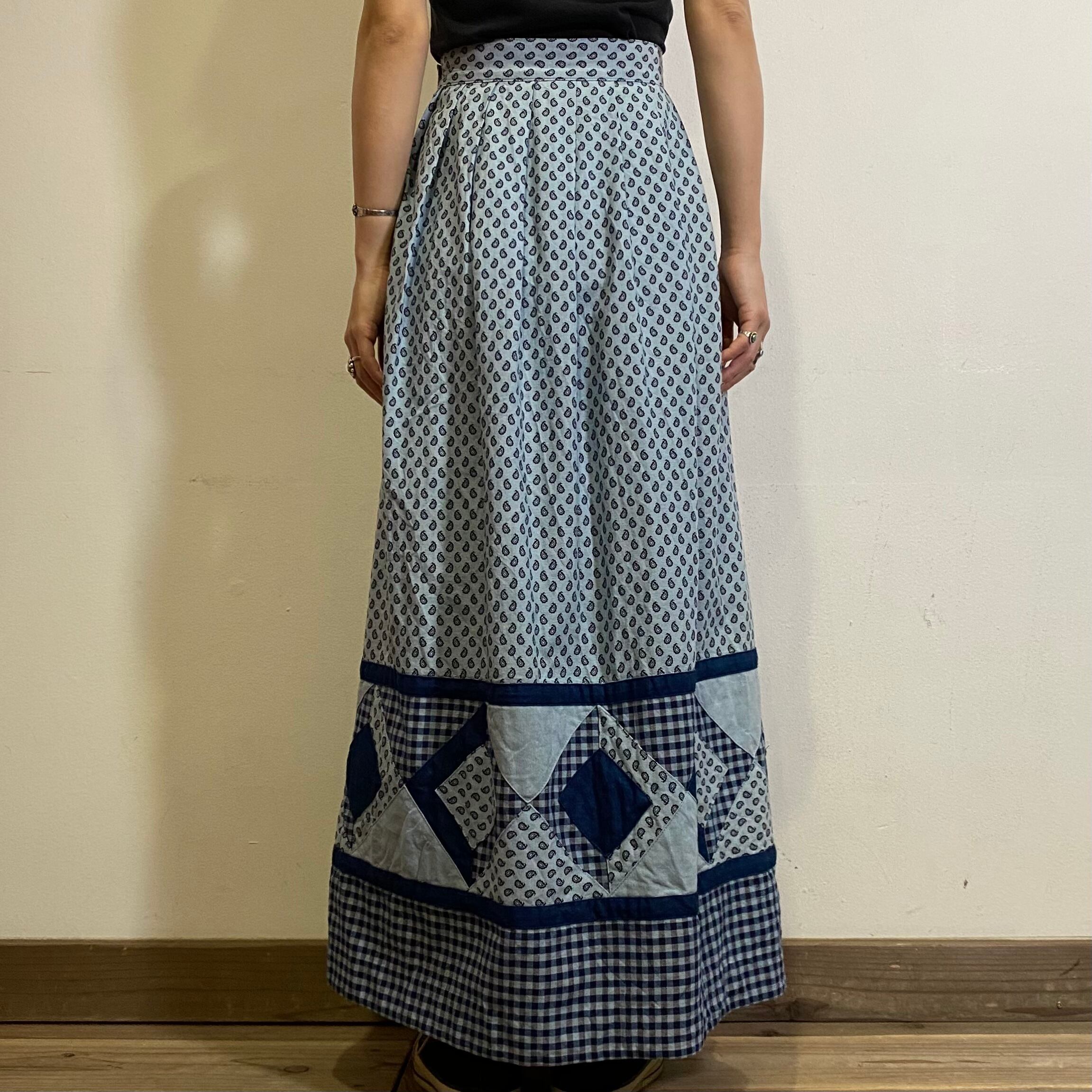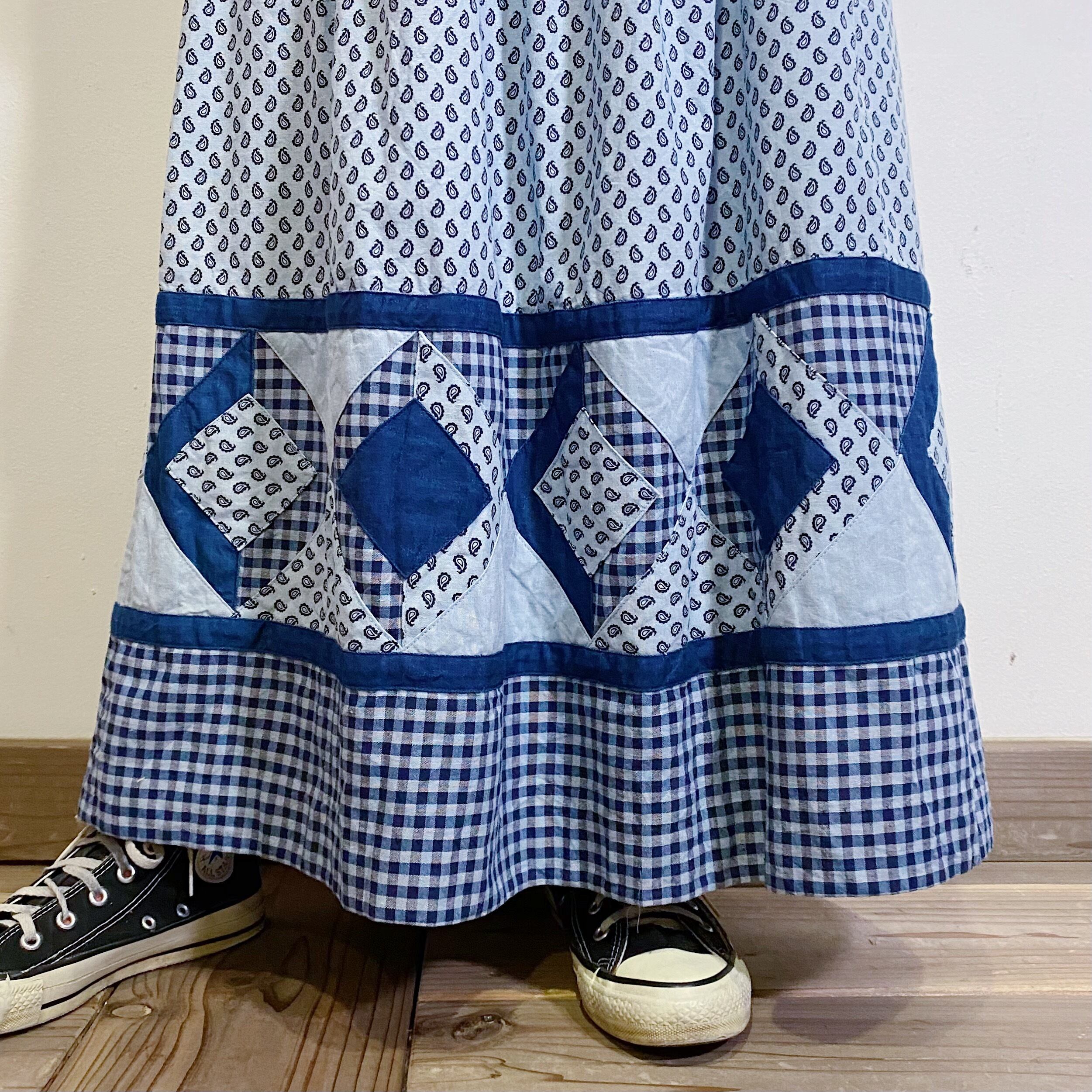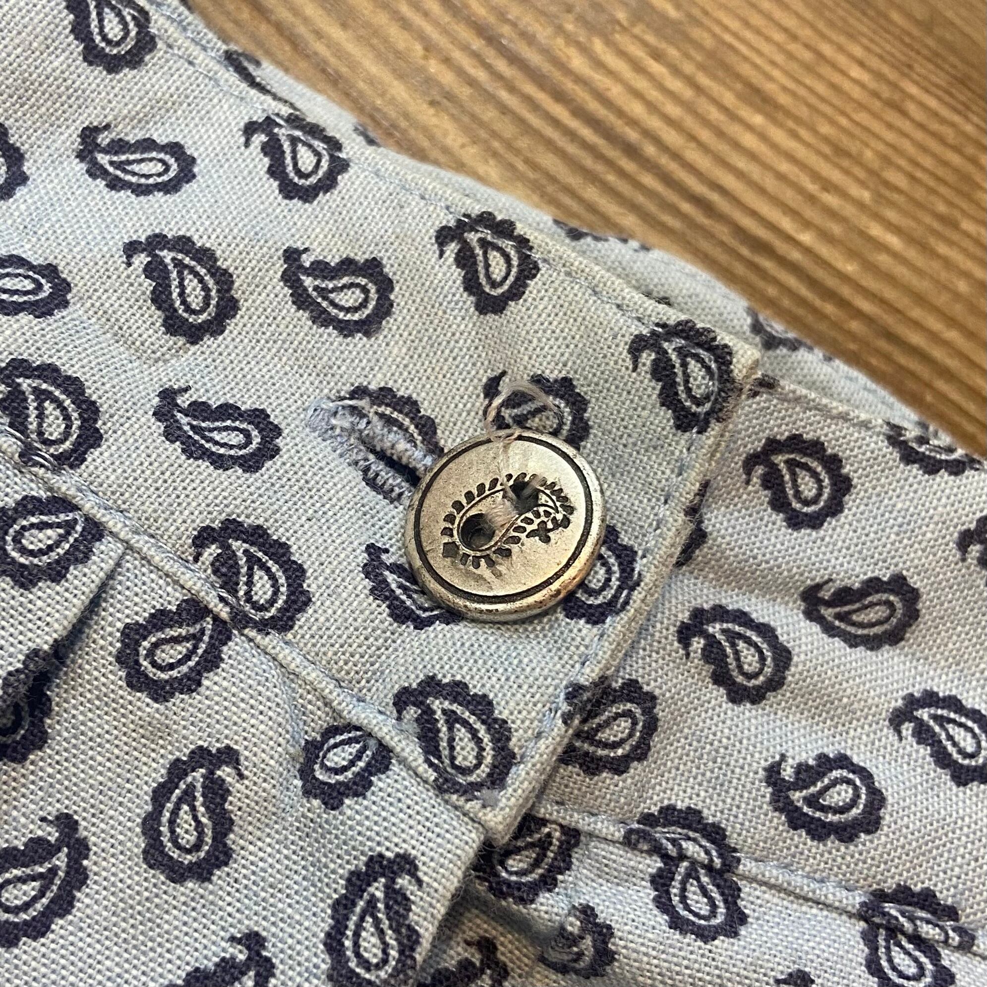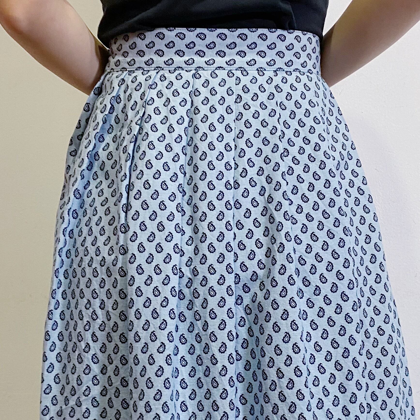 サックスブルーベースに、ペイズリーとチェックの組み合わせがとってもキュート。