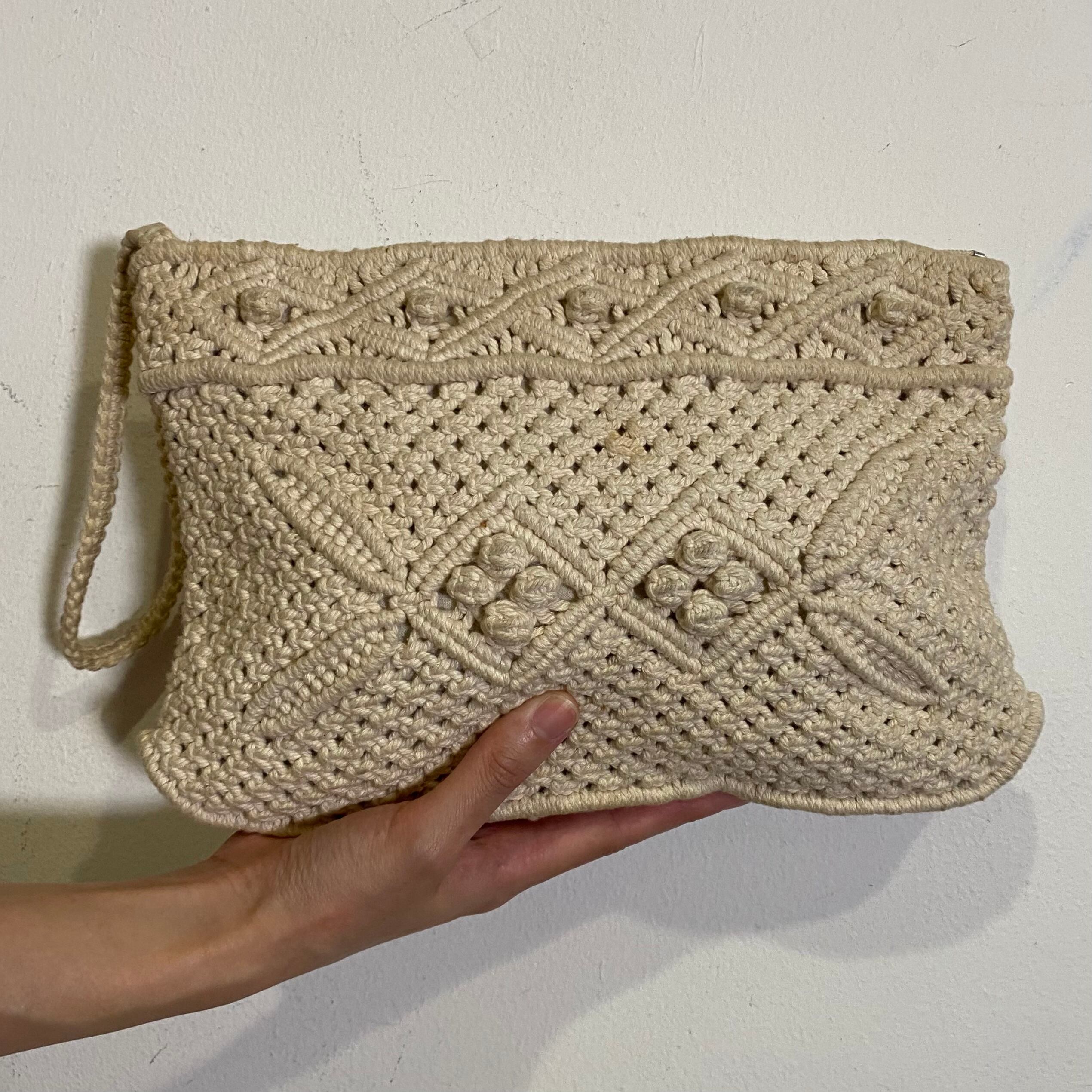コットン素材のマクラメ編みが可愛い、70年代のバッグです。