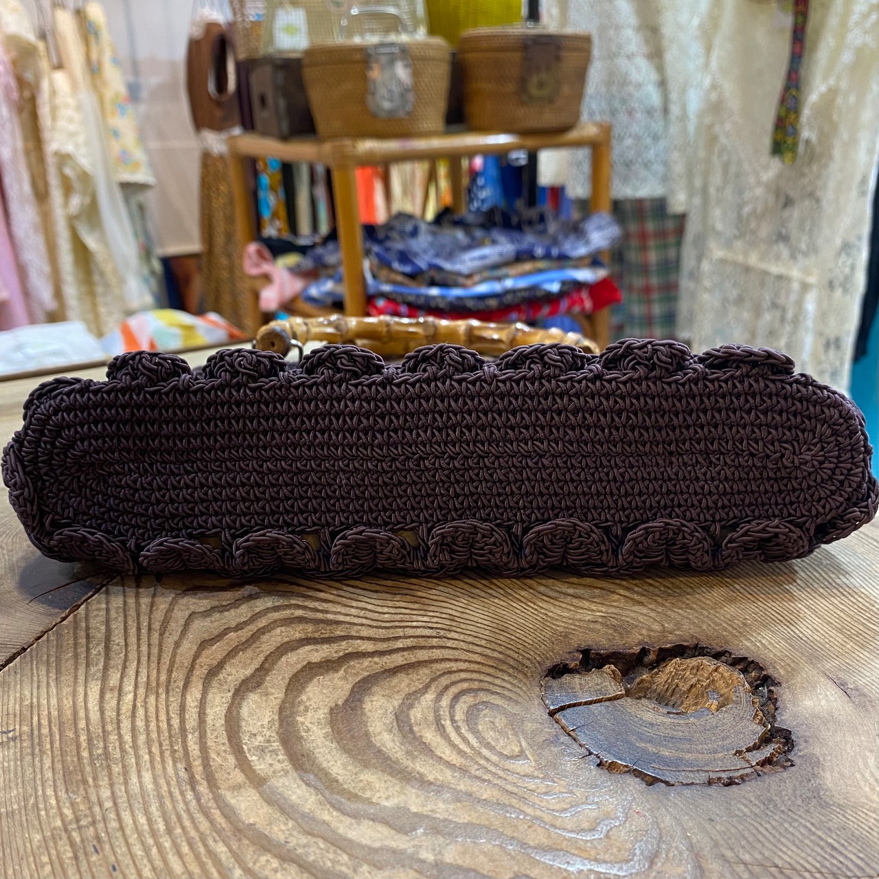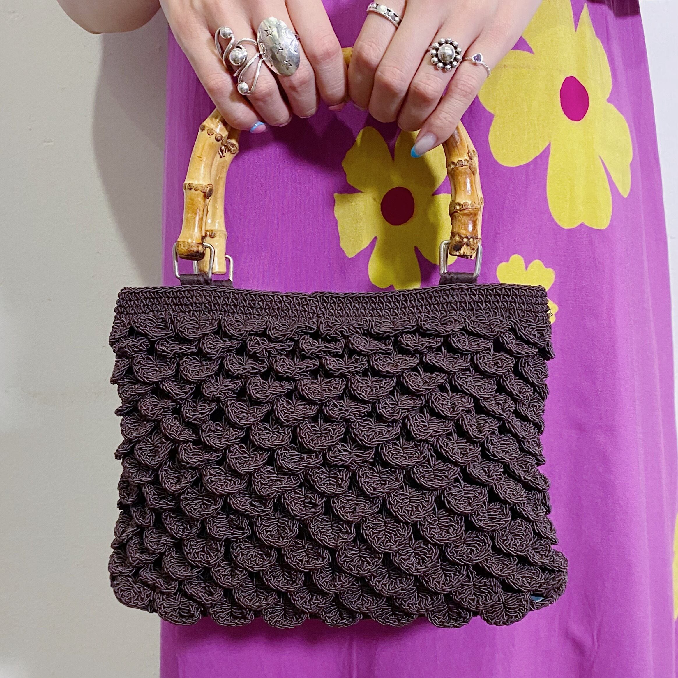 こっくりブラウンの色合いが可愛い、クロシェハンドバッグです。