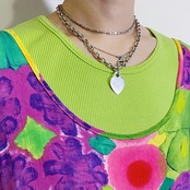 まるでフルーツを輪切りにしたかのような、アートなデザインが可愛いノースリーブワンピースです。