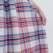 こちらは、ラッフルカラーに赤×青のチェックが可愛い一枚。