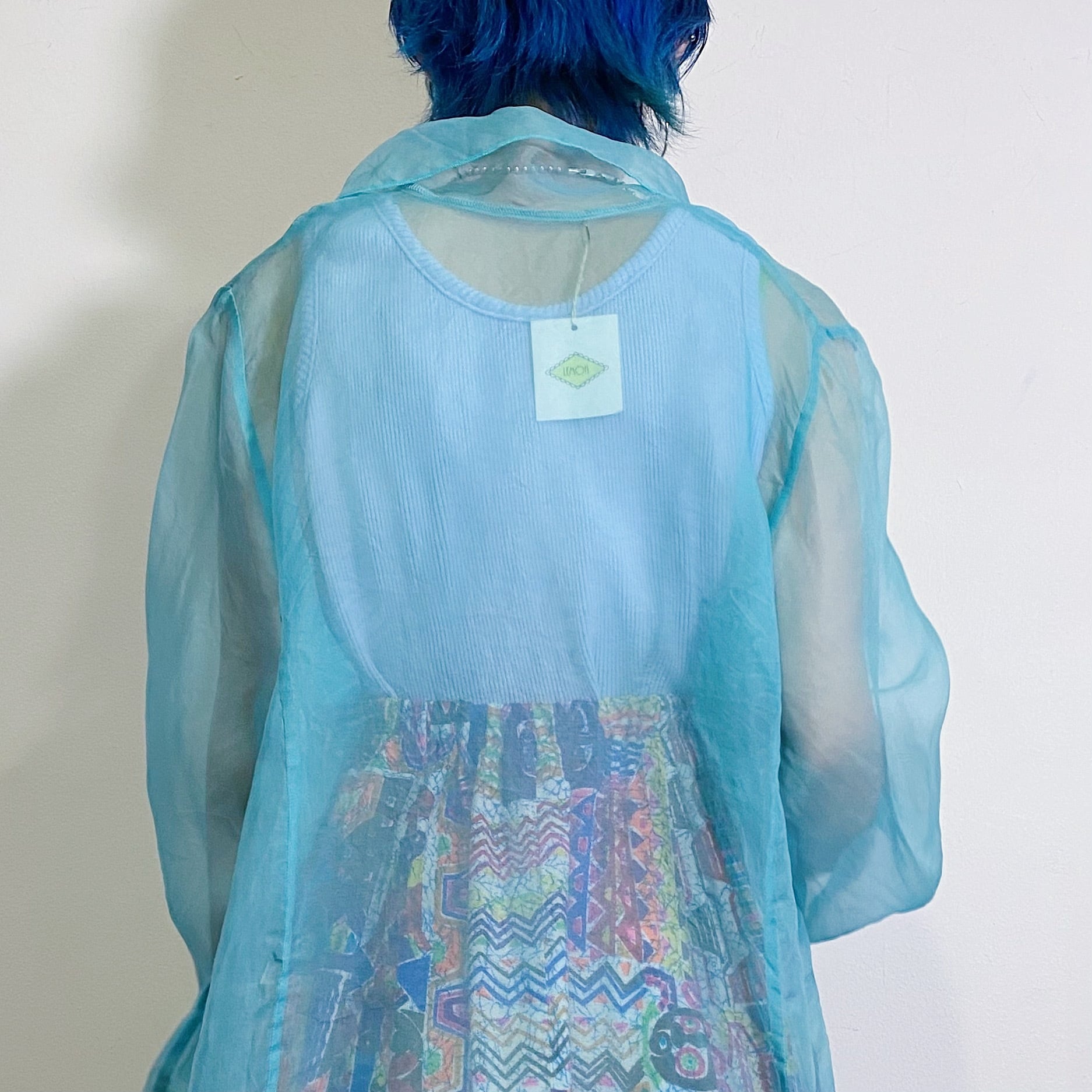 ブルーの色合いと透け感が可愛い、70〜80年代のシャツです。