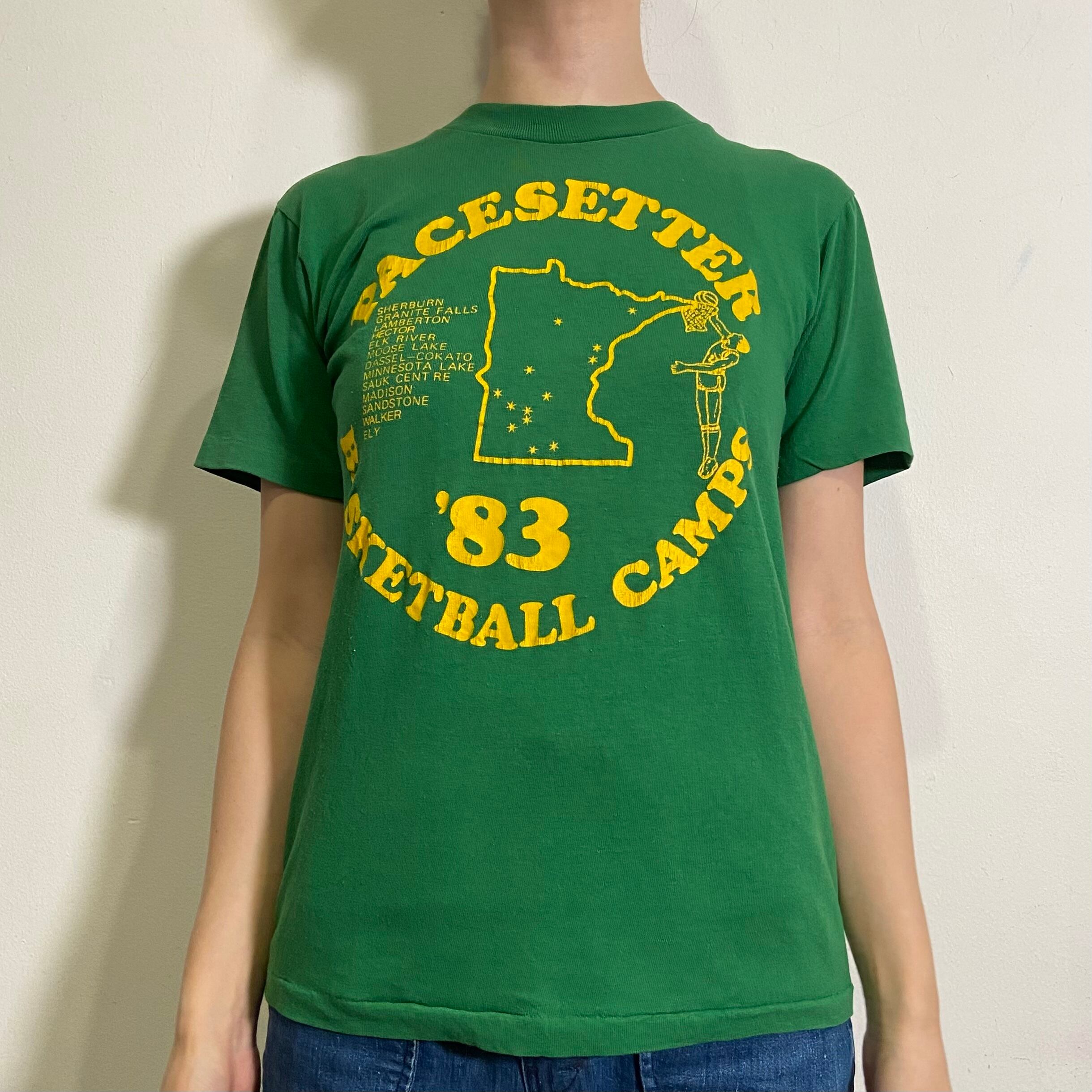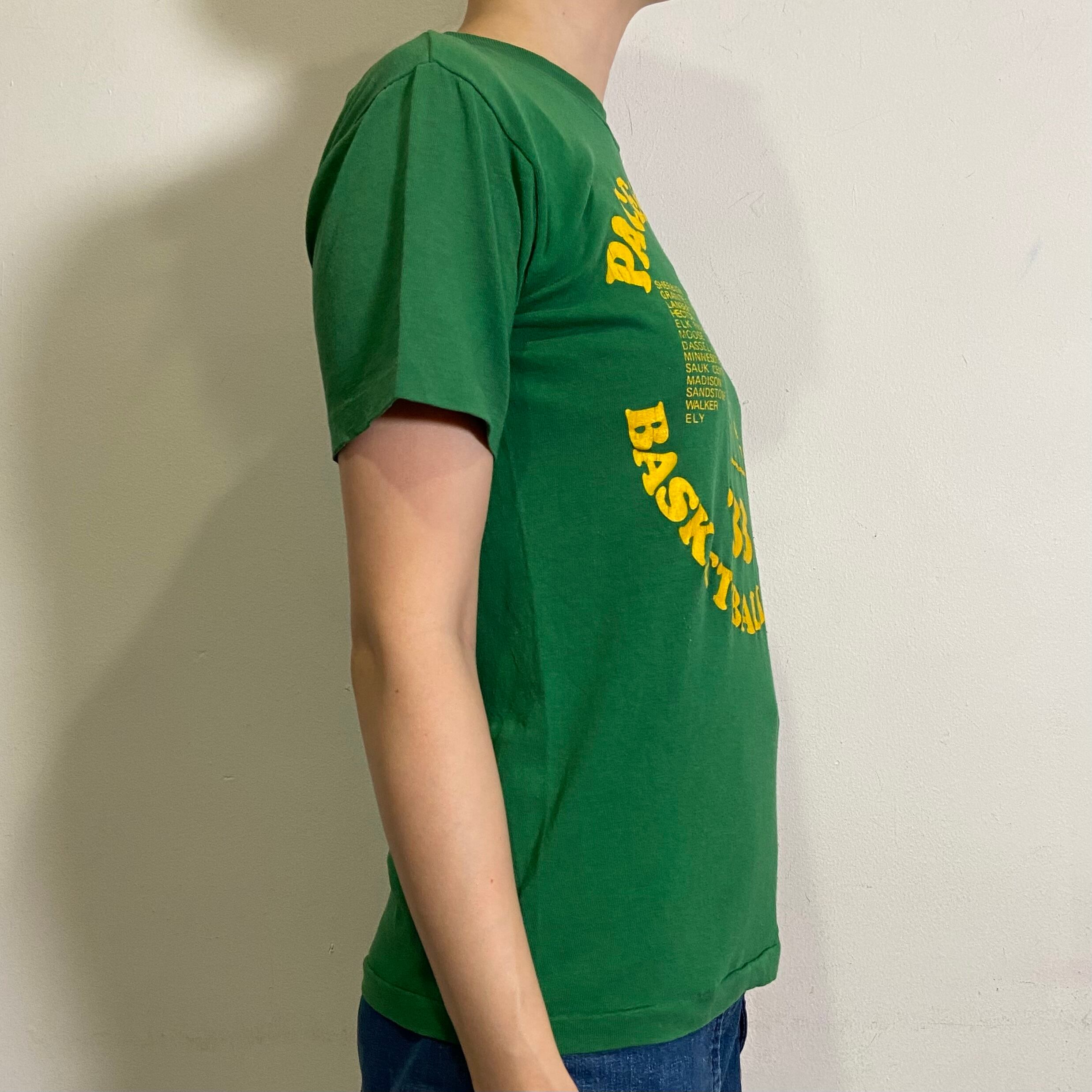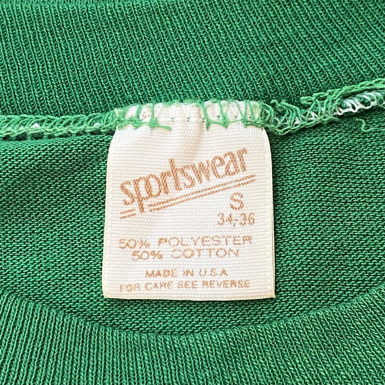 グリーンベースにイエローのプリントが可愛い、80年代のTシャツです。