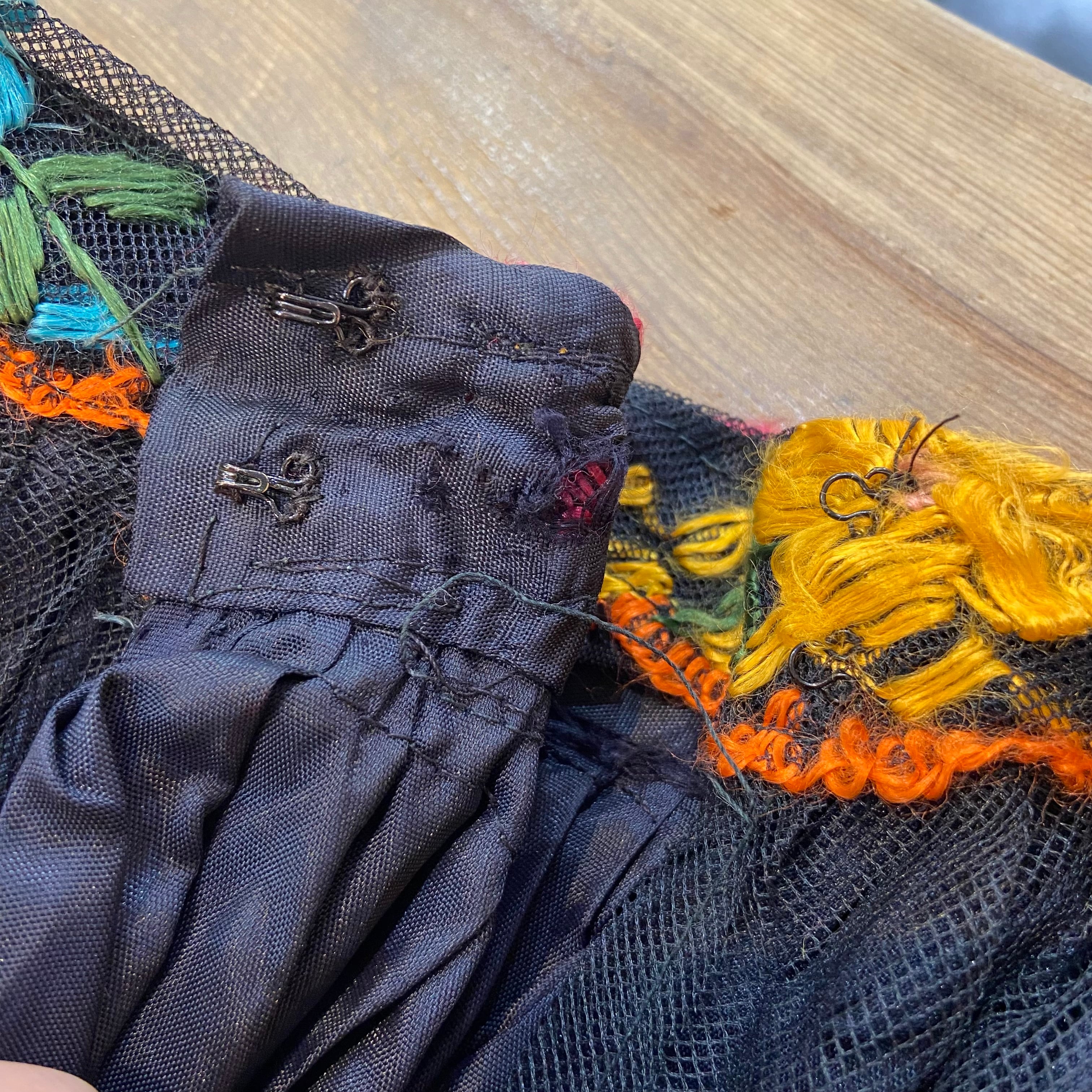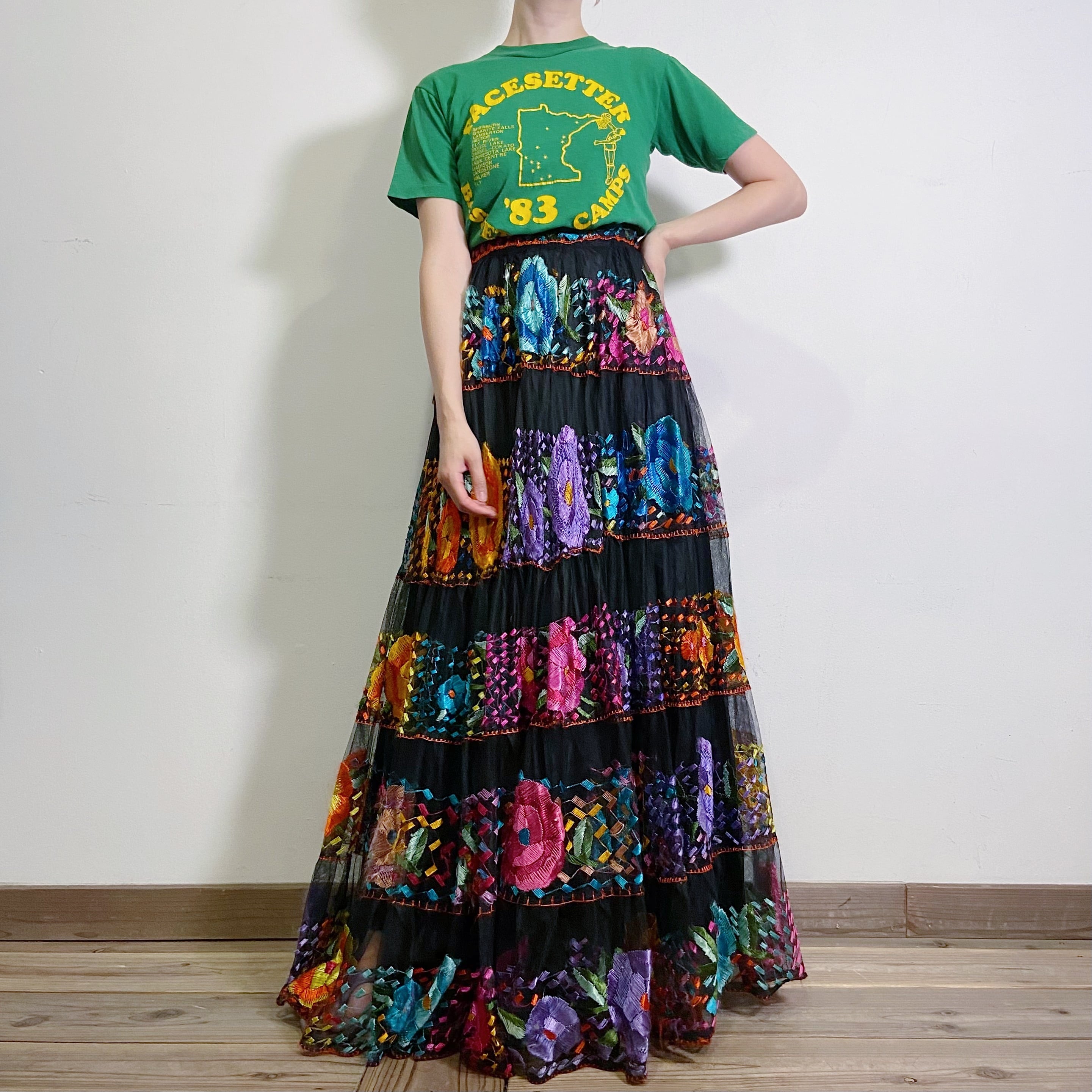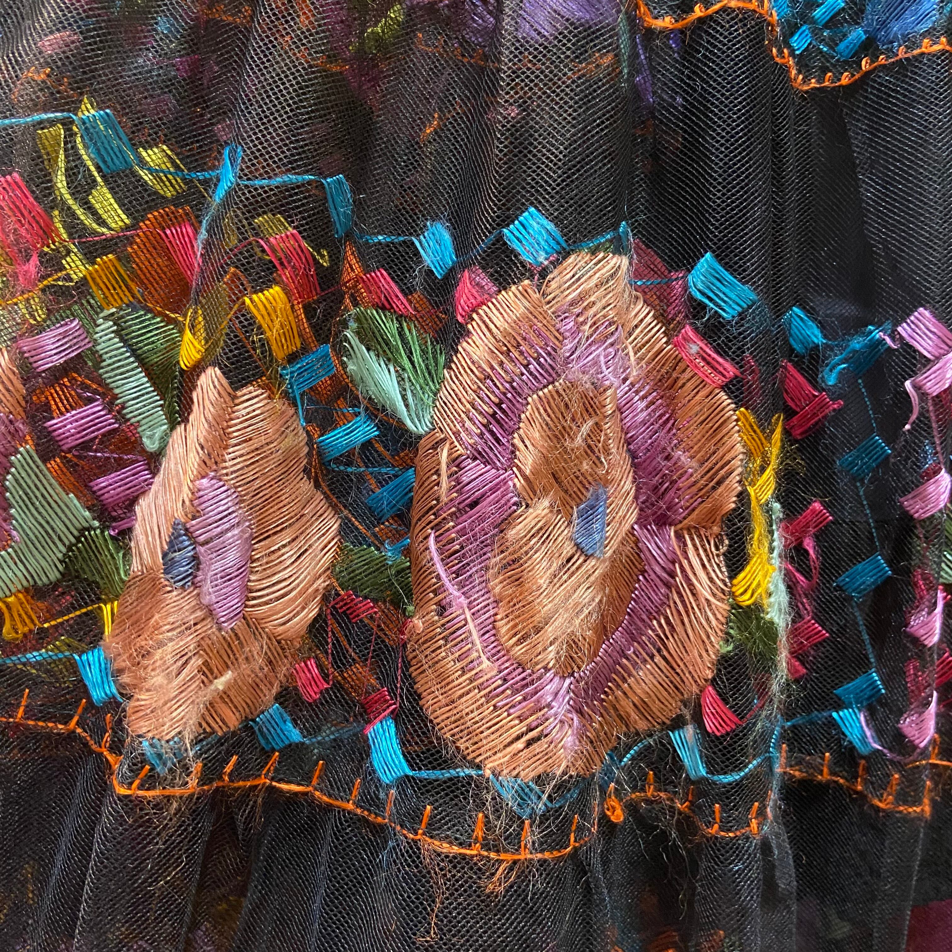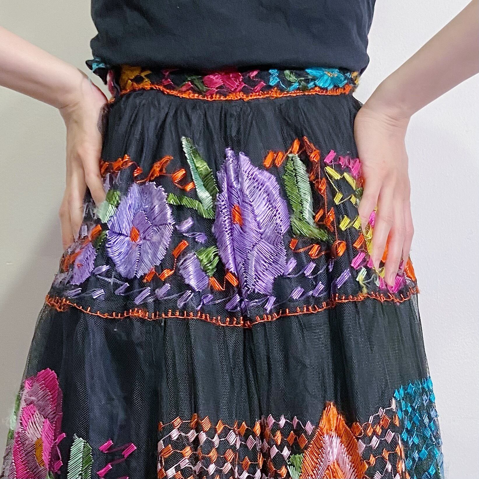 びっしりと施されたお花の手刺繍が可愛い、メキシコの伝統的な60年代のチュールスカートです。