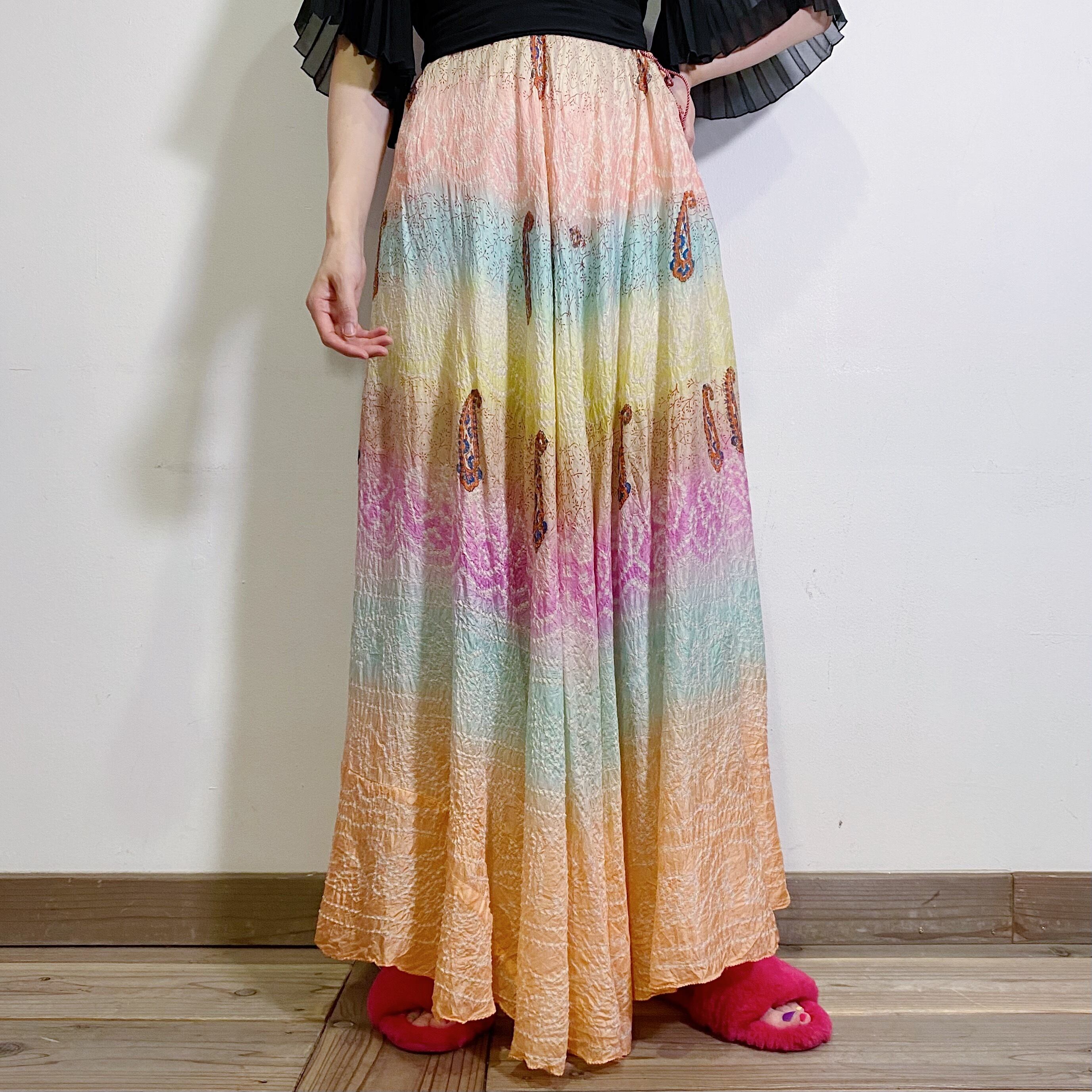 淡いパステルカラーのグラデーションがとっても素敵な、ロングスカートです。