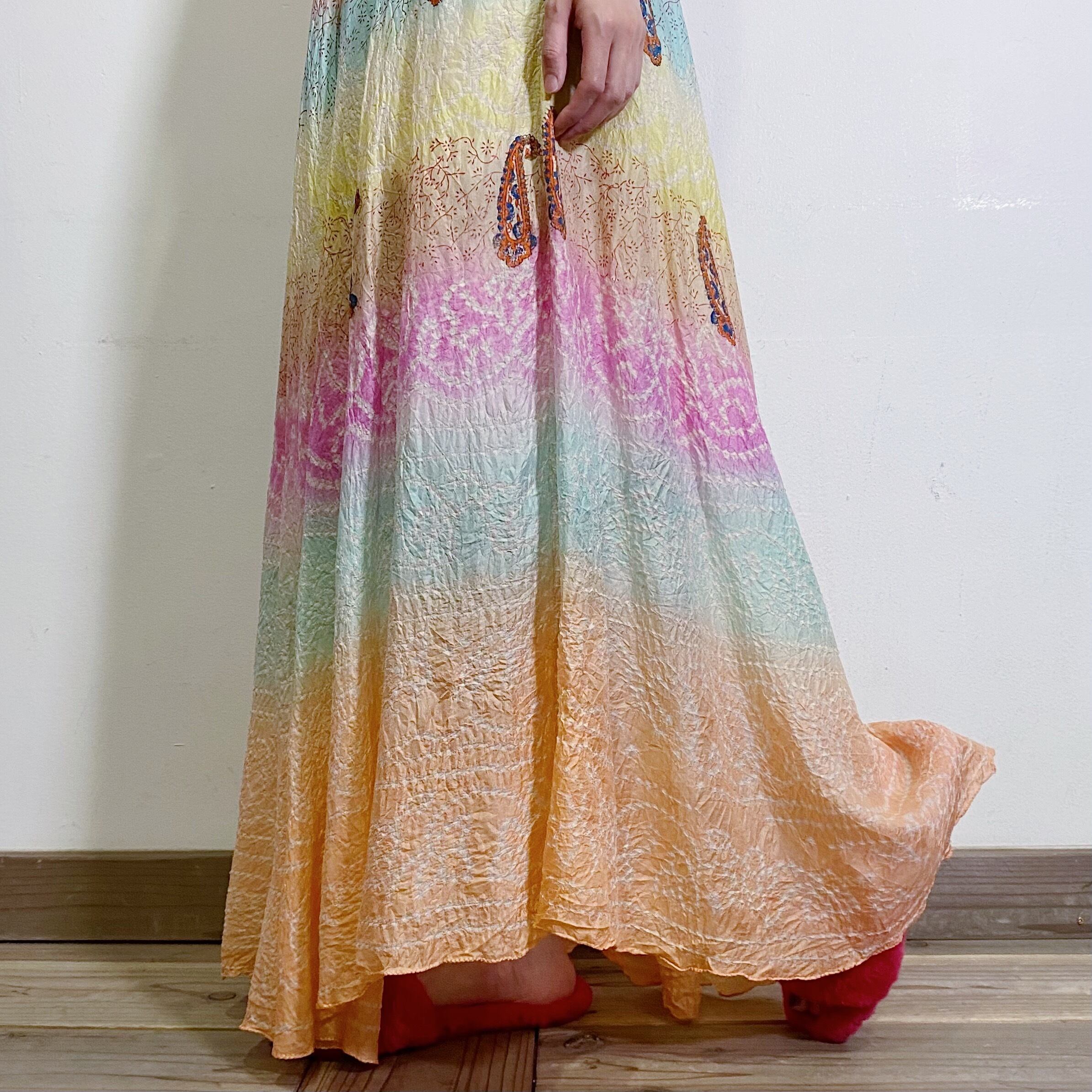 Indian silk plaster color long skirt