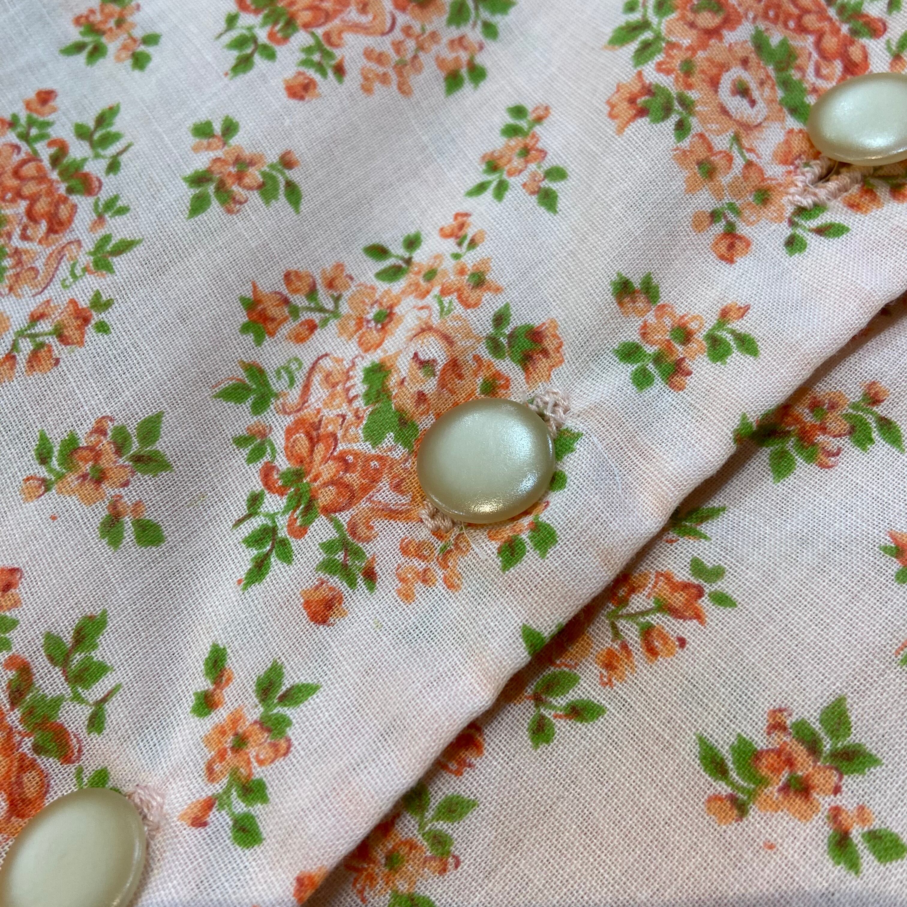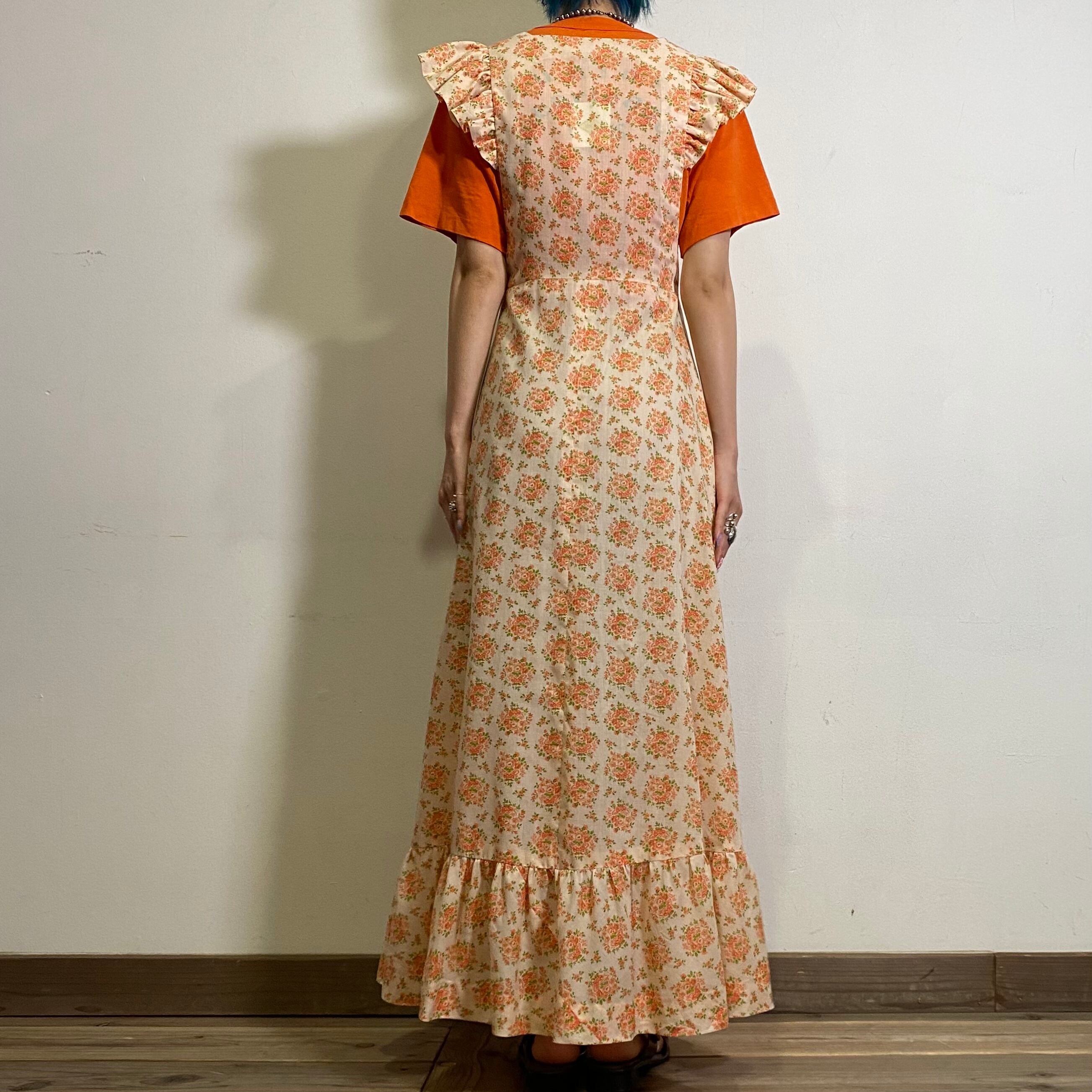 オレンジのブーケのようなお花柄が可愛い、70年代のロングワンピースです。