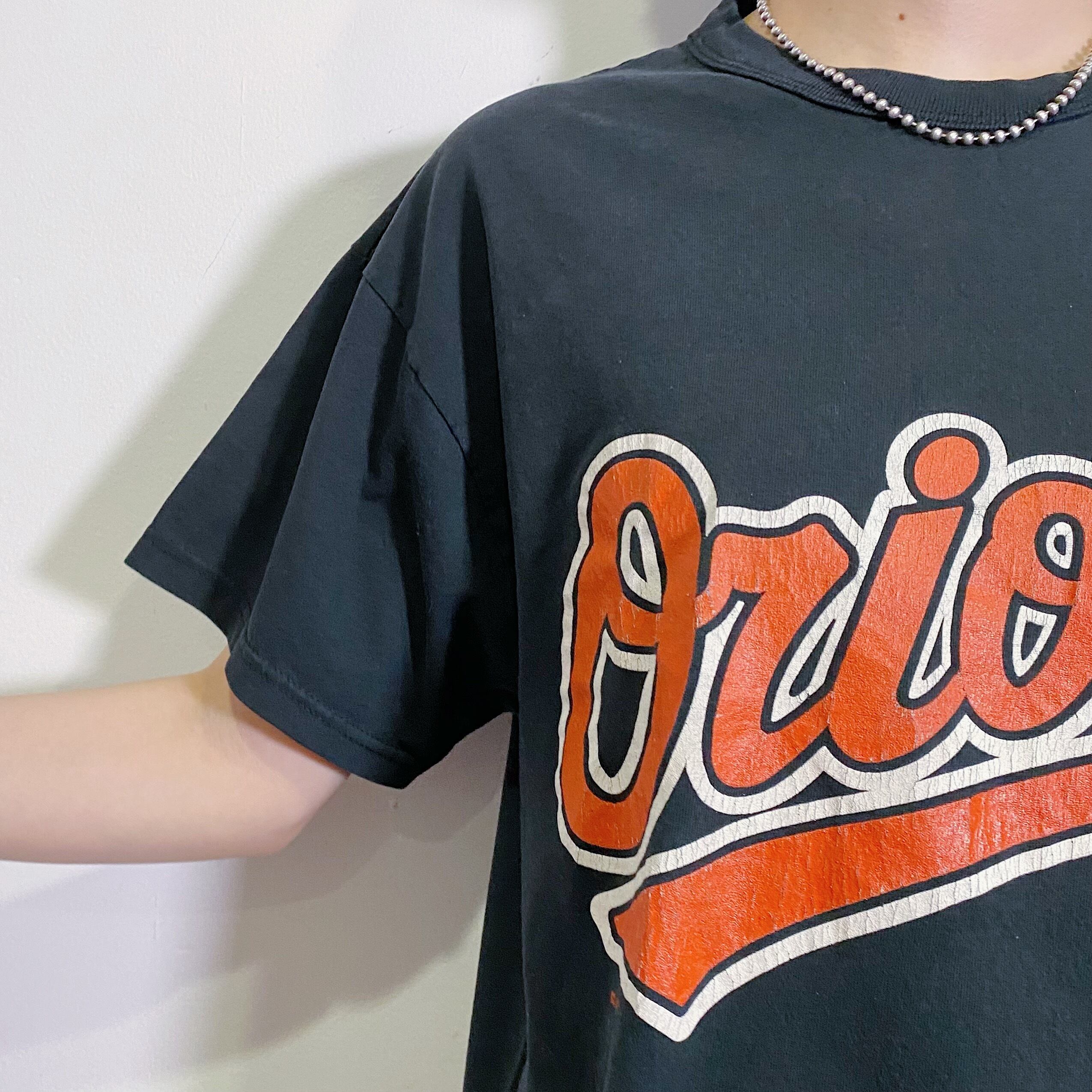 ブラックベースにオレンジの大きなプリントロゴが映える、ラッセルボディの80年代のTシャツです。