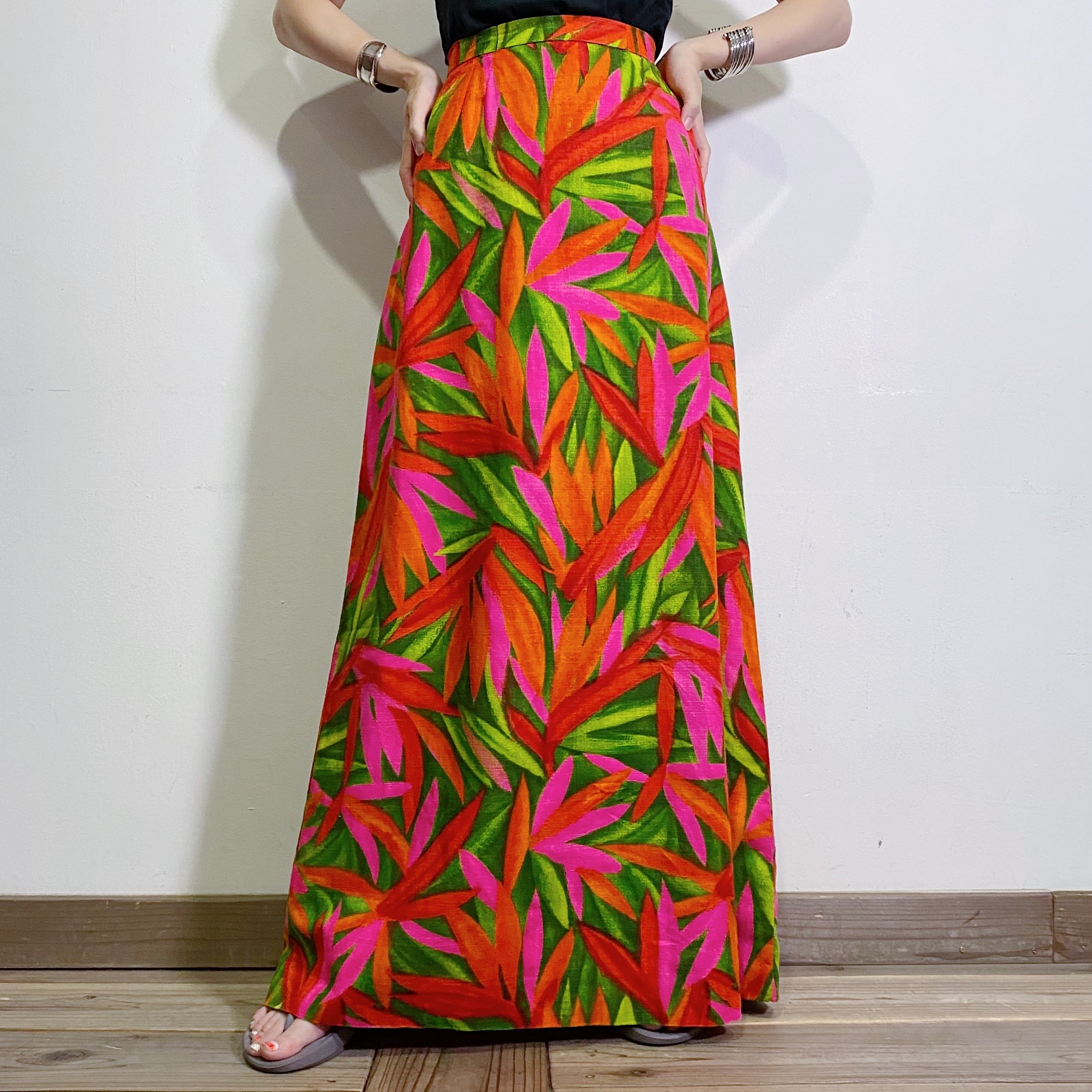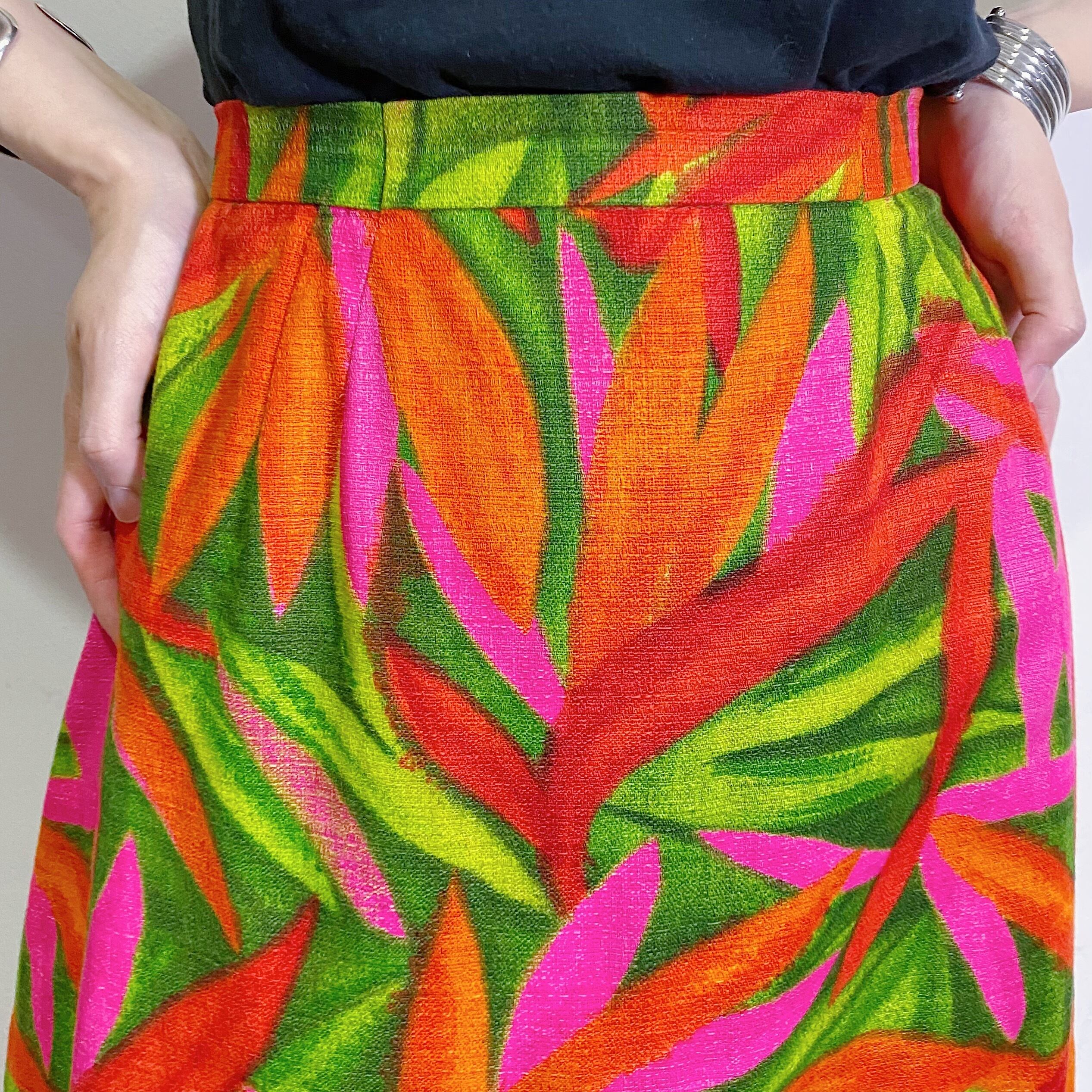ピンクやオレンジ、グリーンの色合いが可愛い、70年代のスカートです。