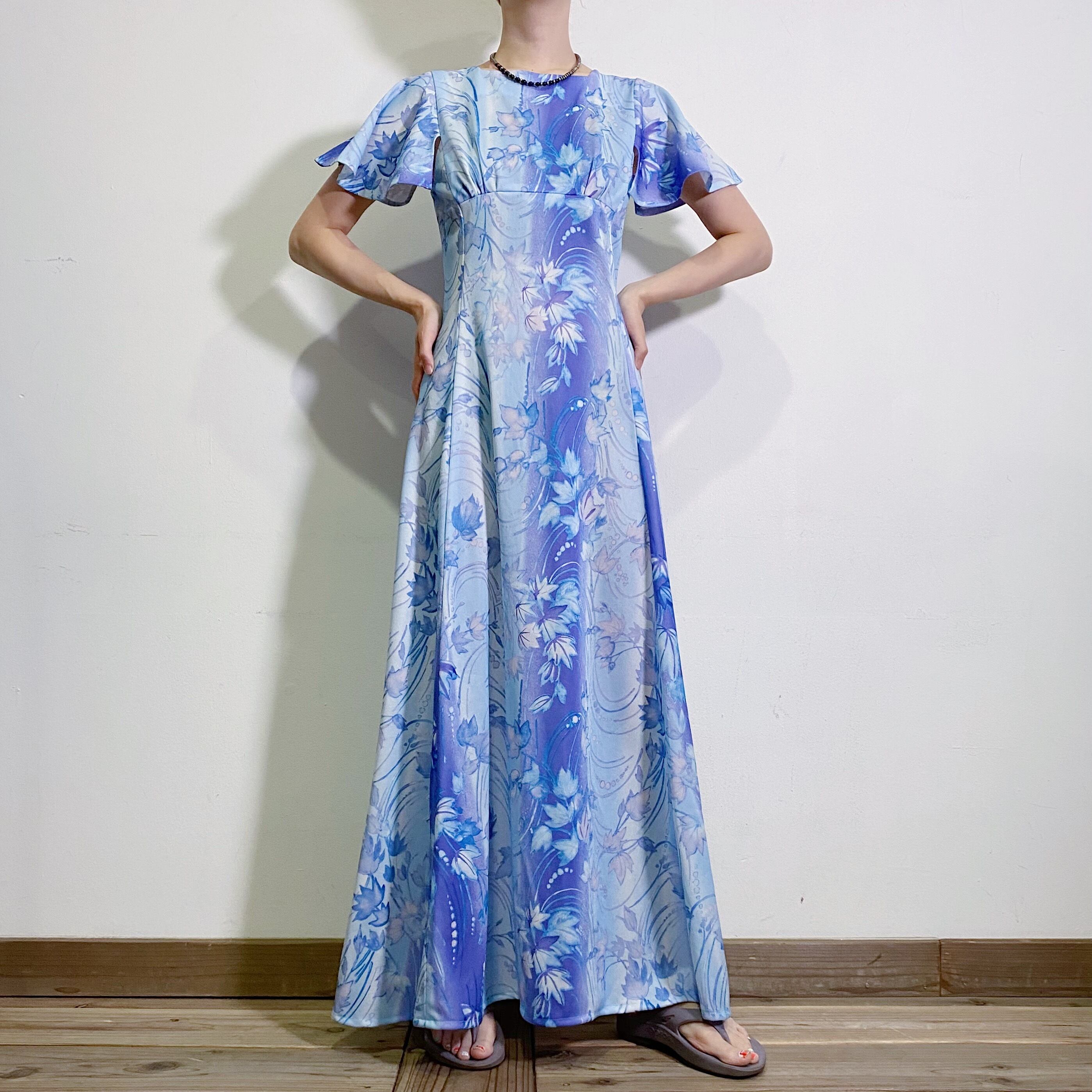 まるで水彩画のようなテキスタイルが可愛い、70年代のワンピースです。