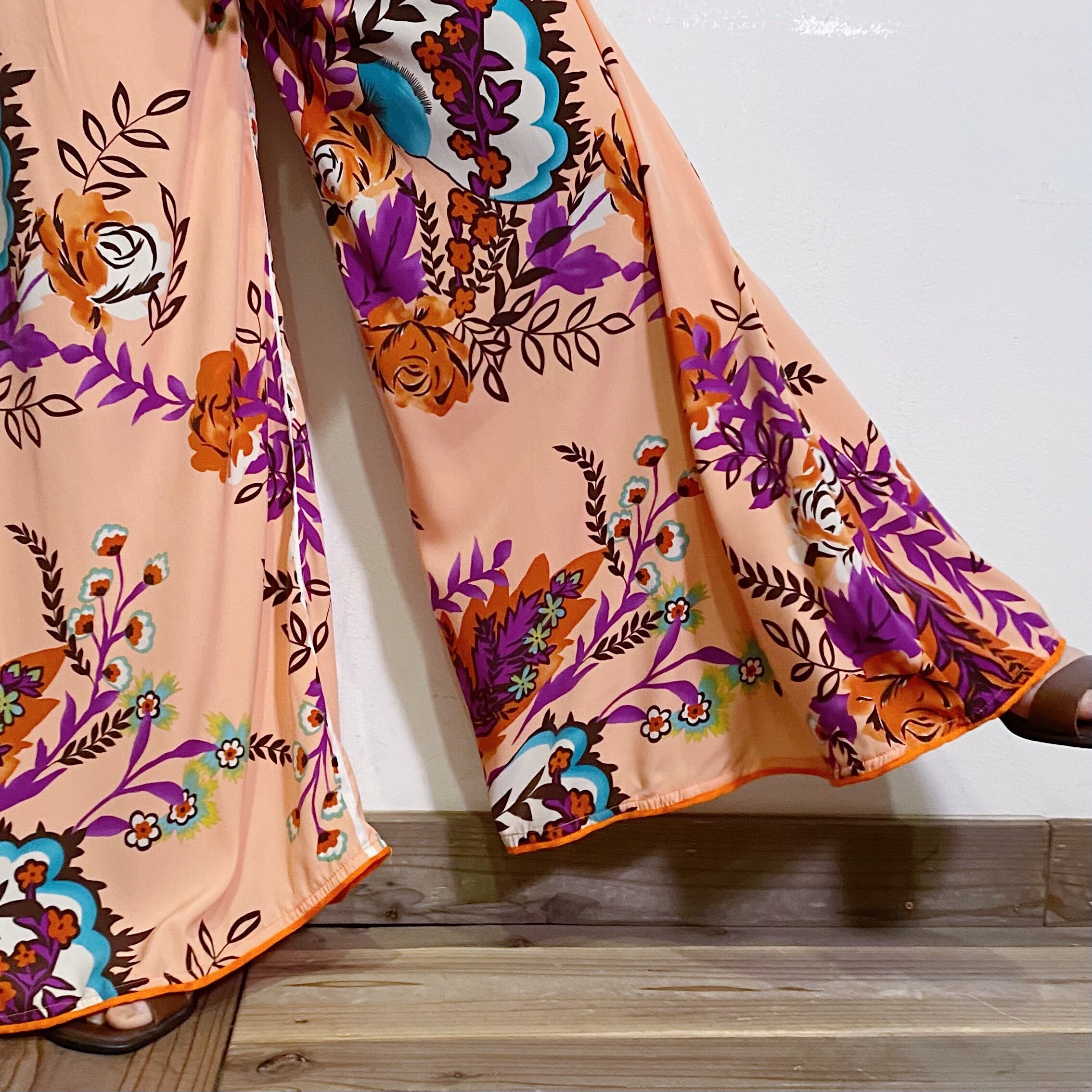 オレンジベースにパープルやブルーの花柄がとってもキュート。