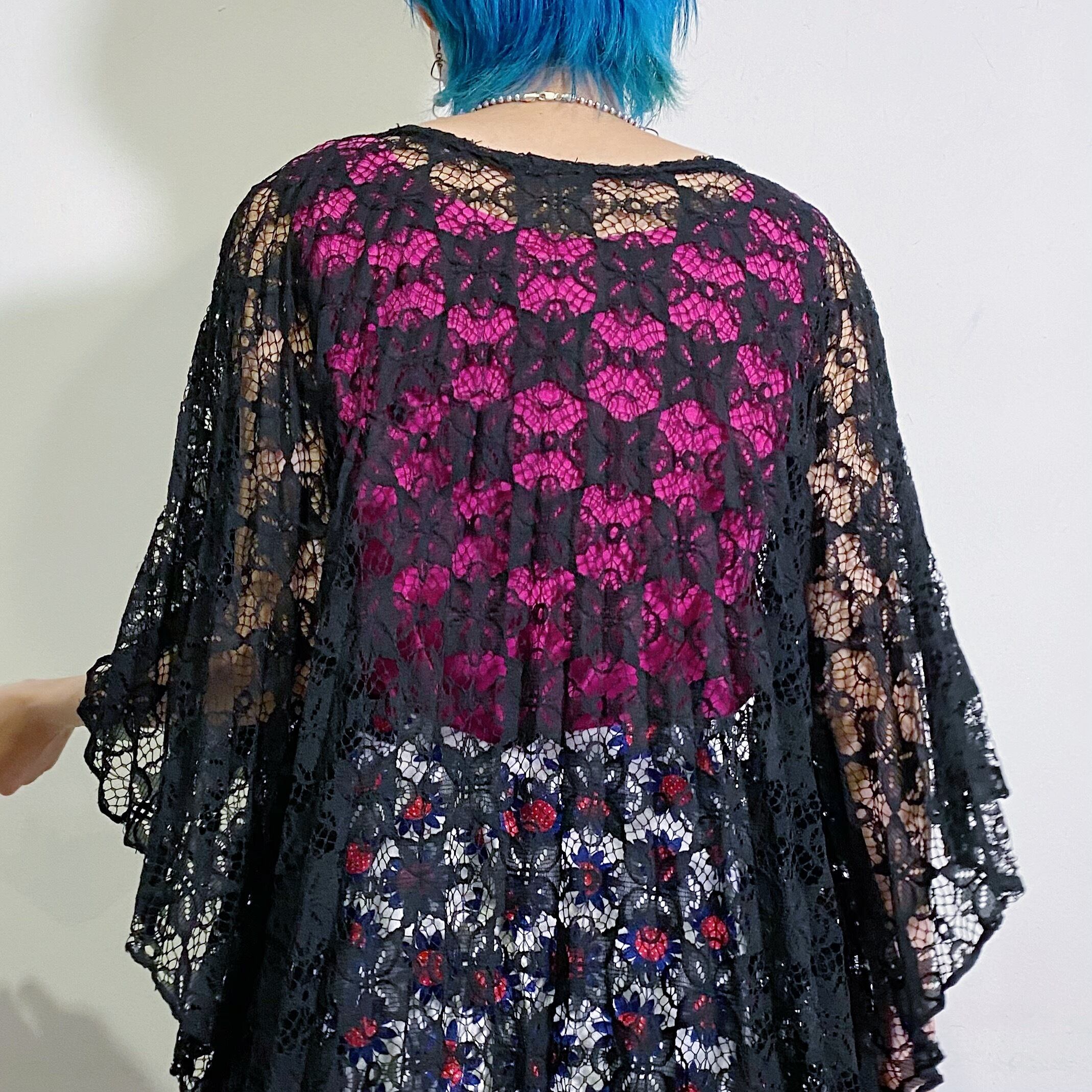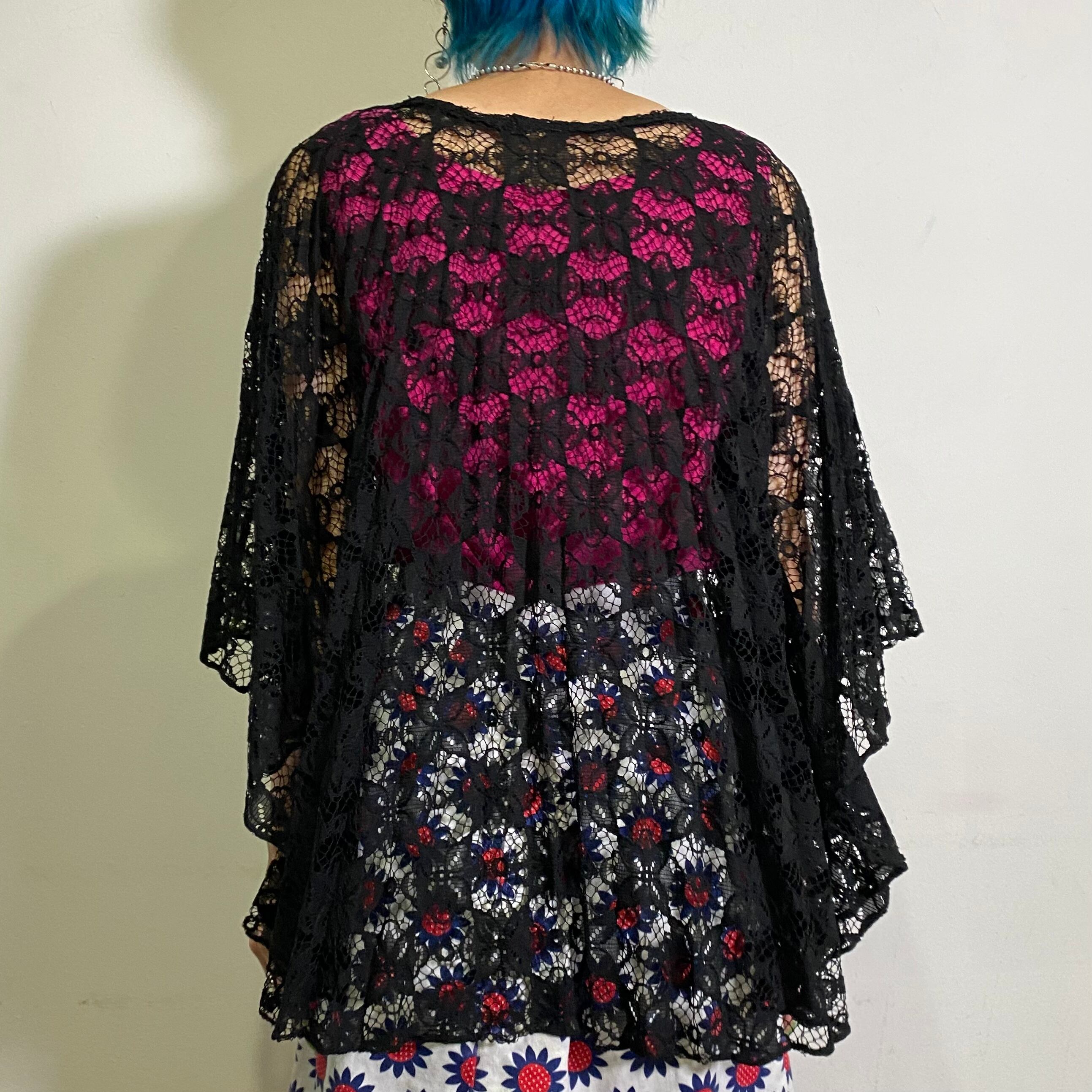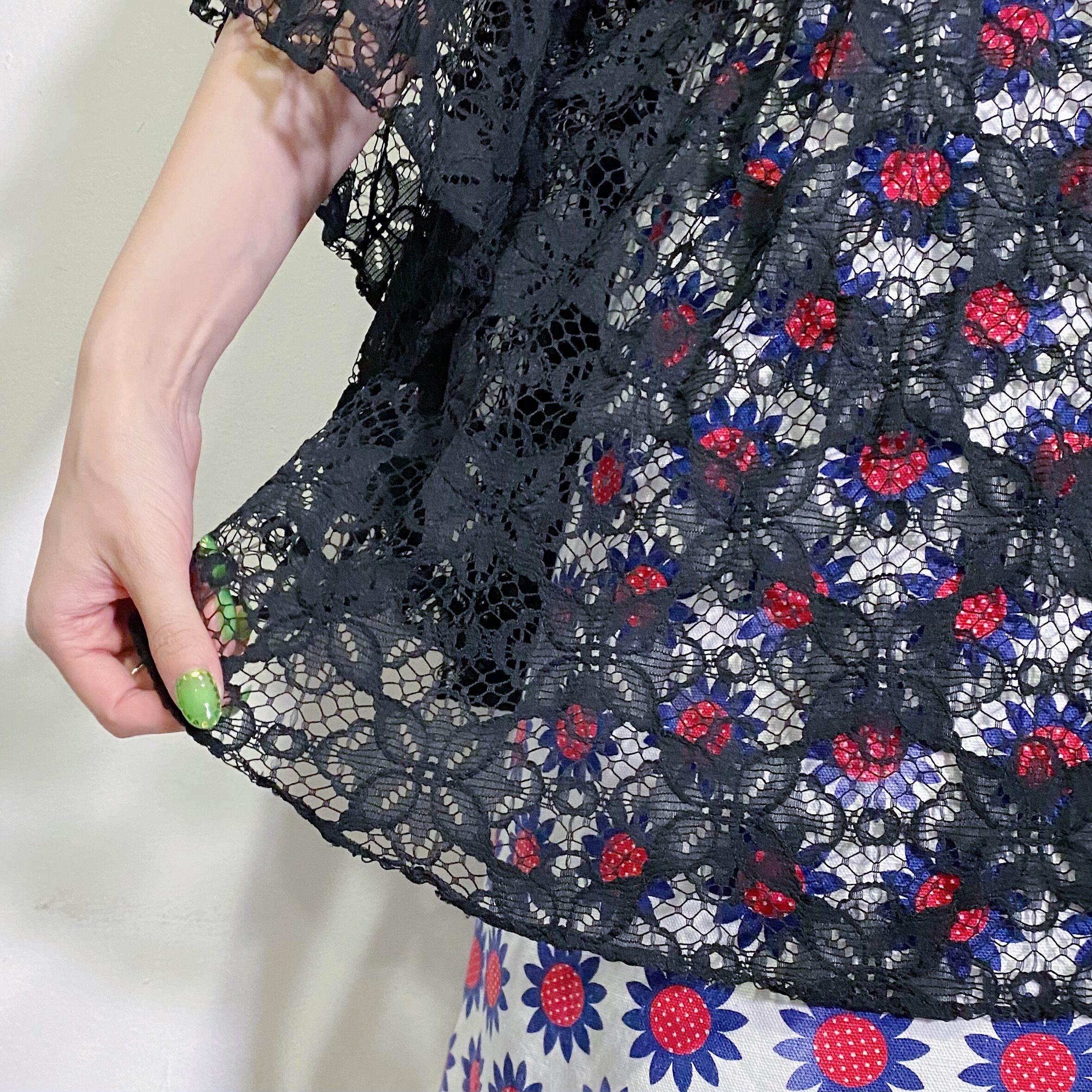 ブラックカラーの総レースが可愛い、70年代のトップスです。