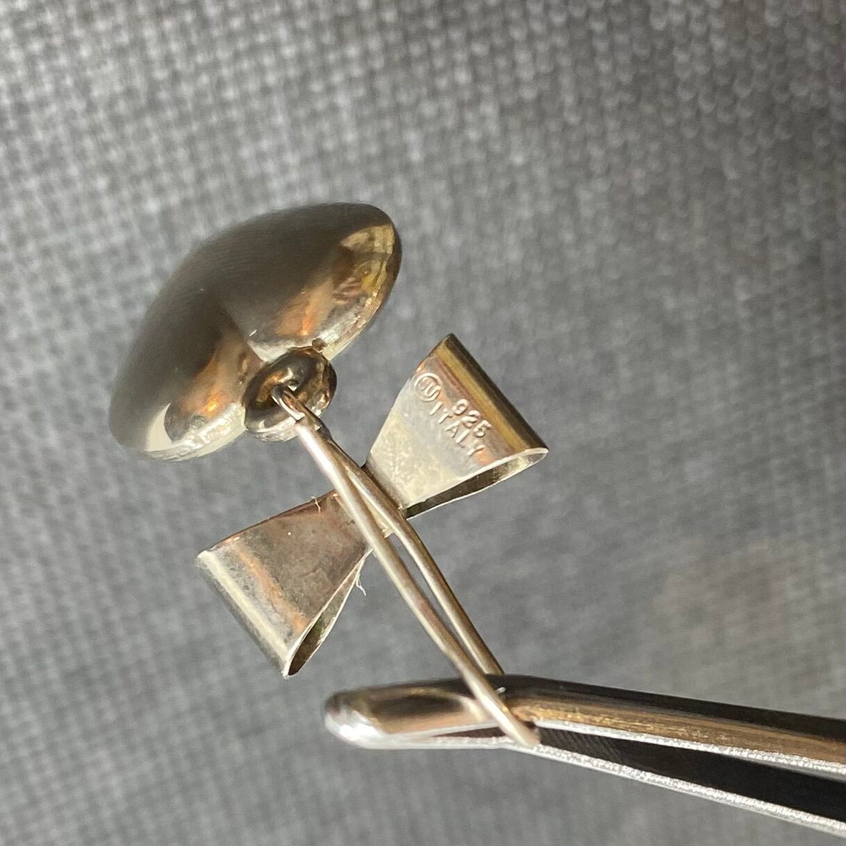 ぷっくりハートと立体的なリボンの組み合わせが可愛い、925シルバーのピアスです。
