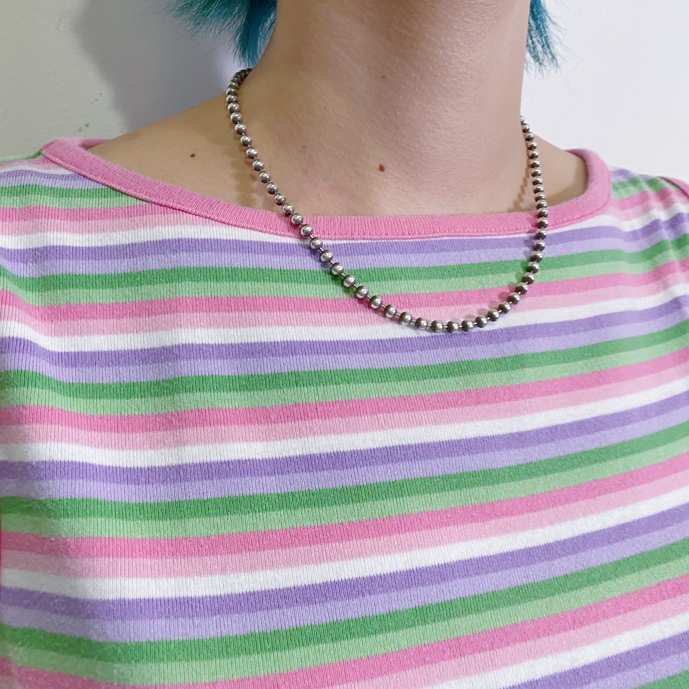 ストライプの幅が狭いので、着用写真のような柄×柄の組み合わせも可愛いですよ。