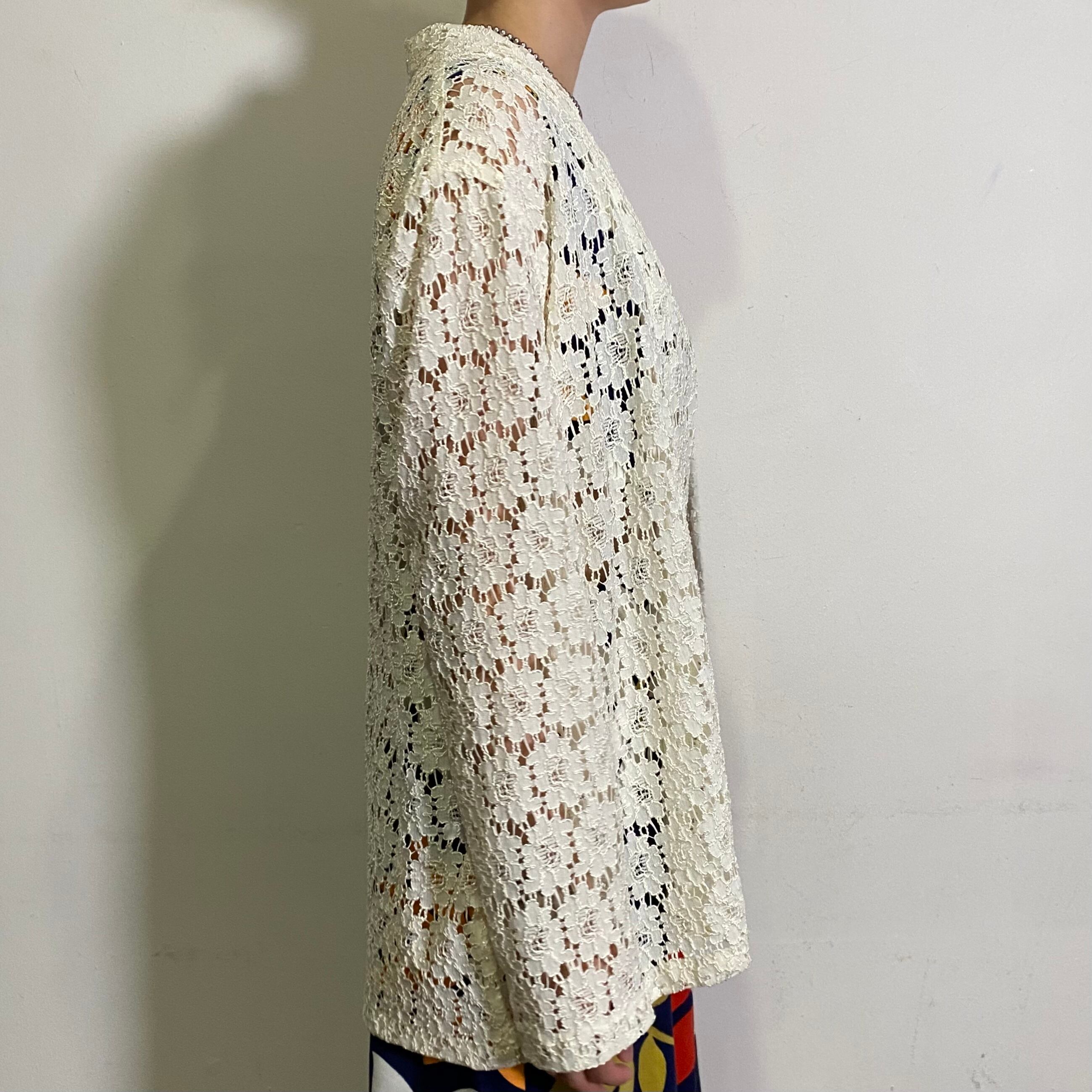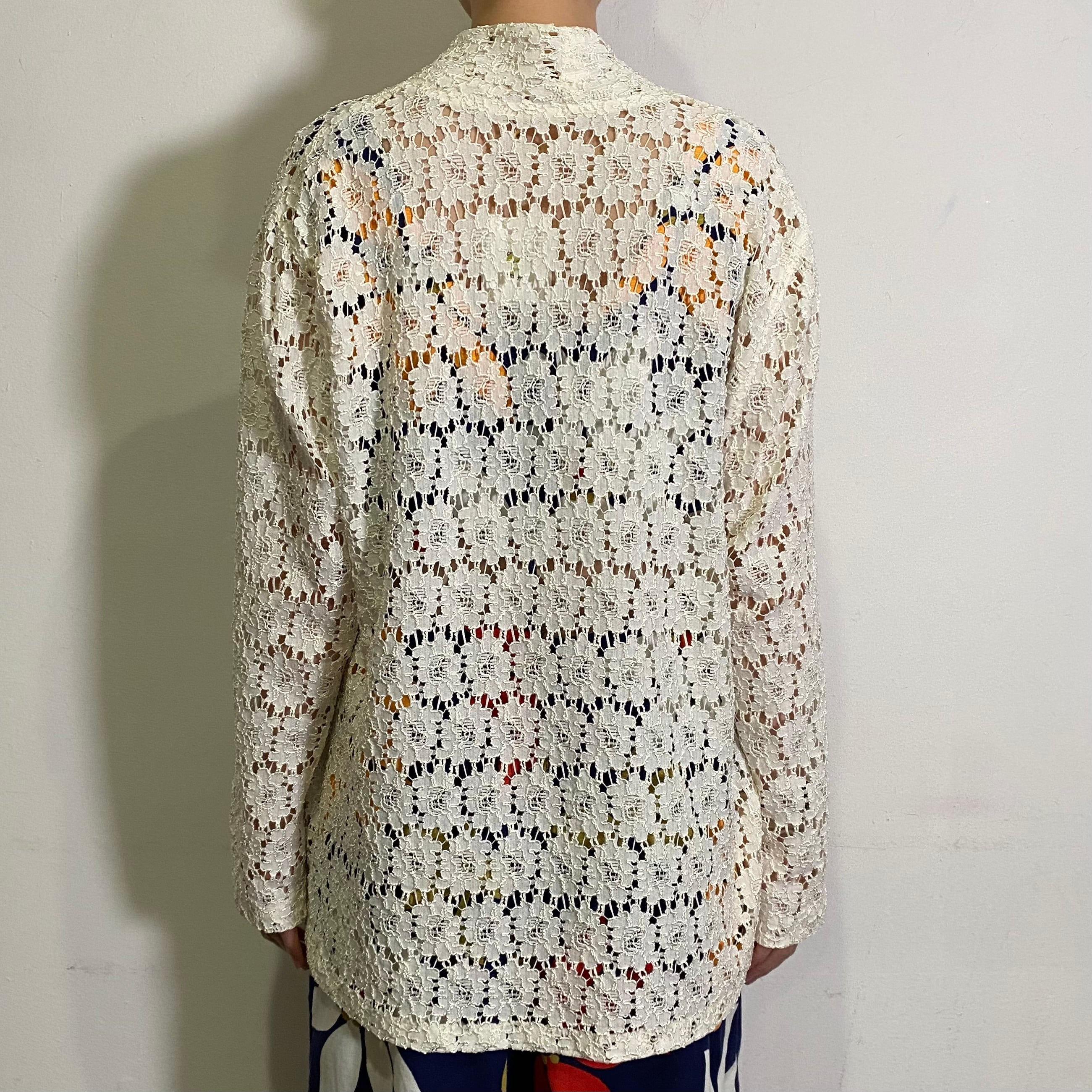 お花の総レースがとっても可愛い、70年代のカーディガンです。