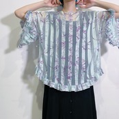 Sax blue flower printed sheer top