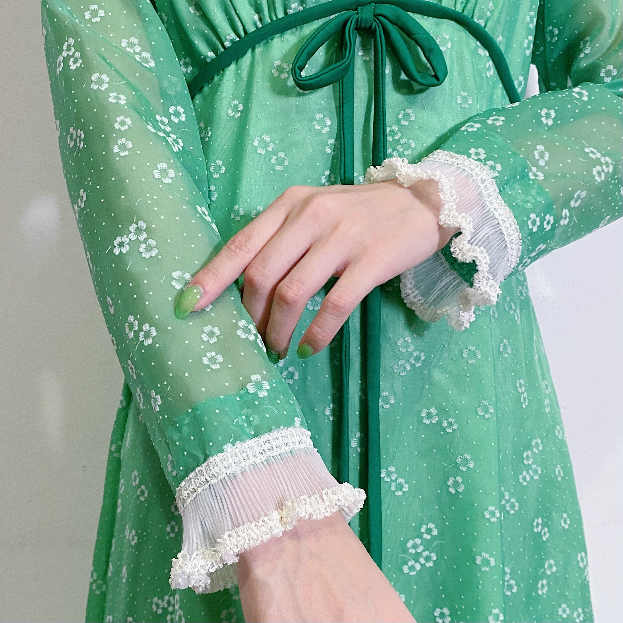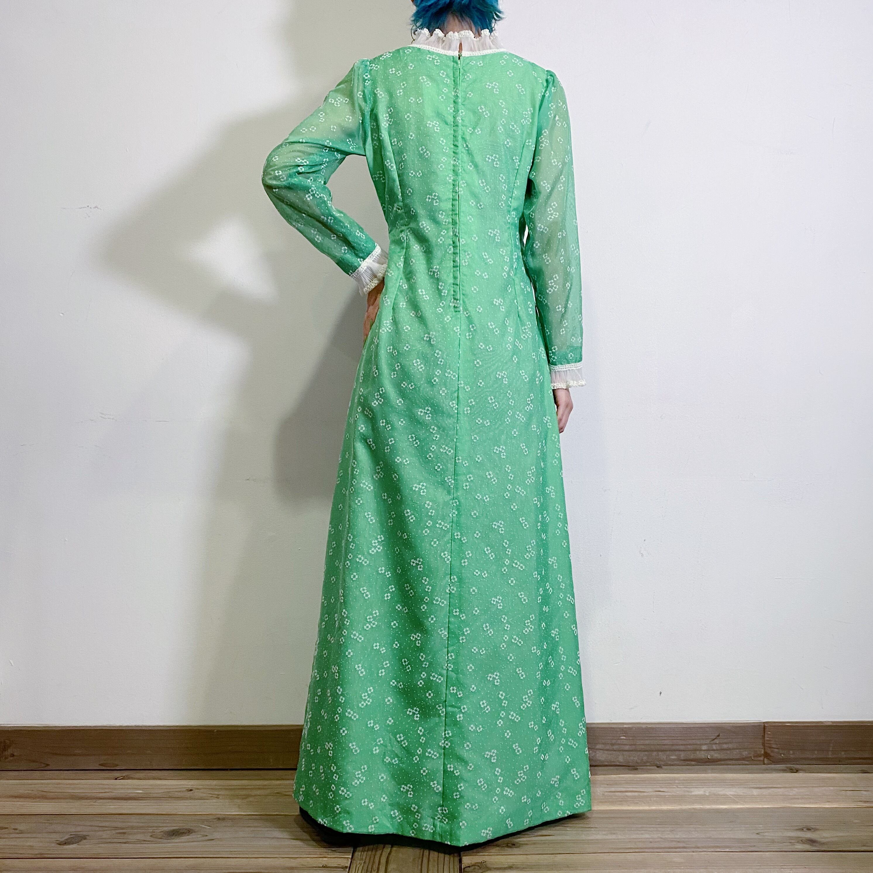 60s green clover printed long dress