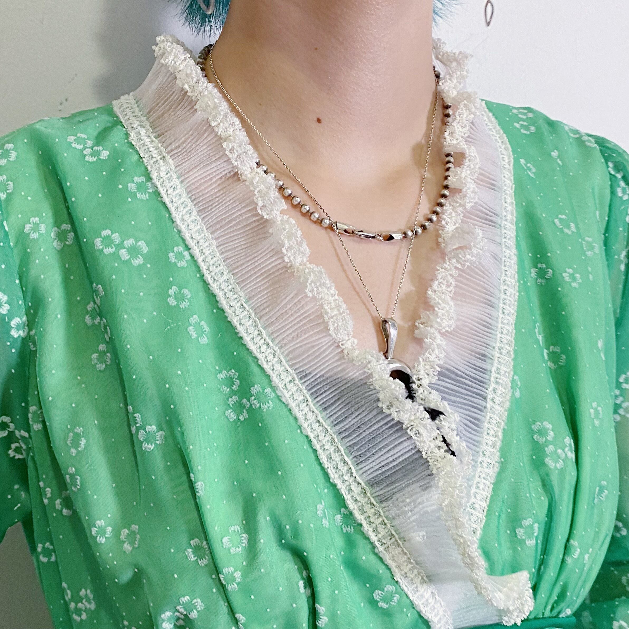 四葉のクローバーモチーフのフロッキープリント柄がとっても可愛い、60年代のロングワンピースです。