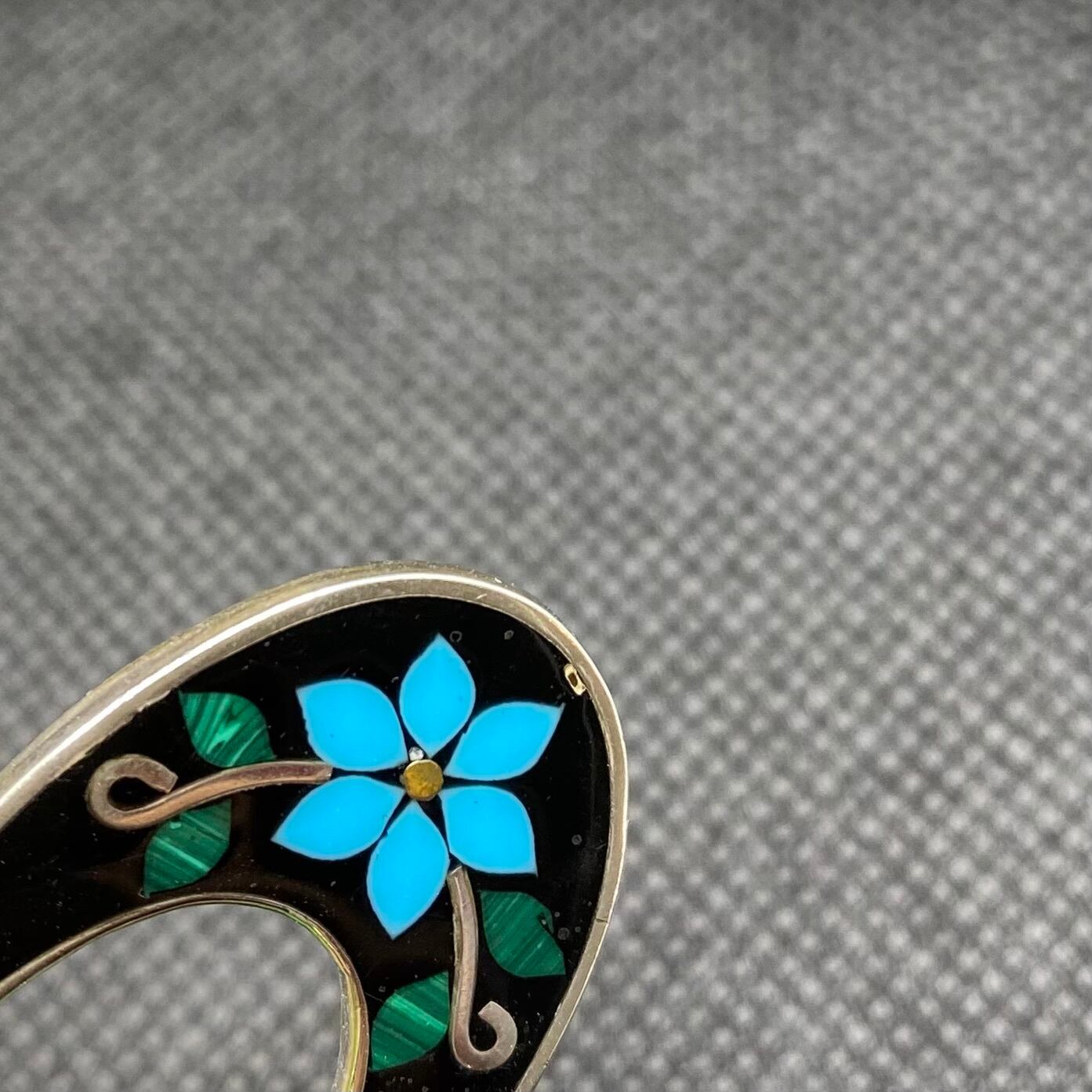 オニキスにターコイズのお花が映え、細やかなインレイワークが魅力的。