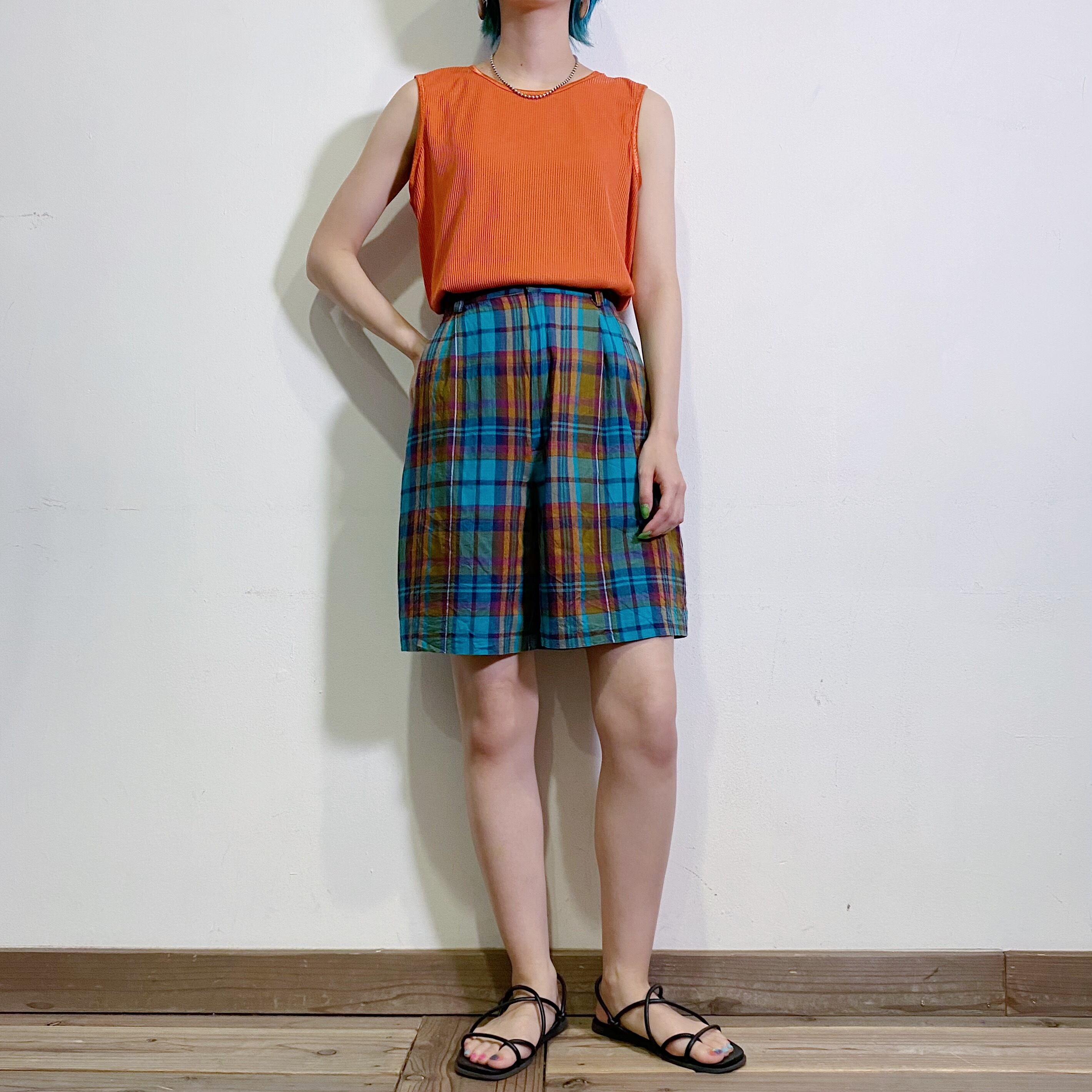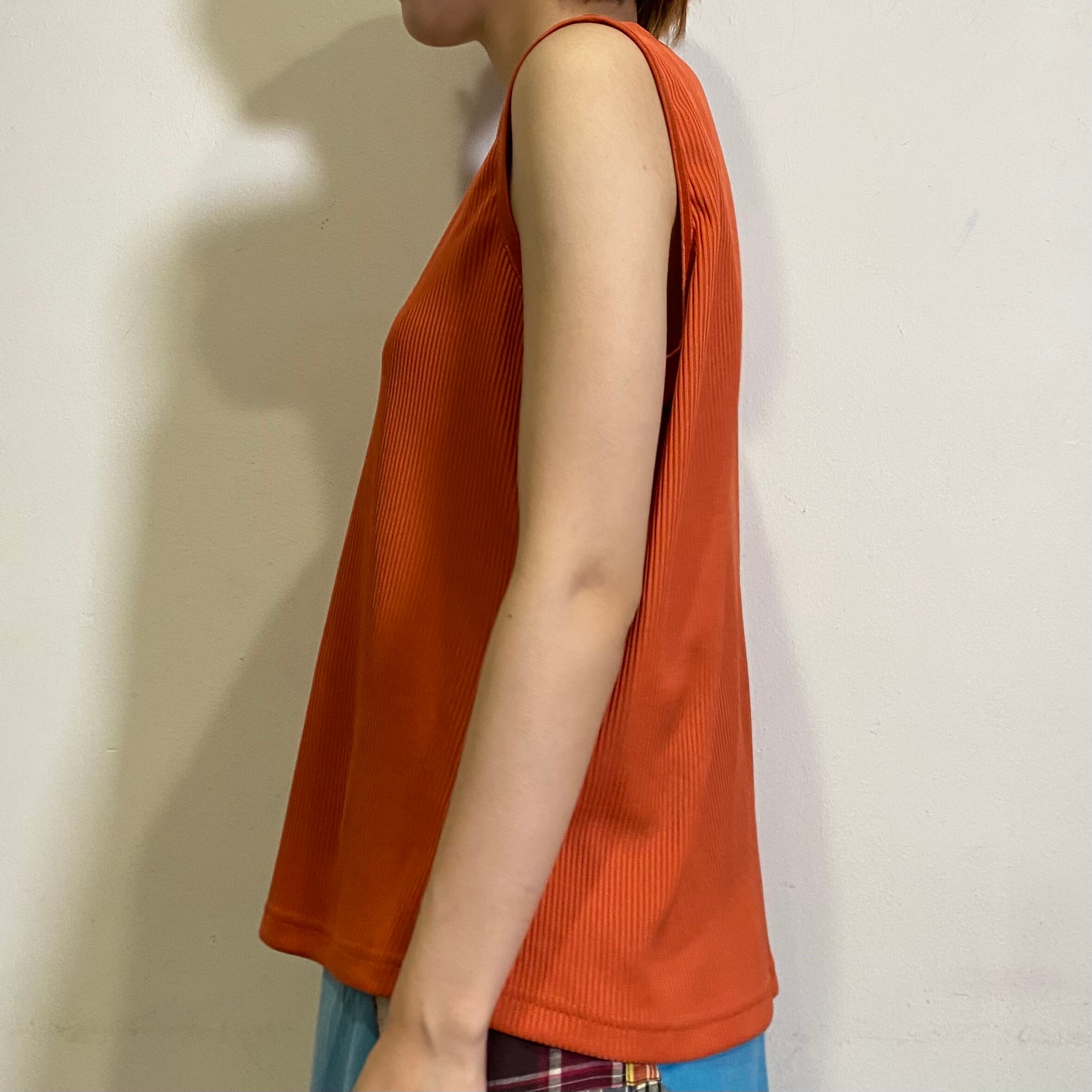 無地で使い勝手の良い、オレンジのノースリーブトップスです。
