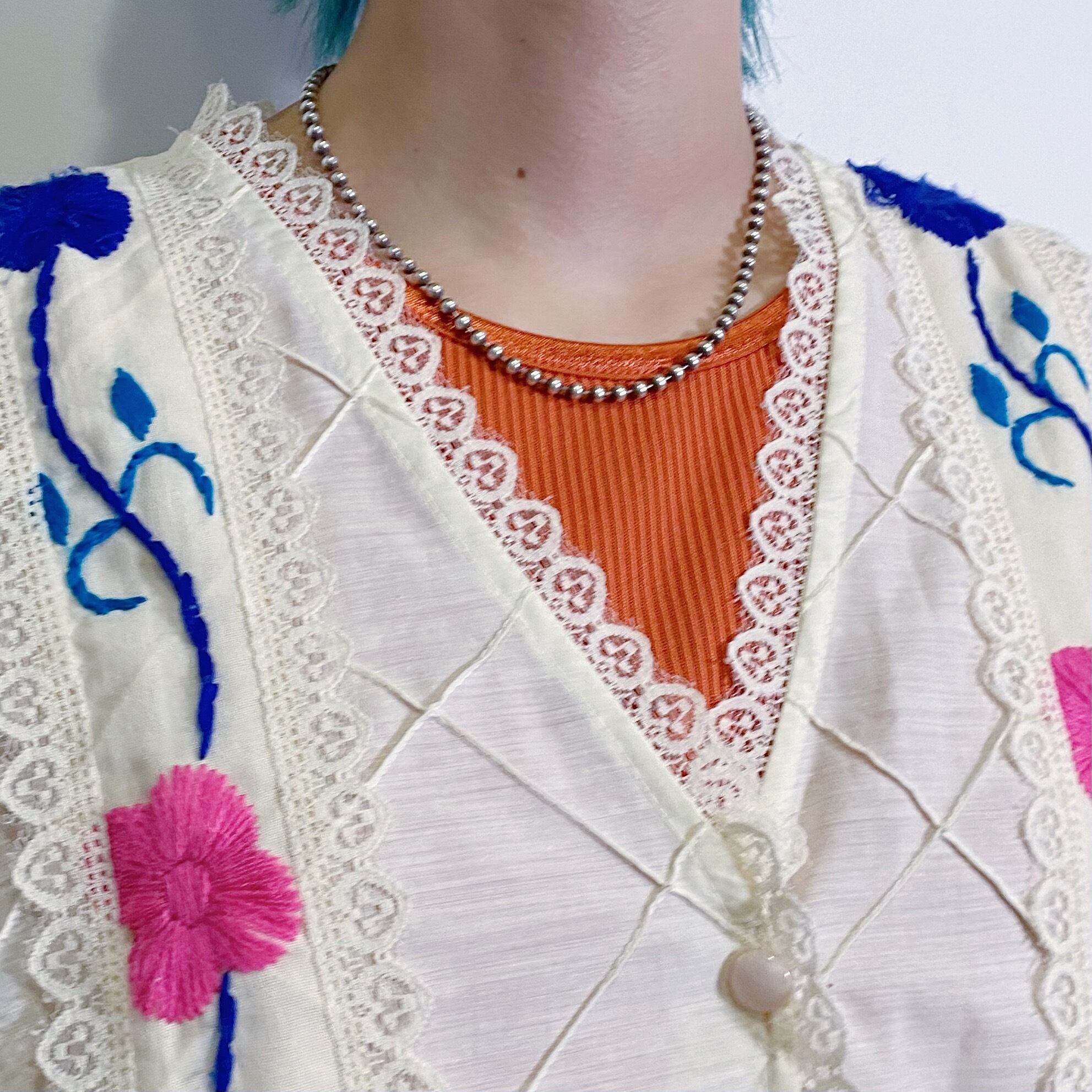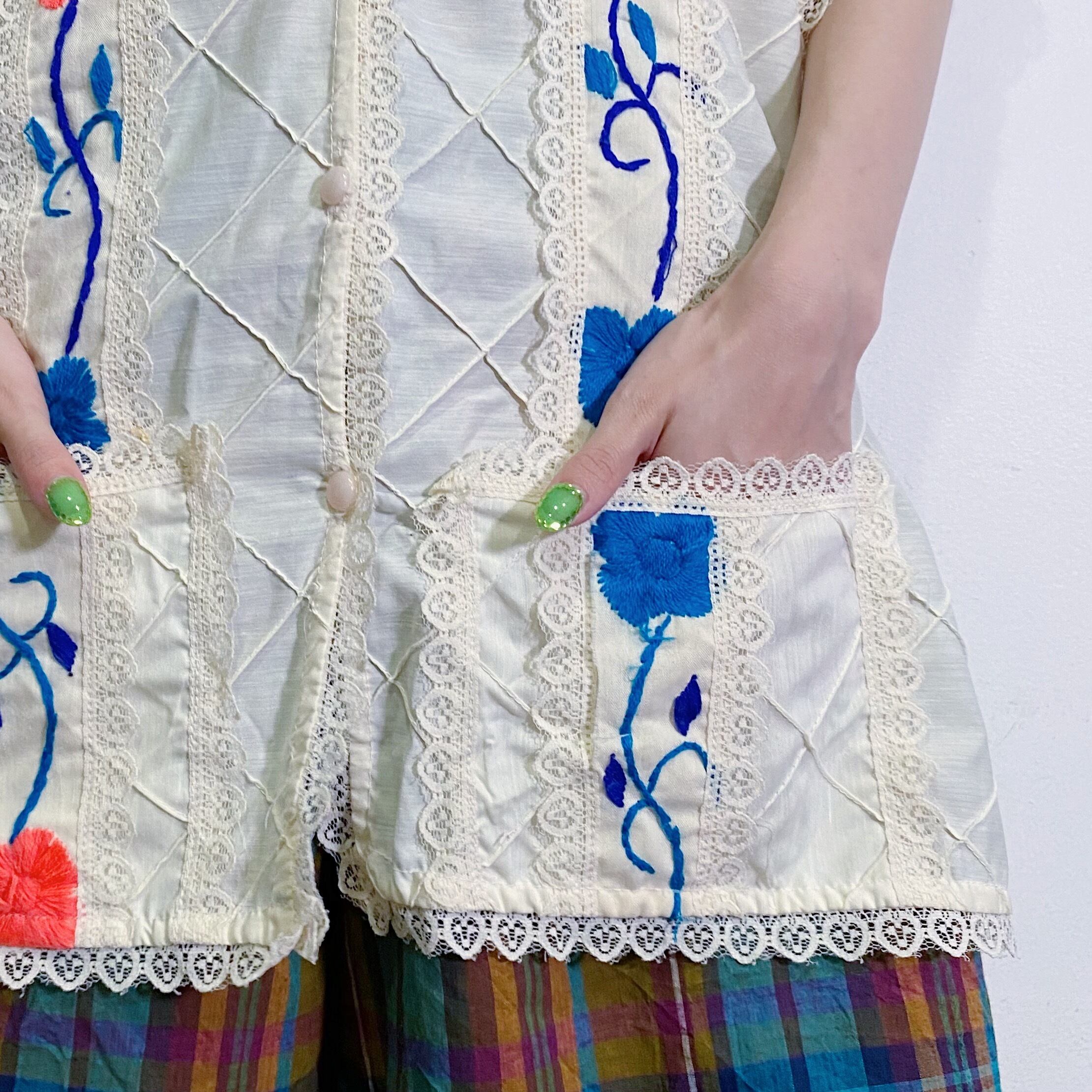 カラフルなお花の刺繍が可愛い、70年代のメキシコの半袖シャツです。