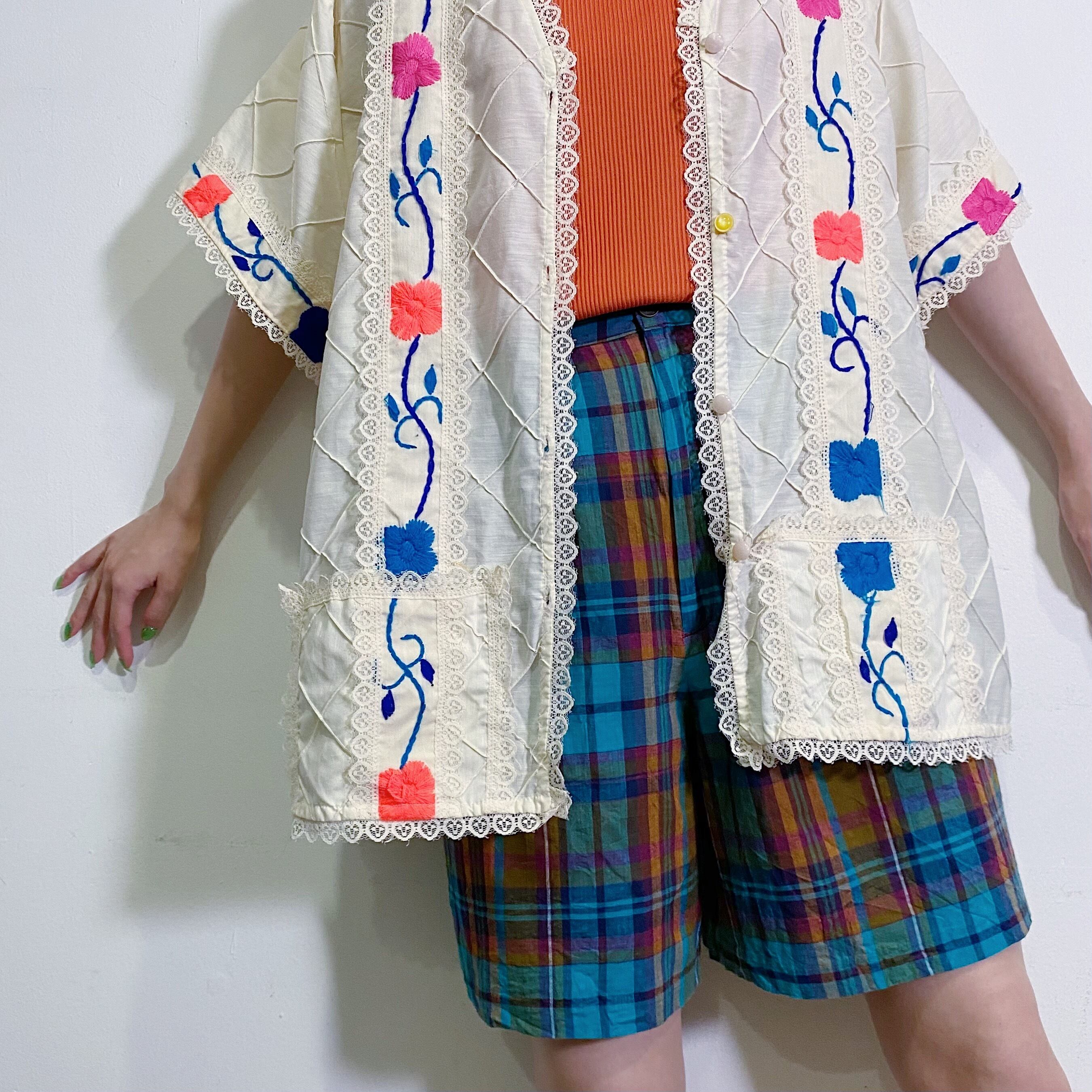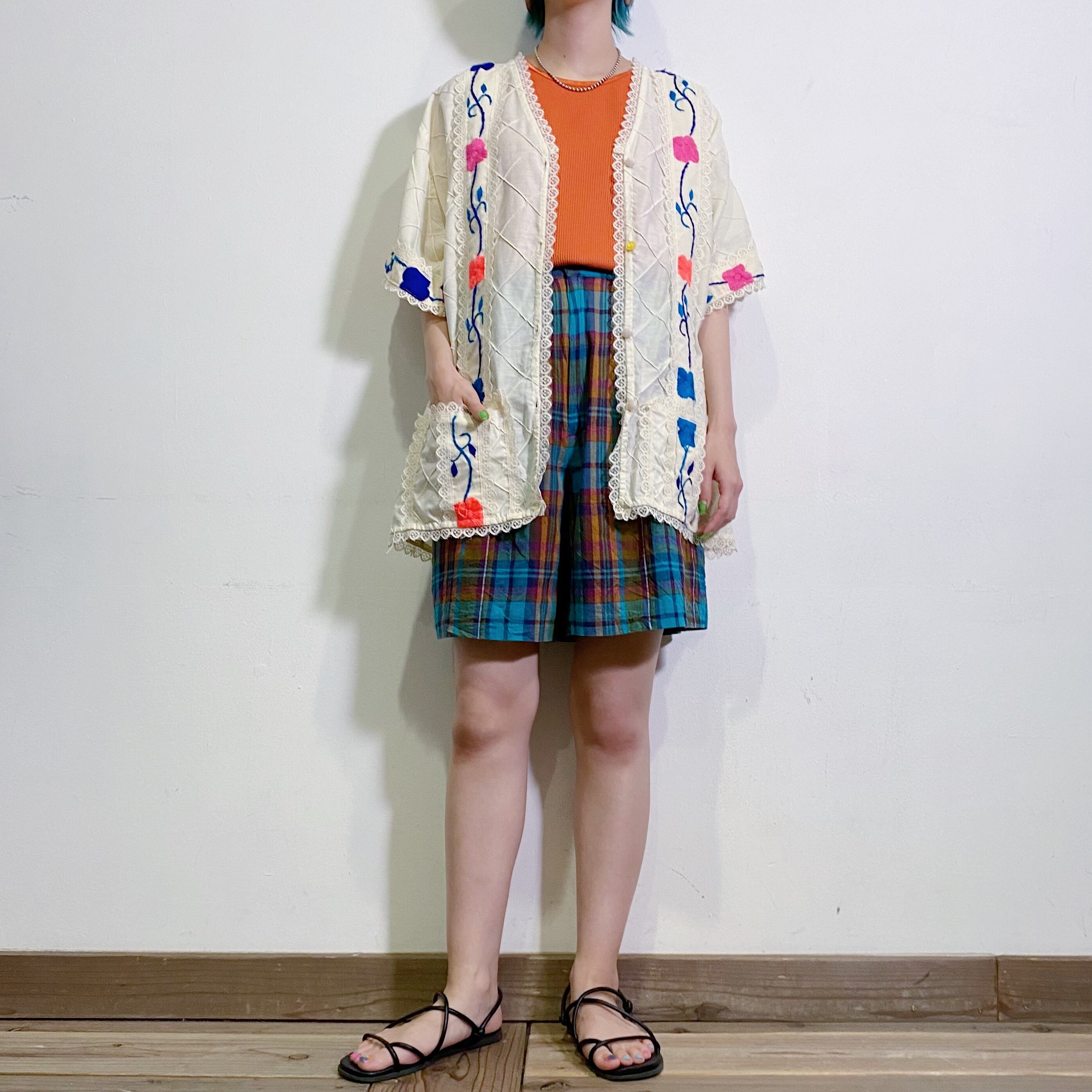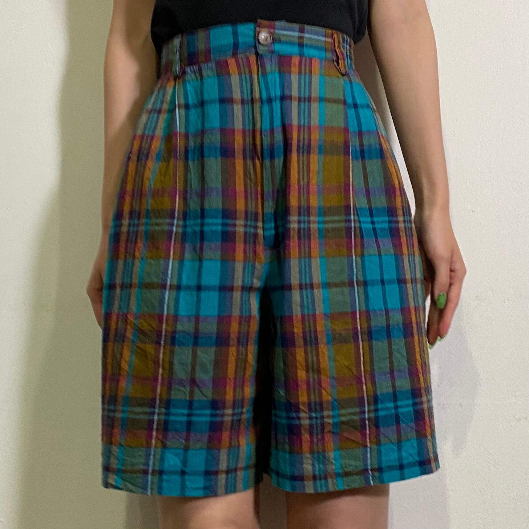 チェックの色合いが可愛い、80年代のショートパンツです。