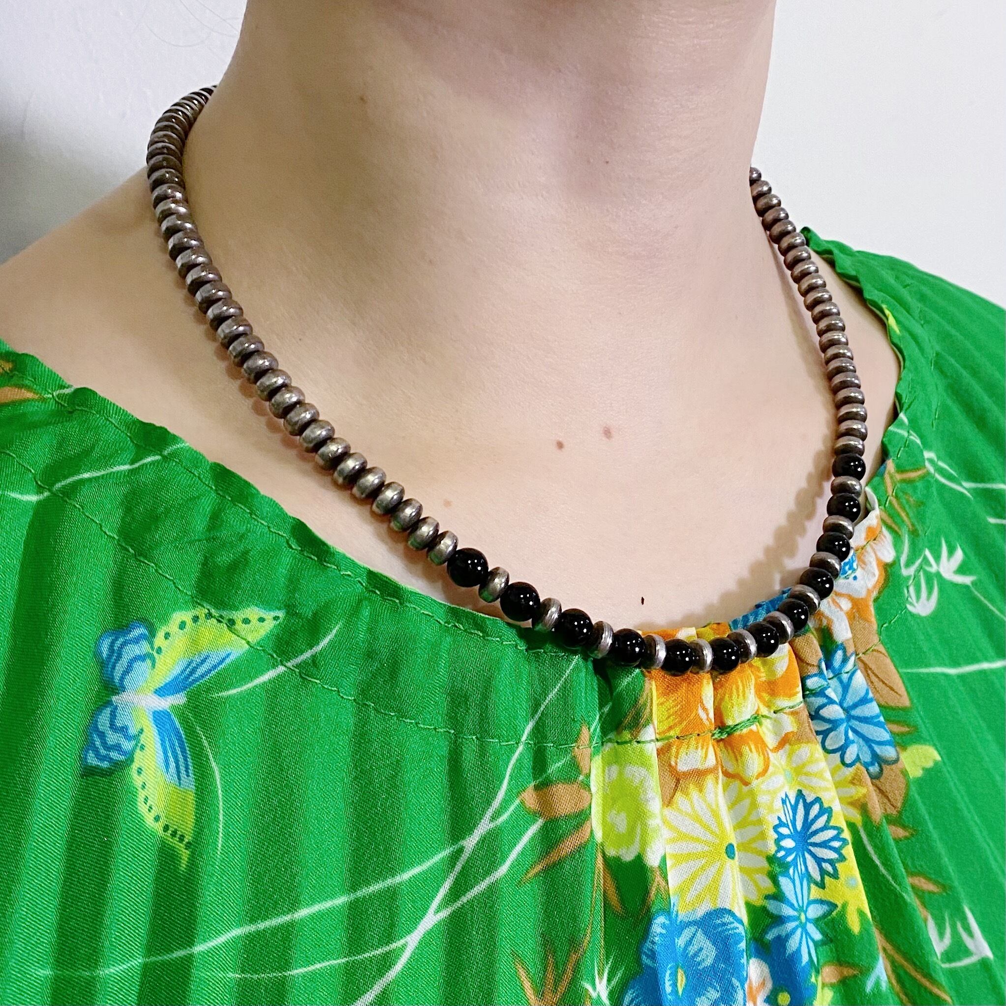 シルバーとオニキスの組み合わせがスタイリッシュで、つけるだけでコーディネートが引き締まります。