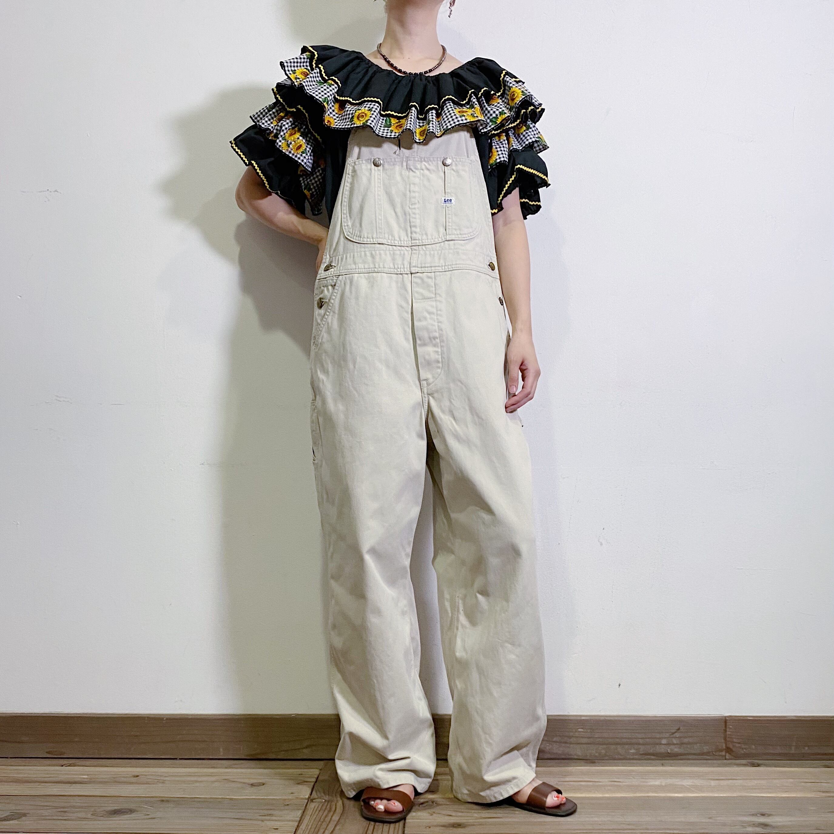 着用写真のようにオーバーオールやキャミワンピースなどのインナーにして、フリルを出した着こなしもおススメ。