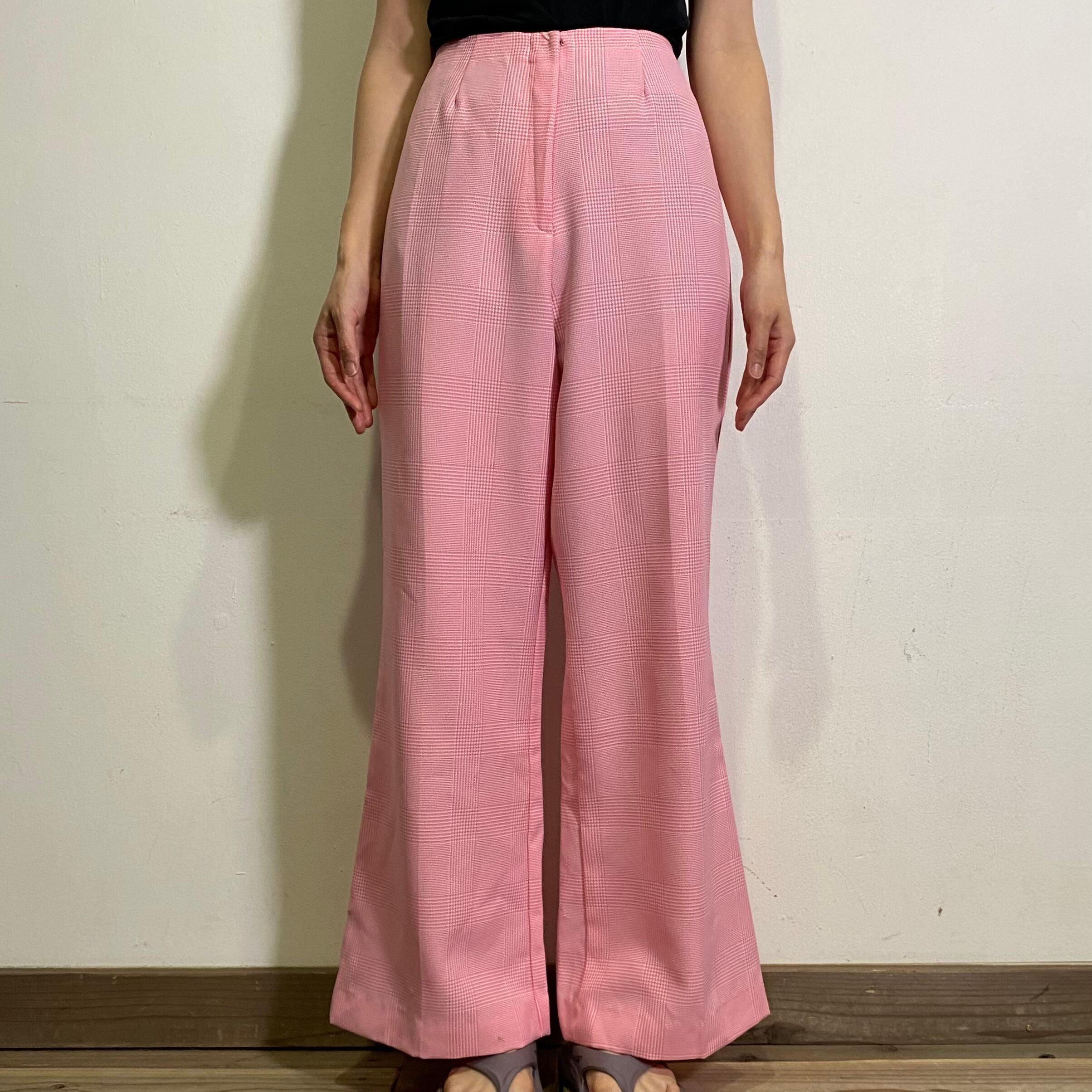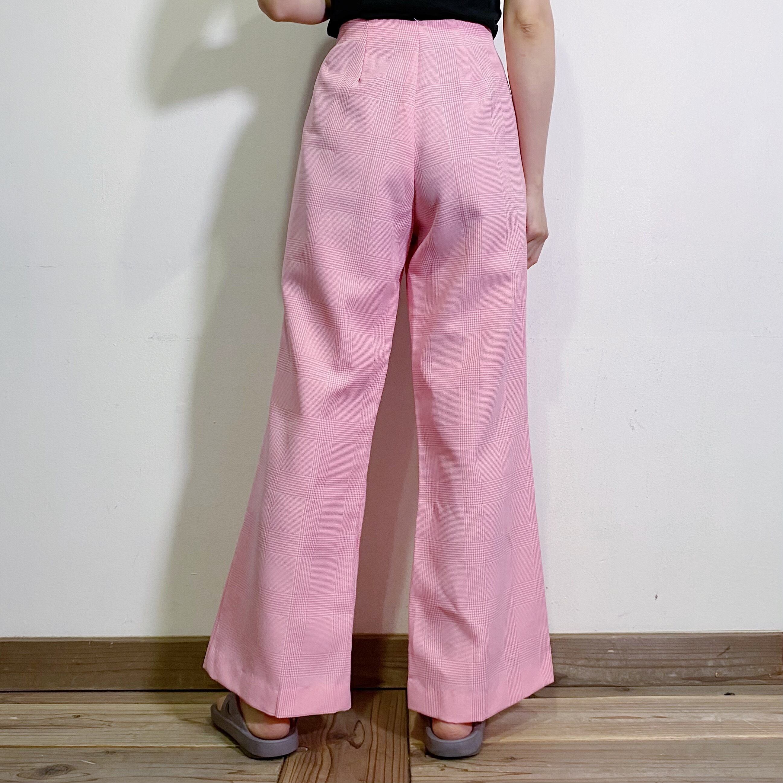 ベビーピンクとホワイトのチェックが可愛い、70年代のパンツです。