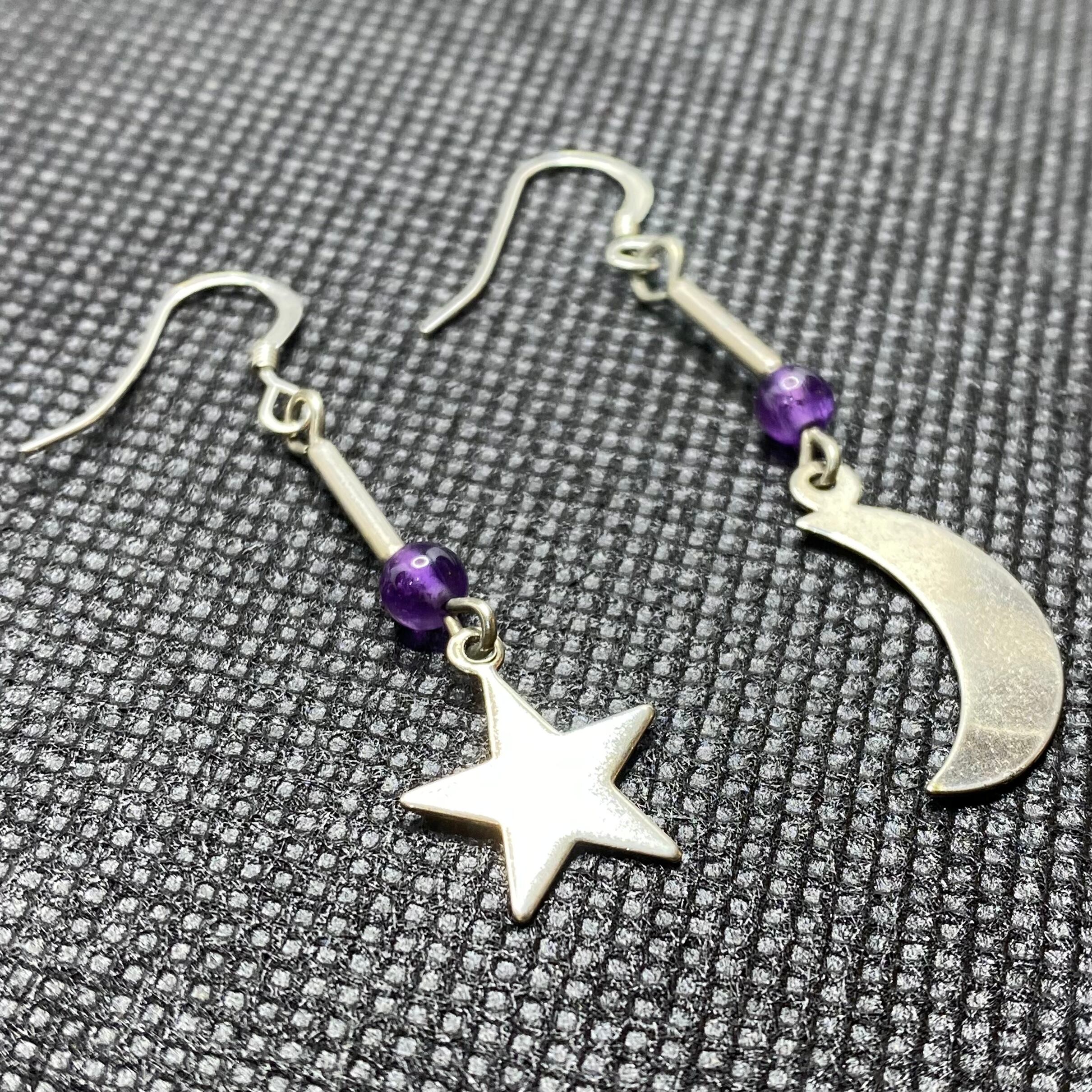星と月のモチーフが可愛い、925シルバーのピアスです。