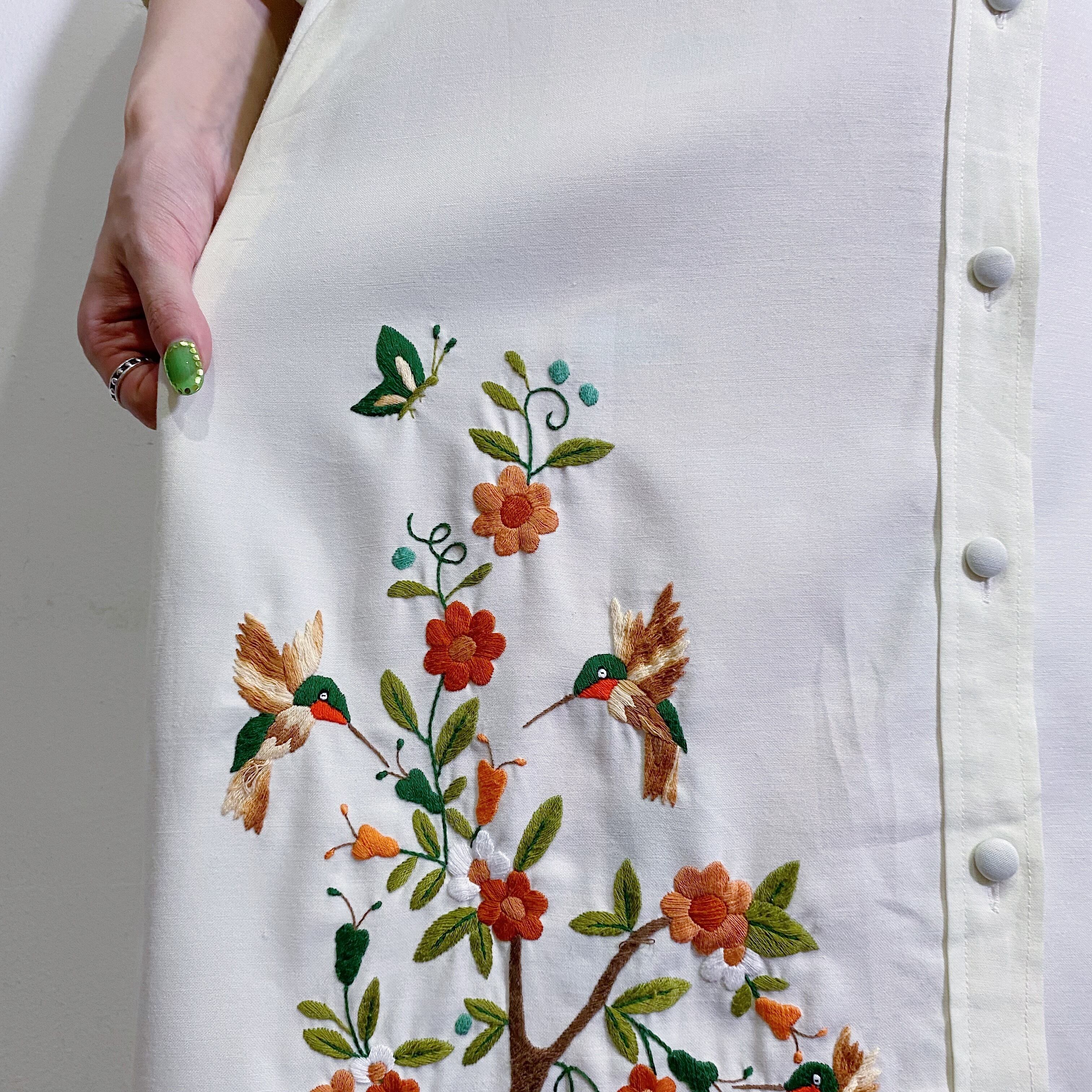 鳥とお花の刺繍が可愛い、70年代のガウンです。
