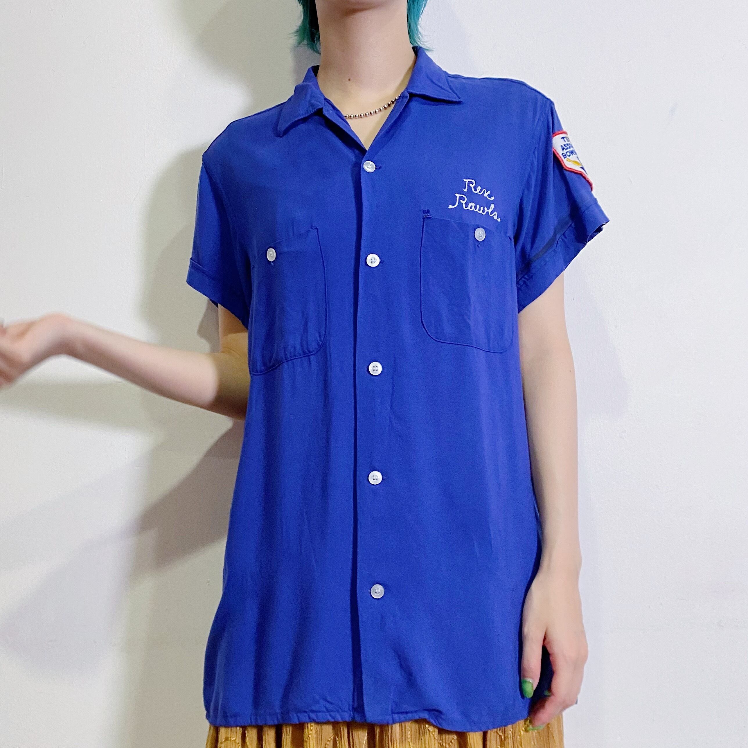 鮮やかなブルーがパッと目を惹く、60年代のボーリングシャツです。