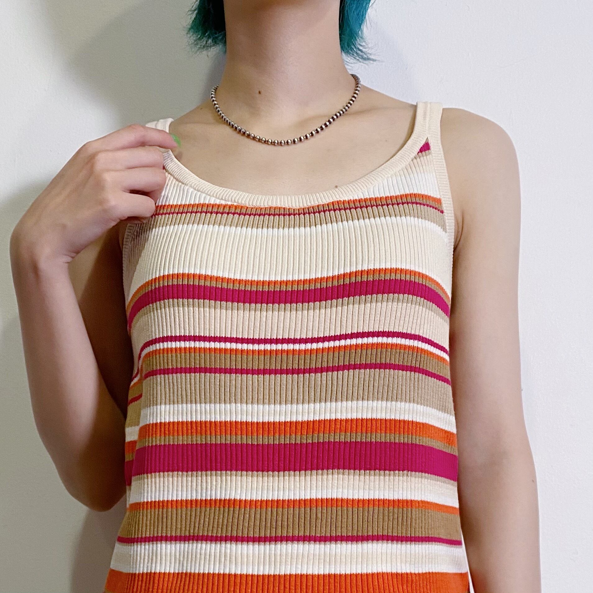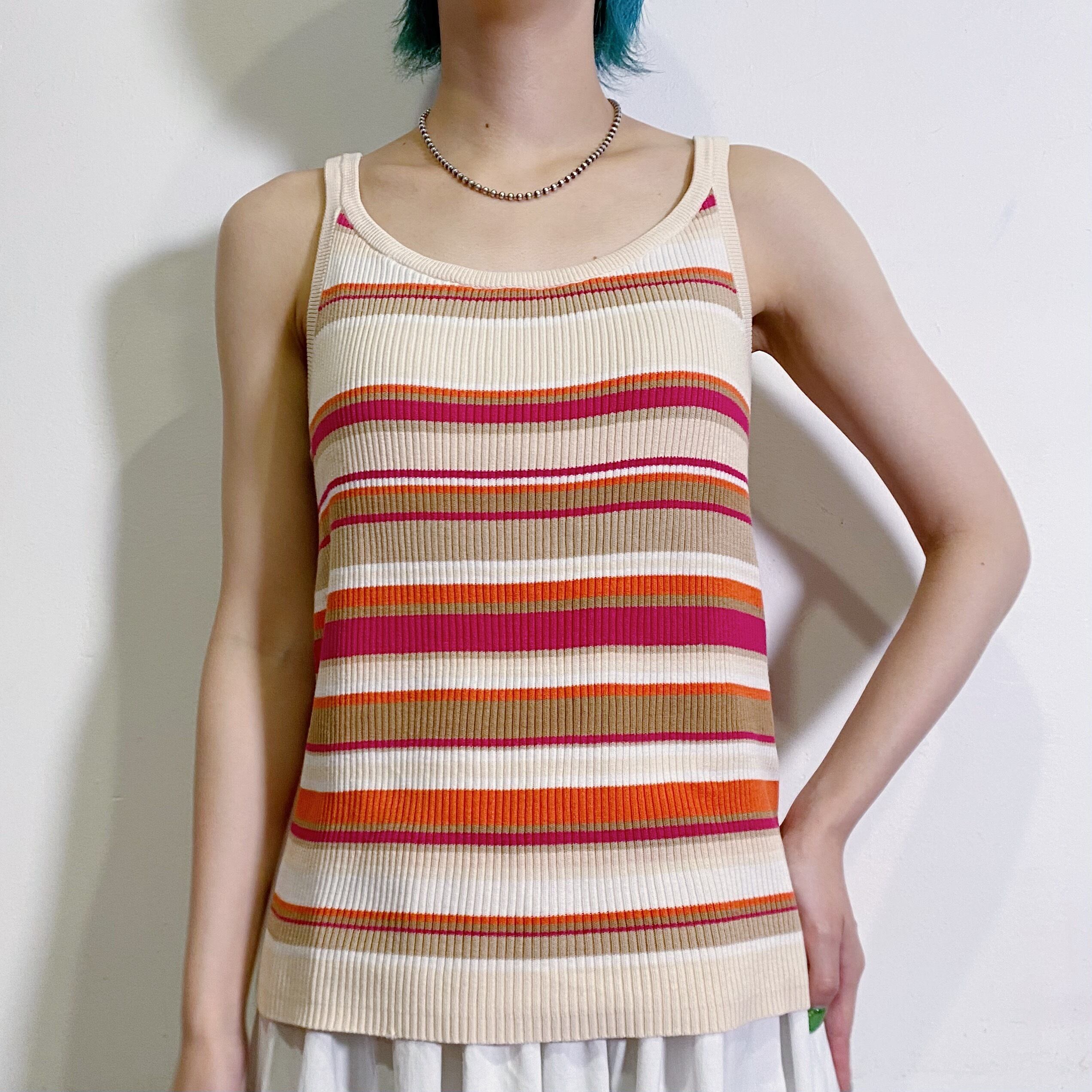 ベージュやオレンジなどのカラフルなストライブが可愛い、90年代のキャミトップスです。
