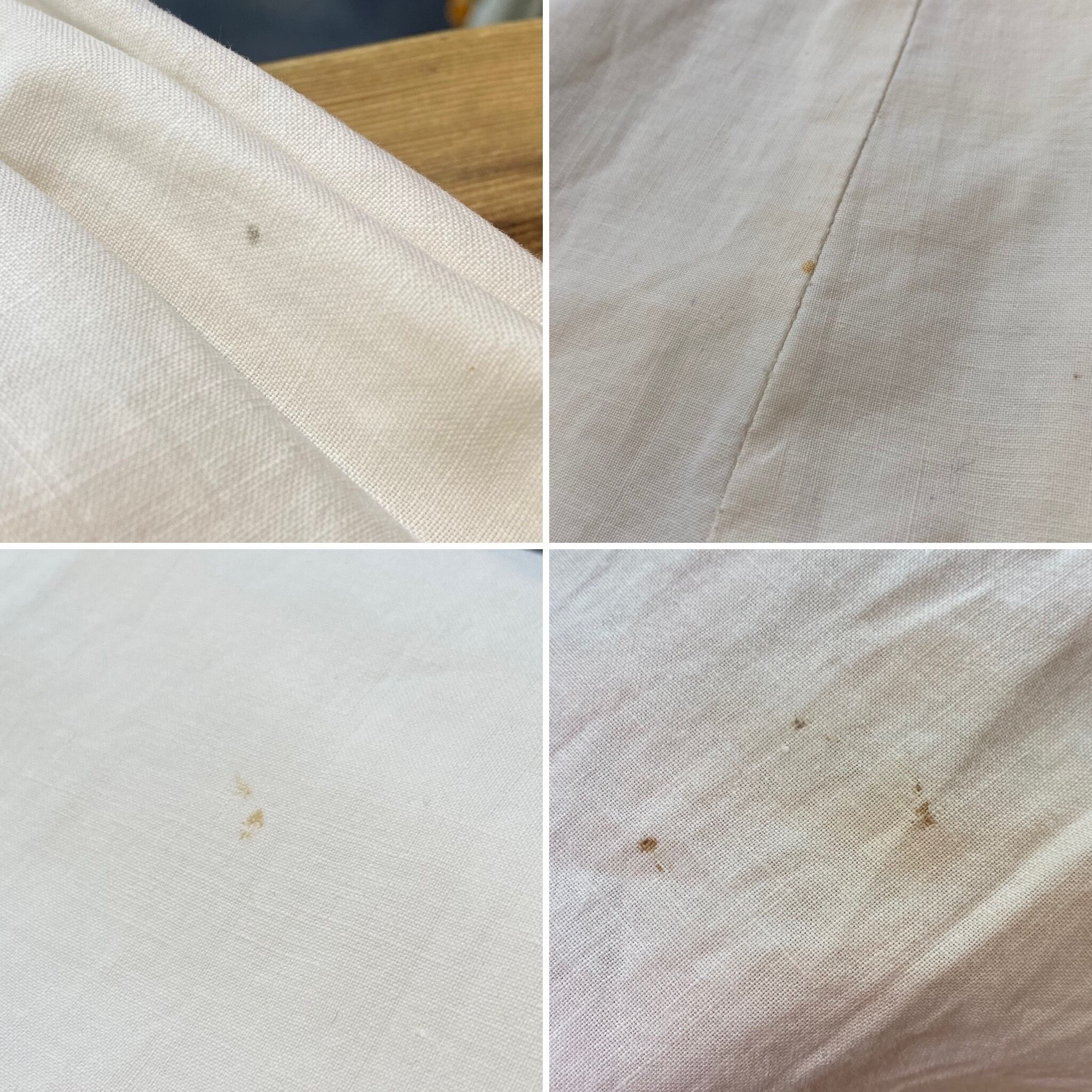 お直しの跡やダメージを裏から接着芯で塞いだ跡も見受けられます。
