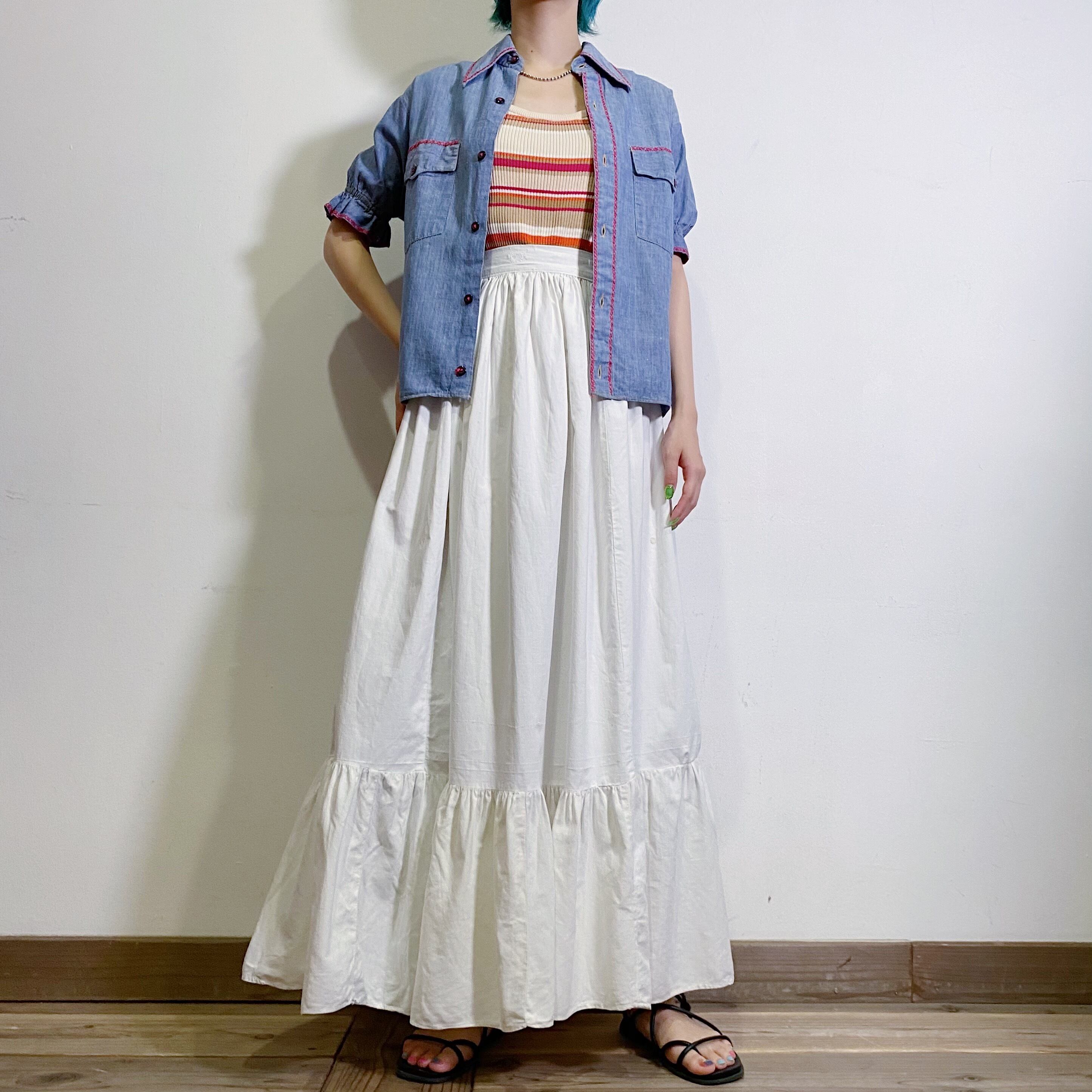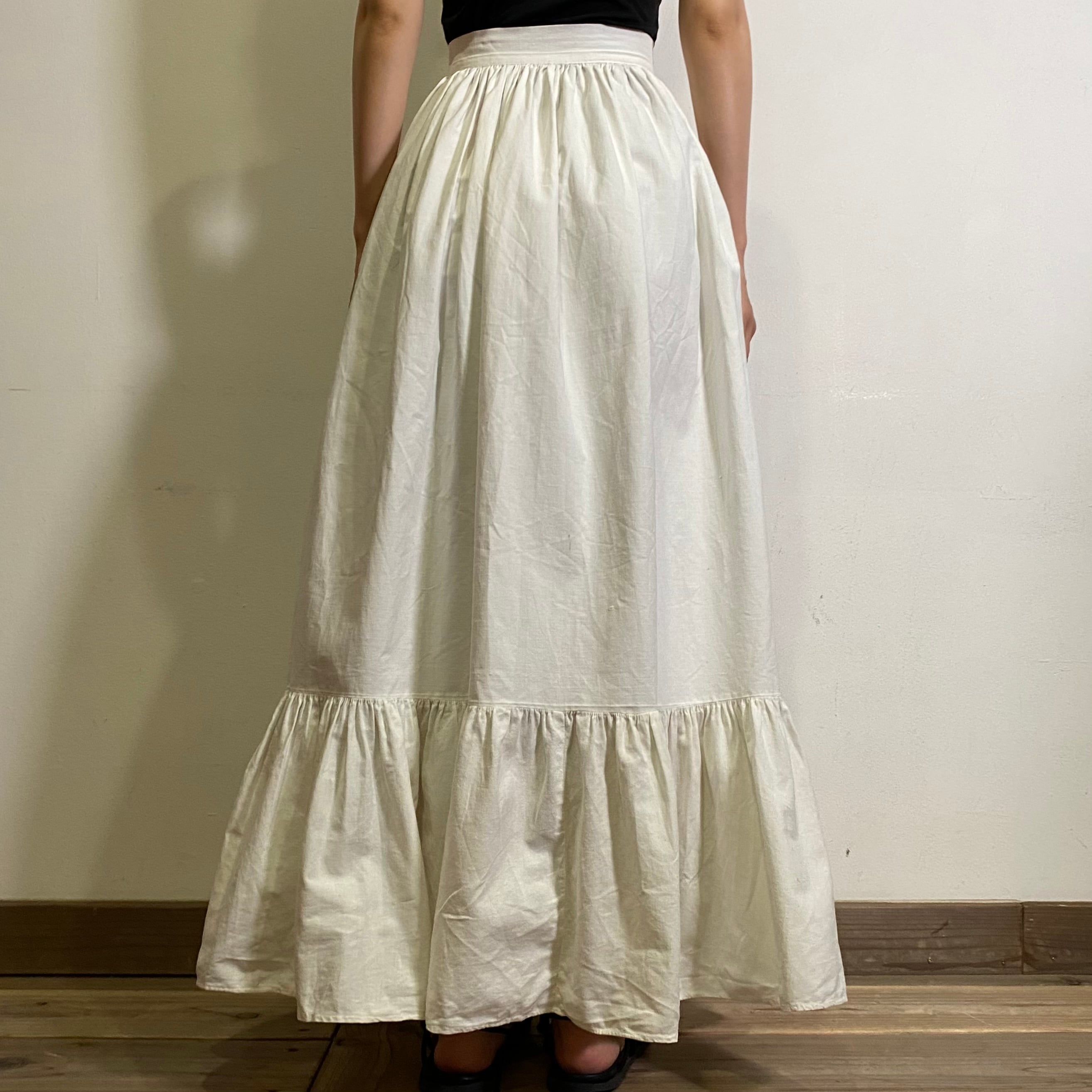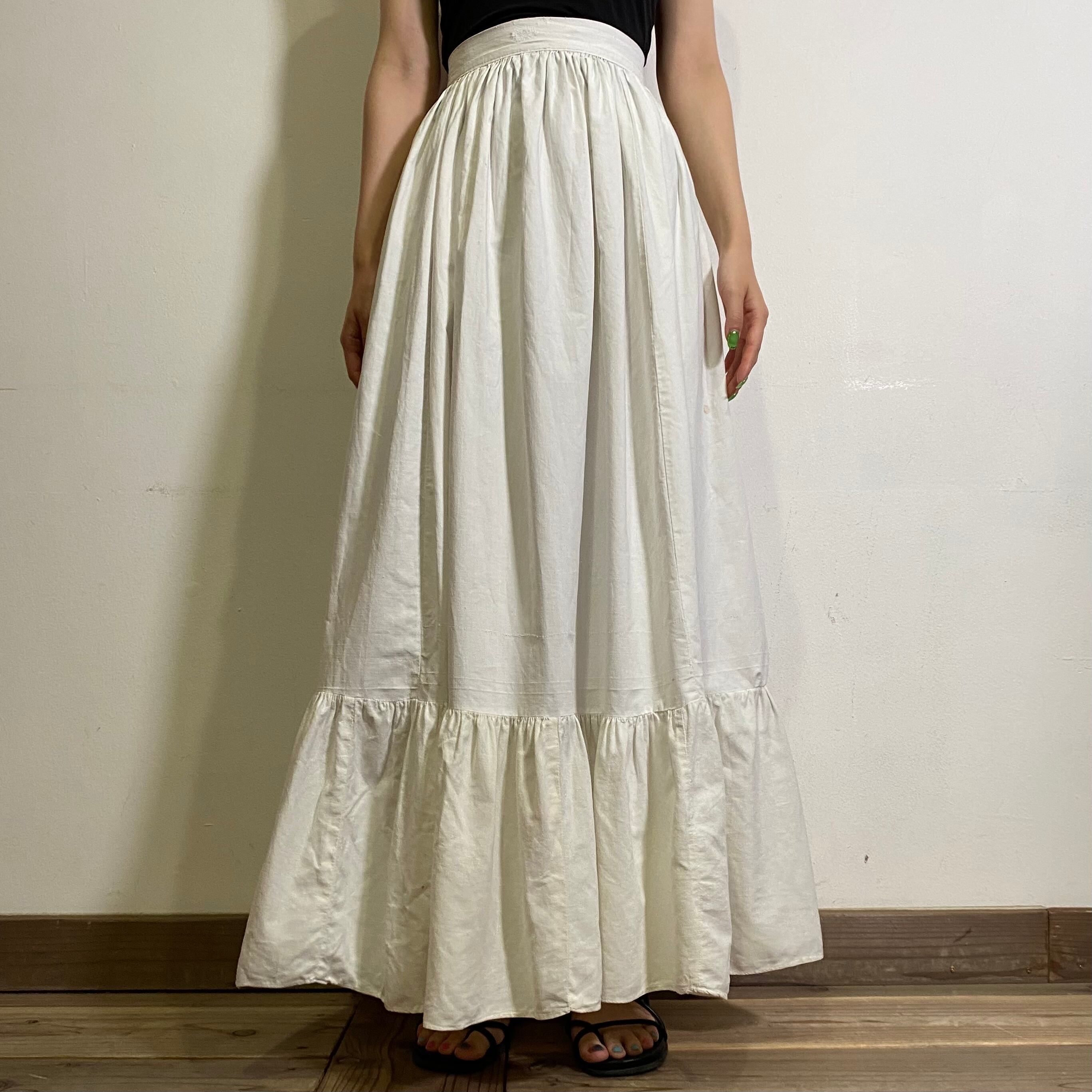 1910s cotton white flare long skirt